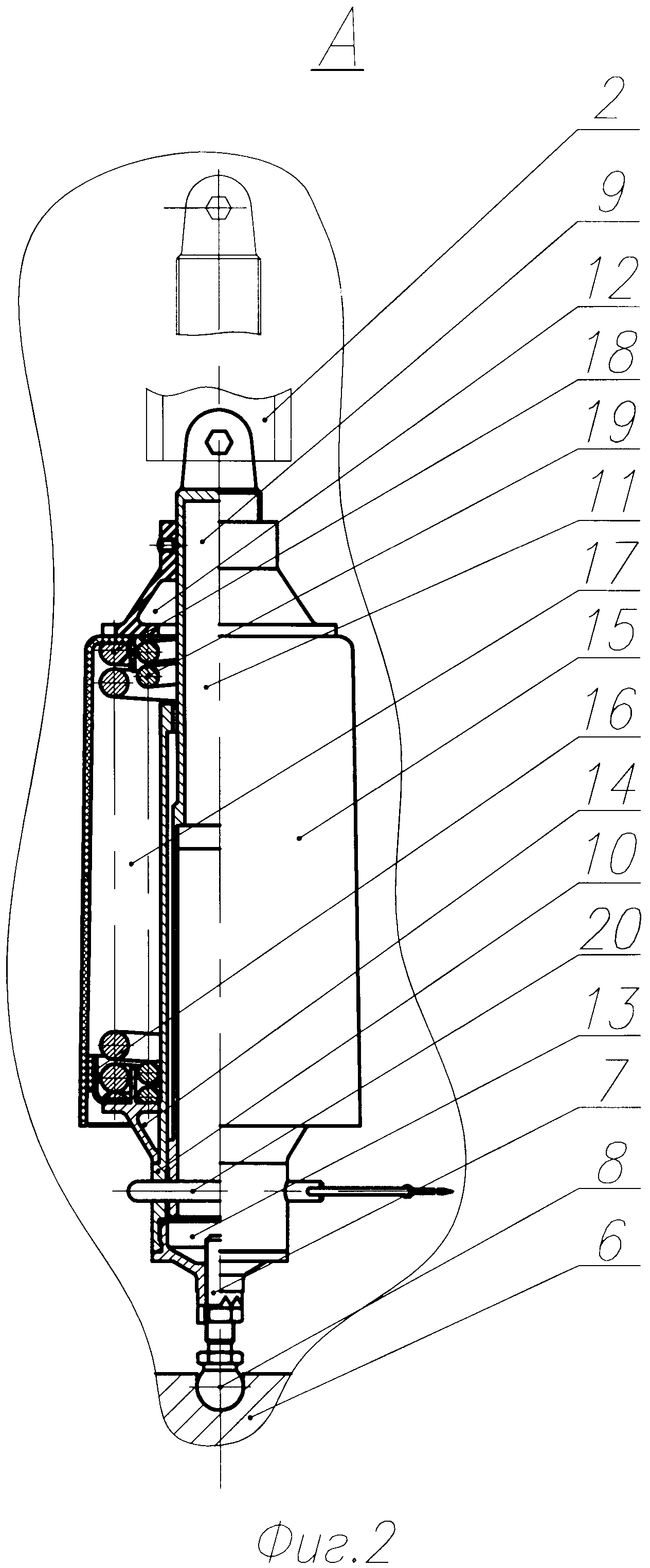 Устройство разделения и сброса головного обтекателя ракеты-носителя, содержащее закрепленные на ней с возможностью вращения створки, толкатели, шарнирно установленные на наружной поверхности створок, опирающиеся на фитинги ракеты-носителя, связанные со штоками толкателей хвостовиками, имеющими сферические законцовки, отличающееся тем, что каждый толкатель содержит внешний и внутренний цилиндры, телескопически соединенные между собой с возможностью продольного перемещения друг относительно друга, внутренний цилиндр состоит из штока, шарнирно соединенного с одной из створок, и верхней крышки, жестко закрепленной на штоке, внешний цилиндр состоит из гильзы, соединенной с хвостовиком с возможностью поступательного движения, и нижней крышки, жестко закрепленной на гильзе, на верхней крышке установлен стакан, а на нижней крышке установлен малый стакан, которые телескопически соединены между собой с образованием полости между нижней и верхней крышками, в которой установлены одна в другой пружины с противоположным направлением навивки.