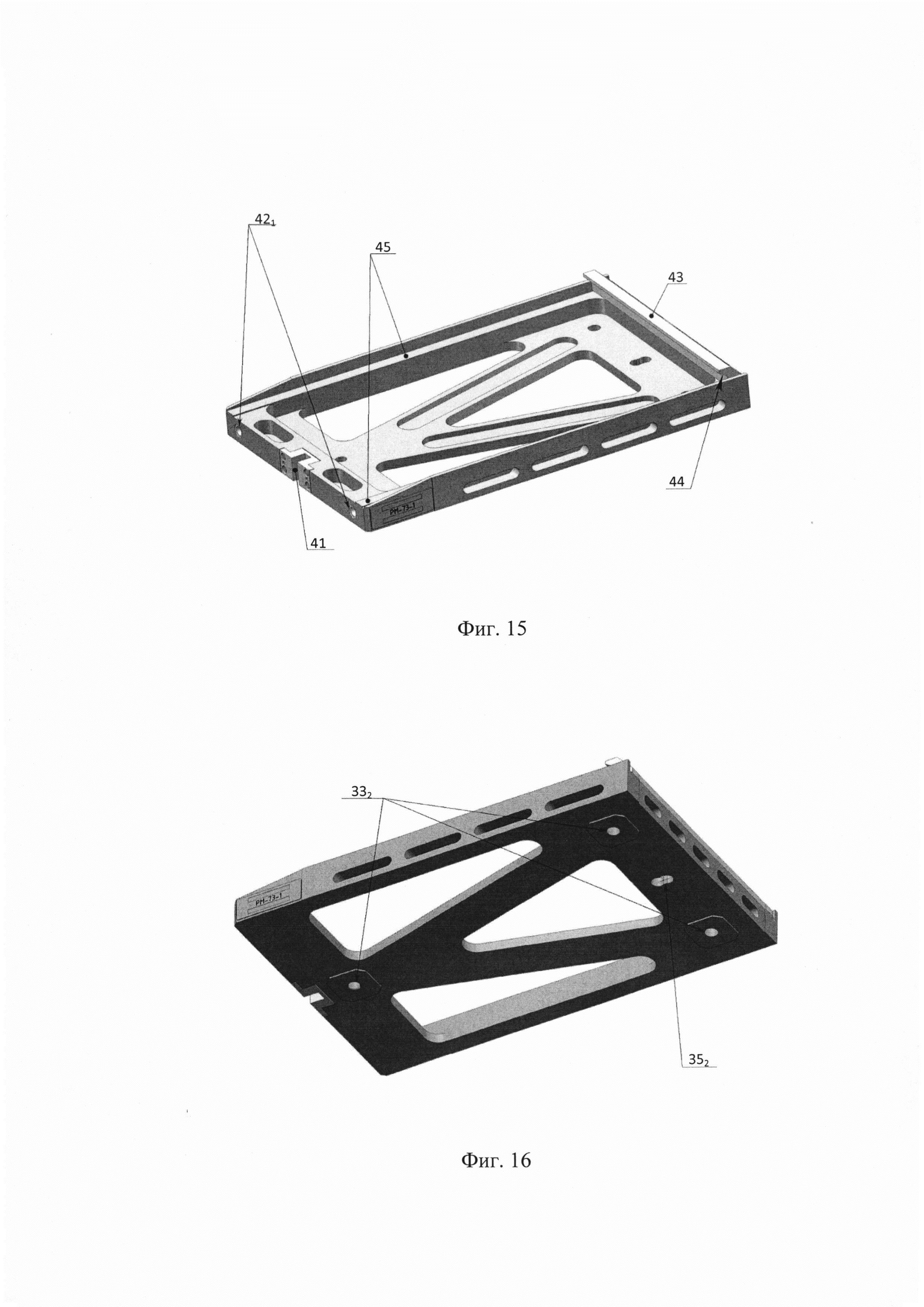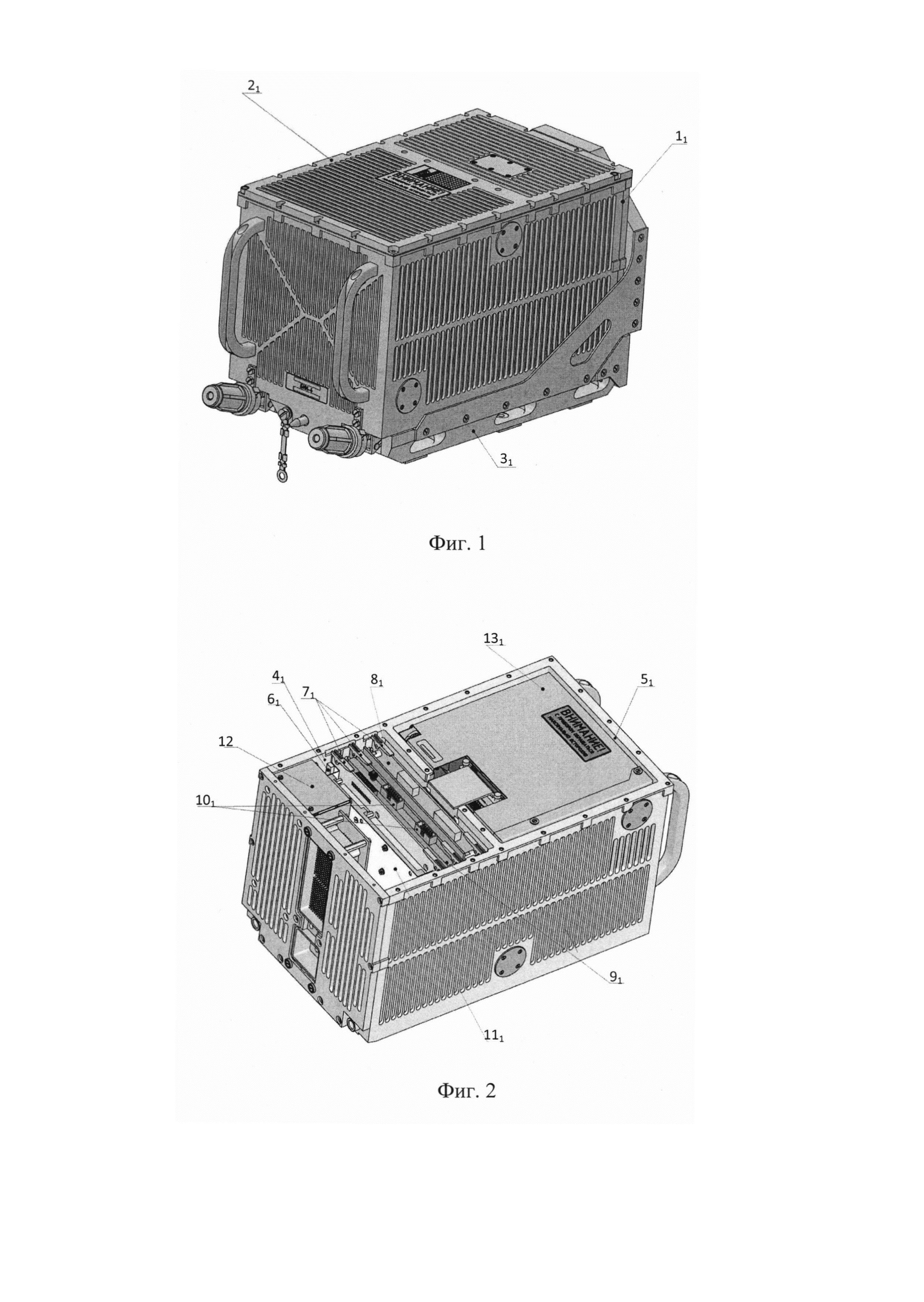 1. Бесплатформенная инерциальная навигационная система, включающая инерциальный моноблок, выполненный по меньшей мере с одной герметичной крышкой, и монтажную раму, снабженные фиксирующими элементами для закрепления моноблока на монтажной раме, при этом корпус моноблока имеет на наружной поверхности по меньшей мере одну ручку для переноса и перемещения моноблока в монтажной раме, а также соединительные элементы для проводной связи функциональных элементов бесплатформенной инерциальной навигационной системы с внешними устройствами, при этом упомянутые функциональные элементы размещены внутри инерциального моноблока и выполнены в виде связанных между собой блока чувствительных элементов, преобразователя сигналов датчиков, по меньшей мере одного вычислителя, а также источника вторичного питания, отличающаяся тем, что внутренняя полость инерциального моноблока содержит разделенные перегородкой первый и второй отсеки, причем в первом отсеке установлен блок чувствительных элементов, выполненный в виде единого корпуса кубической формы с герметизируемыми с помощью крышек четырьмя полостями, при этом в трех взаимно ортогональных полостях расположены кольцевые лазеры прямоугольной формы с функциональной электроникой лазерного гироскопа, а в четвертой - высоковольтный источник напряжения, устройство регулирования периметра и контроля лазерных гироскопов, а также блок из трех акселерометров, размещенных в едином жестком корпусе, обеспечивающем при его закреплении в блоке чувствительных элементов параллельность осей чувствительности акселерометров и кольцевых лазеров, при этом корпус блока чувствительных элементов закрыт снаружи магнитными экранами и снабжен амортизаторами для крепления к стенкам инерциального моноблока, а во втором отсеке установлены упомянутые источник вторичного питания, преобразователь сигналов датчиков и по меньшей мере один вычислитель, при этом в герметичной крышке инерциального моноблока выполнен герметично закрывающийся съемный люк. 2. Система по п. 1, отличающаяся тем, что магнитные экраны, закрывающие корпус блока чувствительных элементов, выполнены из пермаллоя. 3. Система по п. 1, отличающаяся тем, что крепление корпуса блока чувствительных элементов к стенкам инерциального моноблока осуществлено четырьмя амортизаторами по два на двух противоположных стенках, причем каждая пара амортизаторов расположена по ортогональным гипотенузам куба блока чувствительных элементов. 4. Система по п. 1, отличающаяся тем, что электронный отсек дополнительно содержит коммутационную плату, на которую по направляющим корпуса с помощью разъемов и креплений установлены упомянутые преобразователь сигналов датчиков, вычислитель и источник вторичного питания, выполненные в виде отдельных субблоков. 5. Система по пп. 1-4, отличающаяся тем, что моноблок выполнен с двумя ручками, соединительным элементом в виде врубного разъема, а также фиксирующими элементами в виде трех центрирующих отверстий и двух упоров таким образом, что на внешней стороне задней стенки корпуса установлен врубной разъем, выполнены первое и второе центрирующие отверстия, а на внешней стороне передней стенки корпуса расположены ручки, упоры и третье центрирующее отверстие. 6. Система по пп. 1, 5, отличающаяся тем, что в эле