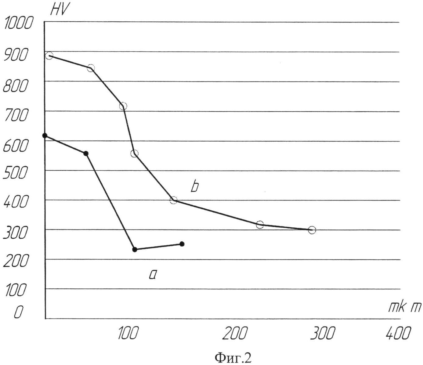 1. Способ азотирования детали с использованием электромагнитного поля, включающий подачу в камеру для азотирования реакционного газа, его нагрев с одновременным генерированием в камере переменного электромагнитного поля, отличающийся тем, что генерирование электромагнитного поля осуществляют посредством соленоида, внутри которого располагают обрабатываемую деталь с направлением вектора магнитной индукции перпендикулярно обрабатываемой поверхности детали и изменением в процессе азотирования его величины с формированием прямоугольных импульсов, длительность и периодичность которых обеспечивают ускорение движения и внедрения ионов азота в обрабатываемую поверхность за счет вертикального фронта нарастания напряженности магнитного поля. 2. Способ по п. 1, отличающийся тем, что в процессе обработки устанавливают амплитуду возбуждающего магнитное поле импульсного напряжения - 4 В, потребляемый ток - 30 мА, соответственно мощность - 120 мВт, длительность импульса магнитной индукции - 410-3 с, крутизну фронта импульса - 20 нс, периодичность - 12-10-3 с и время обработки - 2 часа. 3. Устройство для азотирования детали с использованием электромагнитного поля, содержащее камеру для азотирования детали, устройство для подачи реакционного газа в упомянутую камеру на обрабатываемую деталь, нагревательное устройство и устройство для генерирования электромагнитного поля, отличающееся тем, что устройство для генерирования электромагнитного поля выполнено в виде расположенного вокруг упомянутой камеры соленоида, обеспечивающего генерирование импульсного электромагнитного поля с прямоугольными импульсами с направлением вектора магнитной индукции перпендикулярно обрабатываемой поверхности находящейся внутри него детали. 4. Устройство по п. 3, отличающееся тем, что камера для азотирования детали представляет собой керамическую трубку из оксида алюминия Al2O3 диаметром 25 мм, вокруг которой размещен теплоизолятор диаметром 60 мм из вспененного материала SiO2, на котором расположен соленоид, выполненный трехслойным, из медной проволоки диаметром 0,26 мм, в каждом слое которого по 60 витков.