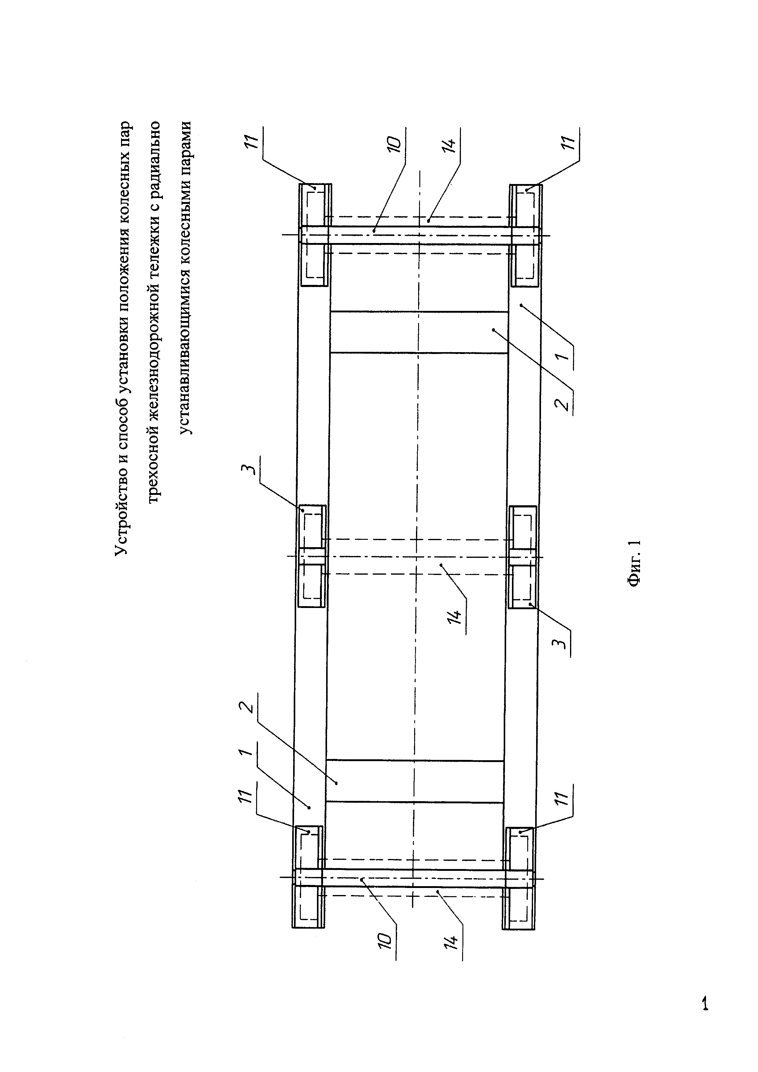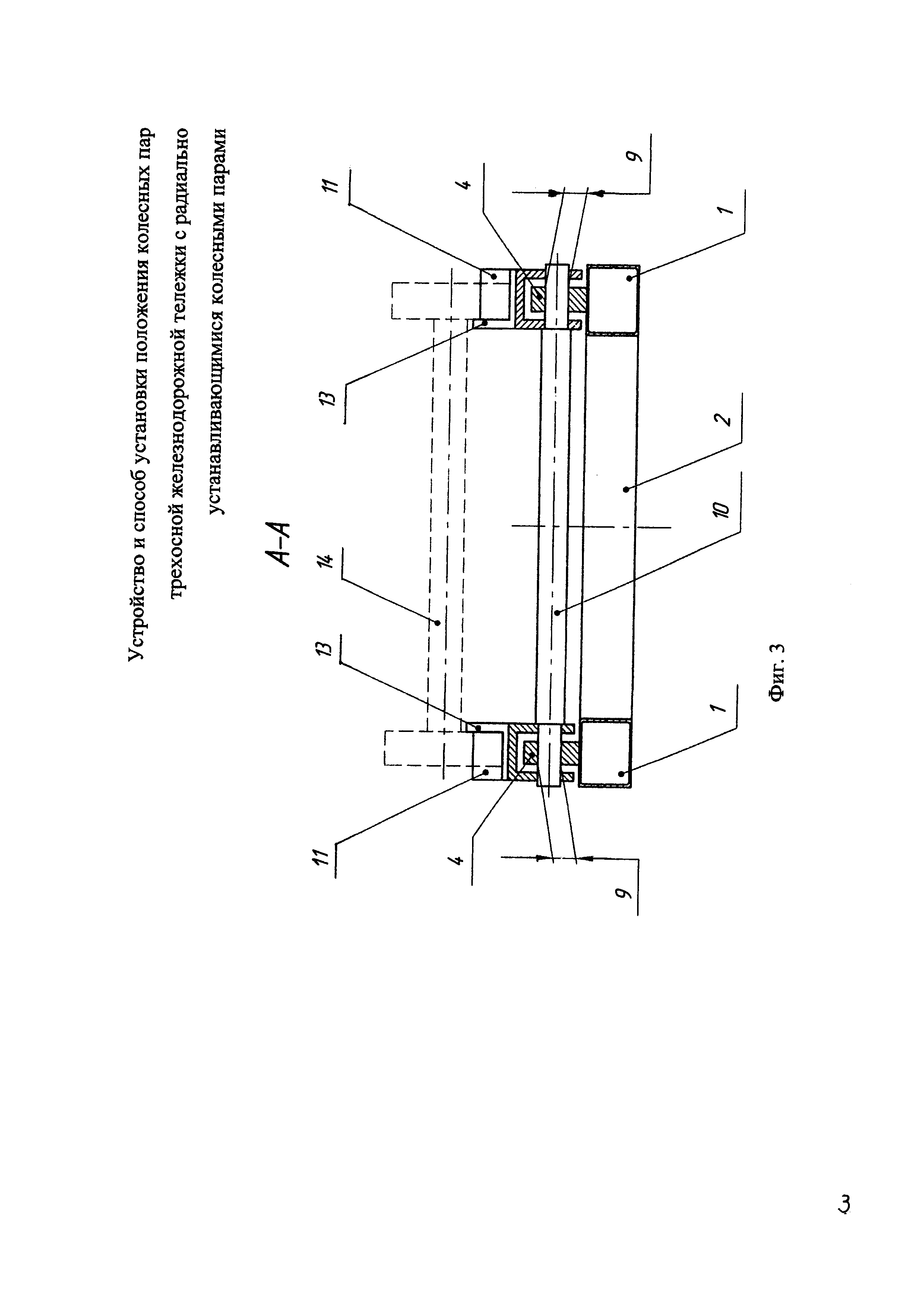 Изобретение относится к железнодорожному транспорту и предназначено для сборки трехосной железнодорожной тележки с радиально устанавливающимися колесными парами. Рама устройства содержит соединенные между собой боковины и поперечины. В центре боковин установлены неподвижные призмы, на концах боковин установлены подвижные опоры. Расстояние между призмами и опорами соответствует расстоянию между средней и крайними осями тележки. Перемещения подвижных опор в диапазоне нормативных допусков ограничены упорами. Перемещения колесных пар в поперечном направлении ограничены буртами в призмах. На устройство установки колесных пар устанавливают трехосную железнодорожную тележку с частично разобранным механизмом радиальной установки колесных пар. Среднюю колесную пару опирают на неподвижные опоры, крайние колесные пары самоустанавливаются на подвижных призмах. Производят сборку механизма радиальной установки колесных пар трехосной тележки. Обеспечивается нормативное межосевое расстояние между средней и крайними колесными парами. Повышается точность сборки и уменьшается износ колес колесных пар. 2 н. и 1 з.п. ф-лы, 4 ил.