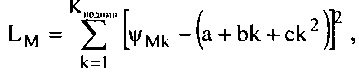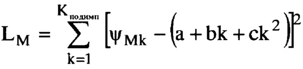 , оценивая фазу ψMk по каждому подымпульсу как ψMk=arctg(SMks/SMkc) и формируя вектор ψм=(ψМ1, … ψMKподымп), и далее зависимость ψMk от k аппроксимируют полиномом ψko=а+bk+ck2, где a, b и с находят по методу наименьшего квадратичного отклонения, исходя из минимизации значения
