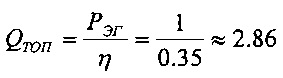 . Очевидно, что нормальный секундный перерасход топлива (из-за η=0.35) в относительных единицах составляет ΔQ=QТОП-РЭГ=2.86-1=1.86. Эта мощность с отходящими газами сбрасывается или в регенеративный теплообменник 8 или в котел-утилизатор (на Фиг. 1 не показан).