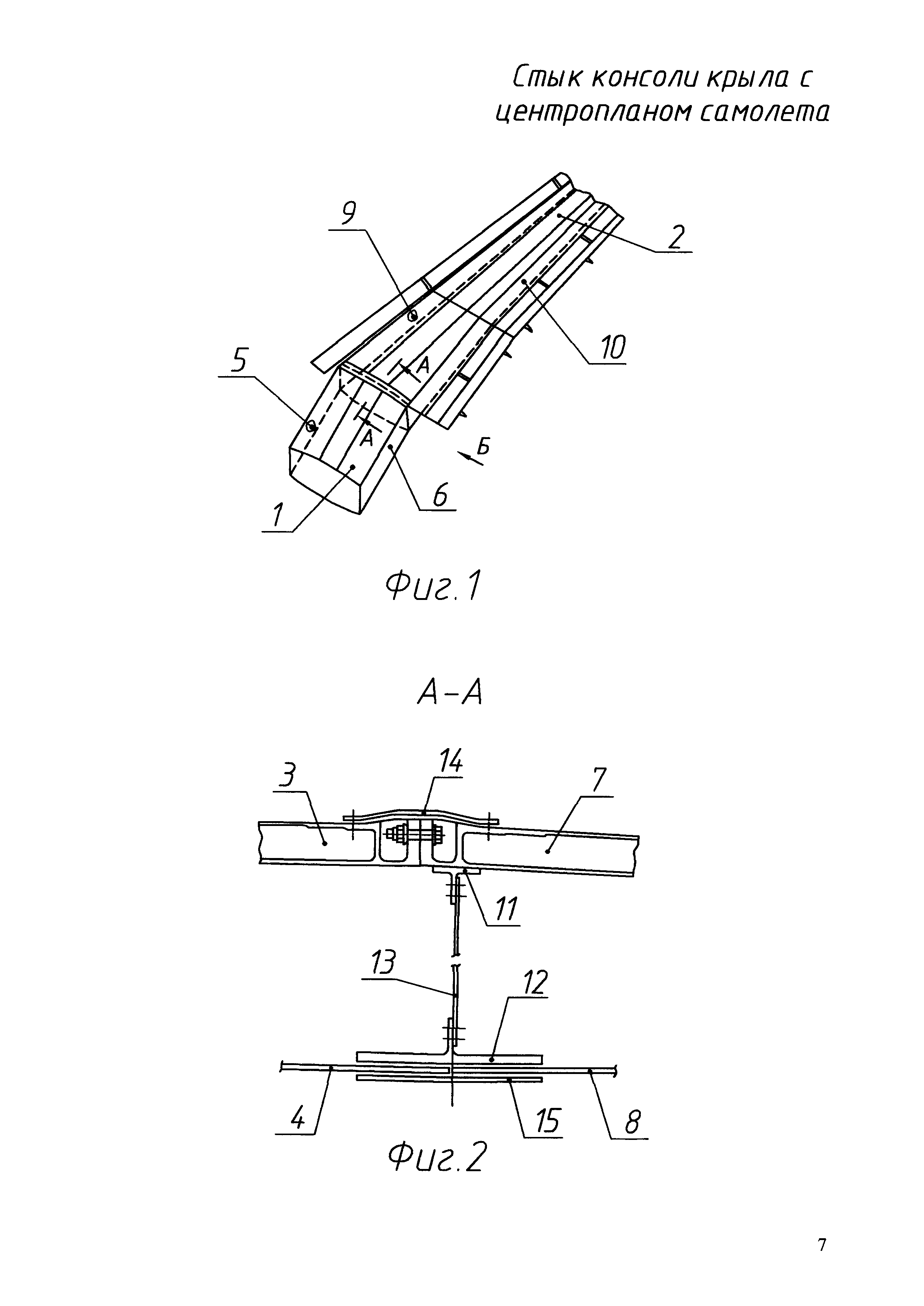 Стык консоли крыла с центропланом самолета, содержащий стыковочную нервюру, по нижнему поясу которой перестыкованы нижние панели консольной части крыла и центроплана, по стыку нижних панелей снаружи установлена стыковочная накладка, отличающийся тем, что стыковочная нервюра установлена на торце консольной части крыла, а стык верхних панелей консольной части крыла и центроплана выполнен со смещением от плоскости стыковочной нервюры в сторону центроплана, причем верхние панели консольной части крыла закреплены на верхнем поясе стыковочной нервюры, а стык верхних панелей консольной части крыла и центроплана выполнен при помощи фрезерованных фланцевых узлов с колодцами, имеющихся в конструкции верхних панелей консольной части крыла.