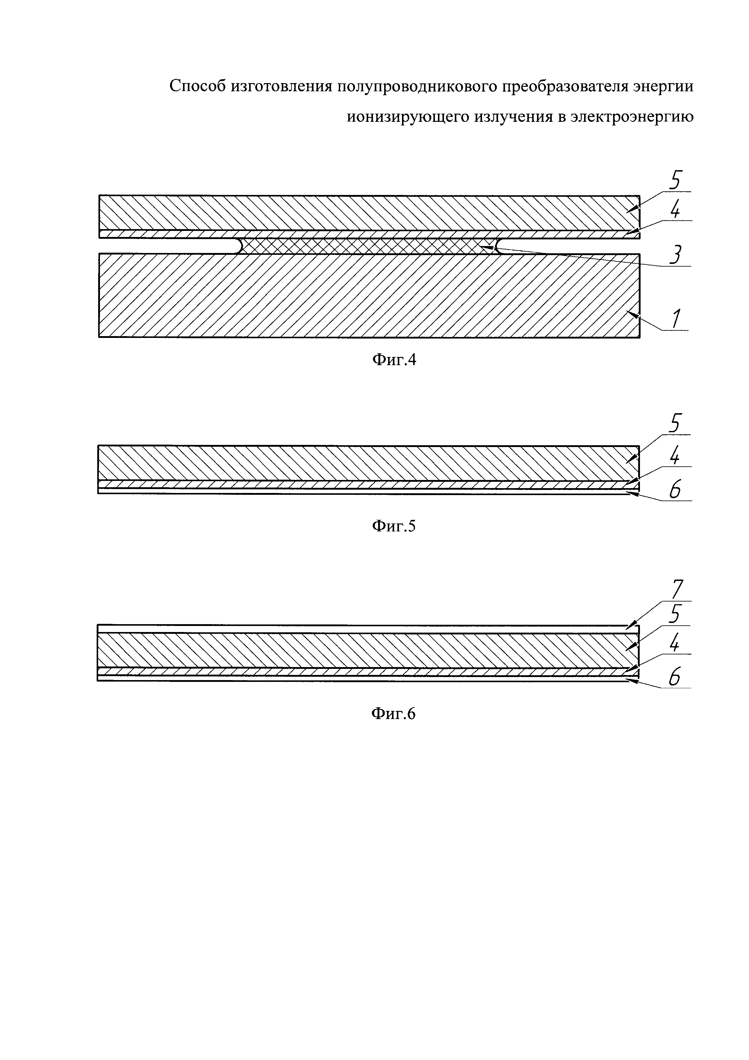 Изобретение относится к способу изготовления сверхтонких полупроводниковых структур с потенциальным барьером, способных генерировать полезную электрическую энергию под действием ионизирующего излучения. Из алмаза типа IIb изготавливают подложку толщиной от 100 до 1000 мкм, на одной из сторон алмазной подложки формируют жертвенный слой и остаточный слой посредством имплантации ионов с энергией не менее 100 кэВ с последующим отжигом подложки в вакууме или атмосфере инертного газа при температуре от 700 до 2000°С. Затем на остаточном слое проводят синтез эпитаксиального слоя алмаза типа IIb толщиной от 5 до 50 мкм, удаляют синтезированный слой алмаза с торцов подложки, обрабатывают жертвенный слой методом электрохимического травления в сильном окислителе до полного удаления жертвенного слоя, отделяют эпитаксиальный слой алмаза с остаточным слоем от основной части подложки, формируют положительный контакт преобразователя на остаточном слое. Далее эпитаксиальный слой алмаза подвергают воздействию ионизирующего излучения в атмосфере кислорода или нагрева в атмосфере кислорода или воздействию кислородной плазмы и формируют отрицательный контакт преобразователя на эпитаксиальном слое алмаза. Техническим результатом является обеспечение максимальной удельной мощности и минимизации толщины преобразователя, выполненного из алмаза, возможность создания автономных радиоизотопных источников электрического питания с большим соотношением мощности к массе и габаритам, а также возможность изготовления 10-500 преобразователей с многократным использованием одной алмазной подложки. 2 з.п. ф-лы, 6 ил., 3 пр.