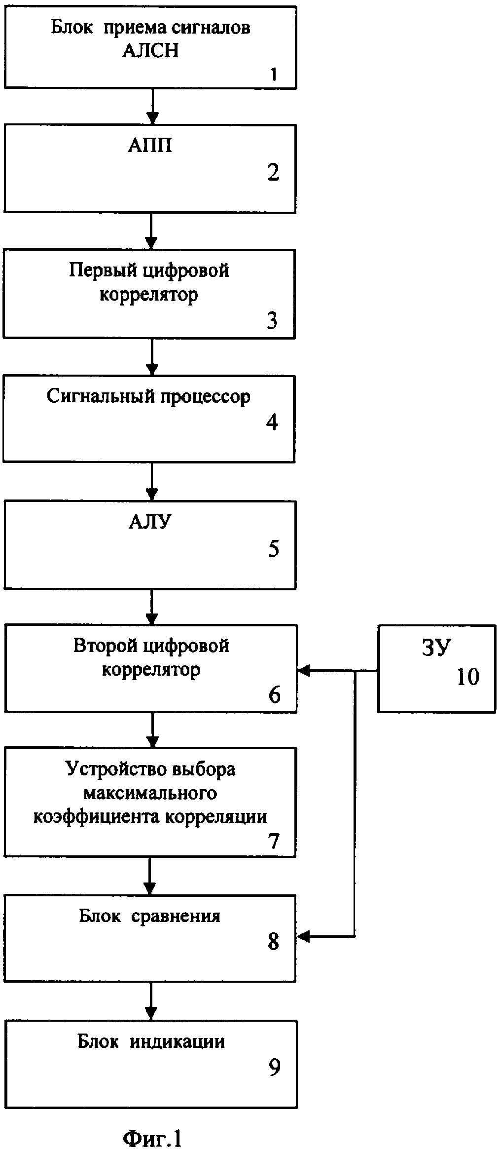 цифрового коррелятора, сигнального процессора, арифметико-логического устройства, второго цифрового коррелятора, устройства выбора максимального коэффициента корреляции, блока сравнения и блока