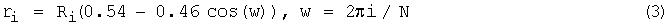 элементу с индексом 2М-1, R2M-1=0. Далее производится обработка АКФ с применением весовой (оконной) функции, например функции Хэмминга: где N=2М; i=0, 1, 2, ... 2M-1. Над полученным таким образом массивом данных