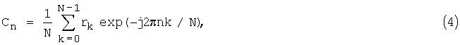 осуществляется дискретное преобразование Фурье (ДПФ) по формуле (3): Так как