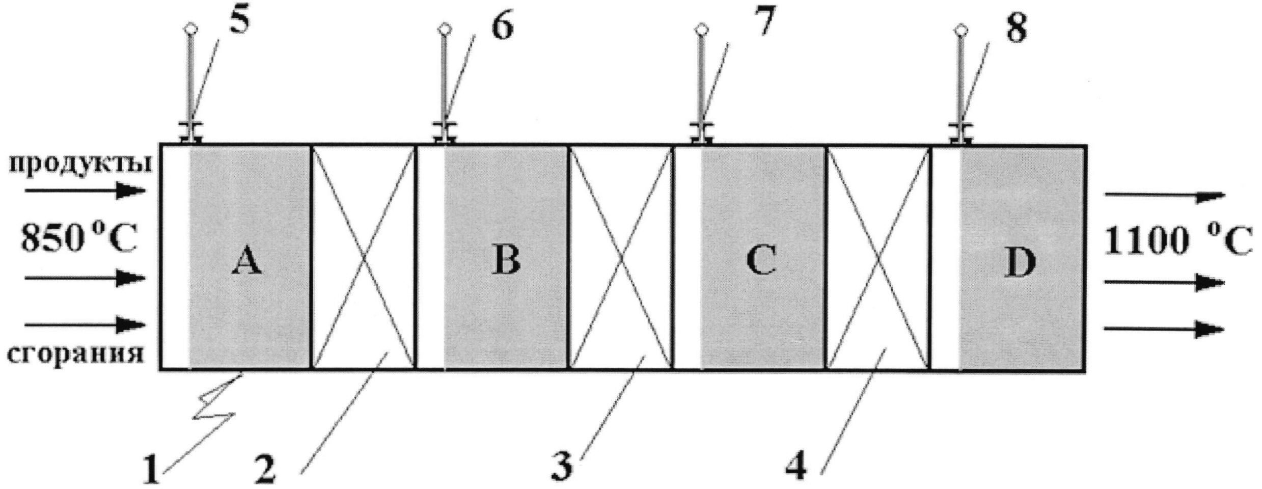 1. Способ высокотемпературной очистки продуктов сгорания в газоходе теплового агрегата от оксидов азота путем их селективного некаталитического восстановления, заключающийся в том, что в ограниченные температурным диапазоном 850-1100°C выбранные зоны газохода между расположенными в нем поверхностями нагрева вводят аммиаксодержащий восстановитель, отличающийся тем, что восстановитель вводят одновременно во все указанные выбранные зоны, причем в каждую из этих зон его подают с коэффициентом расхода по отношению к стехиометрическому расходу, меньшим единицы. 2. Способ по п.1, отличающийся тем, что число зон ввода восстановителя составляет 2-5. 3. Способ по п.1 или 2, отличающийся тем, что коэффициент расхода восстановителя, подаваемого в каждую зону очистки, устанавливают в диапазоне 0,2-0,8. 4. Способ по п.1 или 2, отличающийся тем, что в качестве восстановителя используют аммиак или карбамид. 5. Способ по п.3, отличающийся тем, что в качестве восстановителя используют аммиак или карбамид.