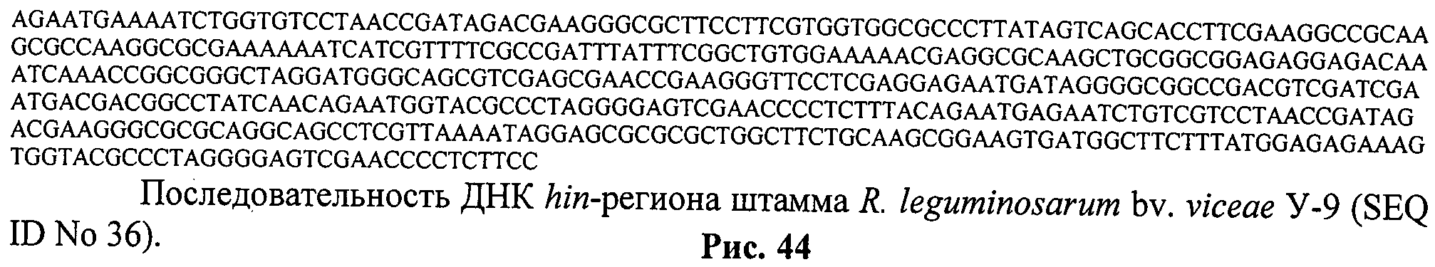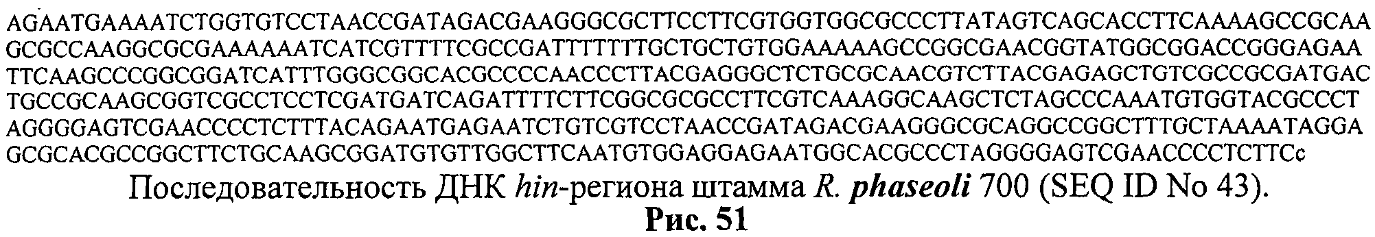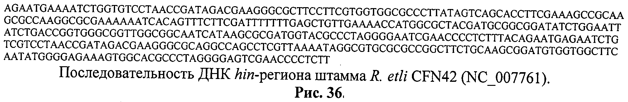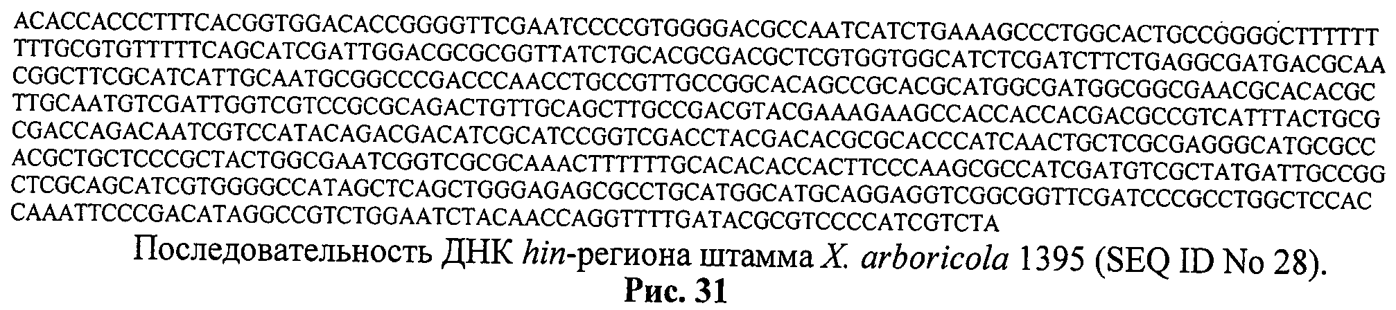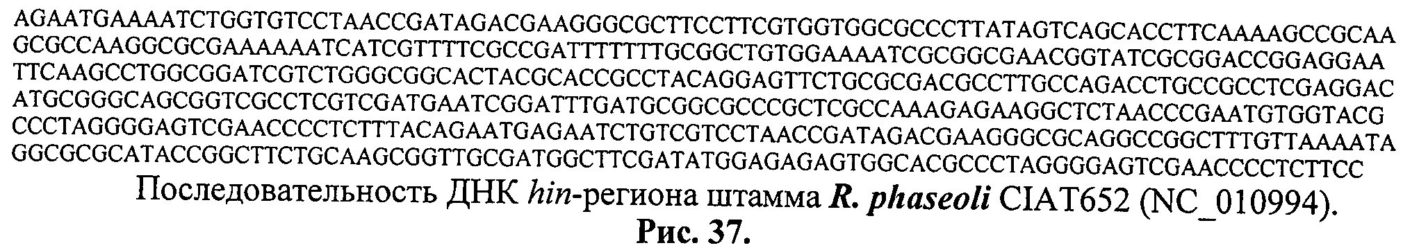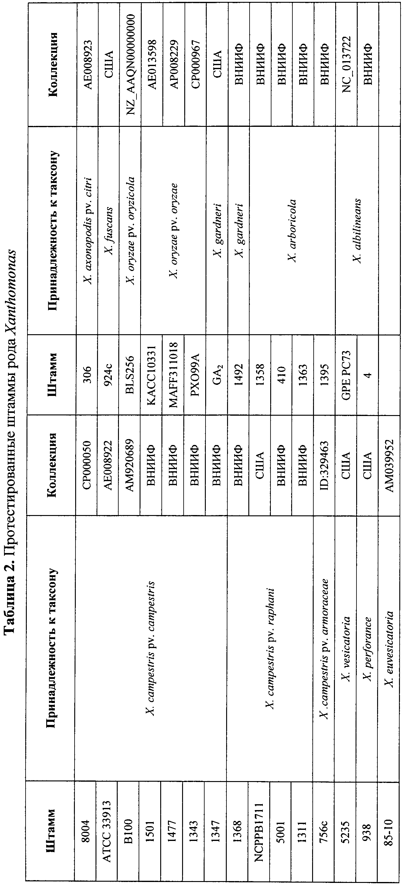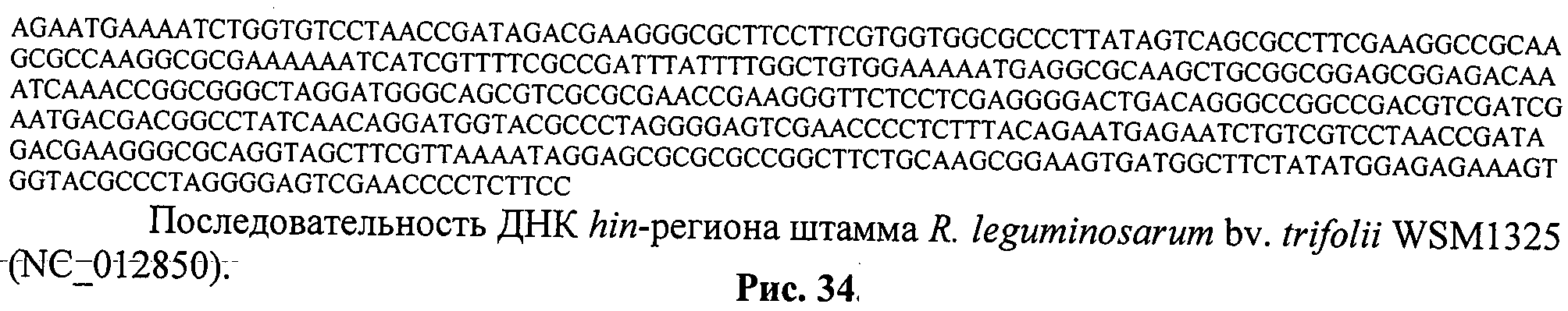 Изобретение относится к области биотехнологии и касается способа идентификации одного микроорганизма или одновременной идентификации нескольких различных микроорганизмов в образце по нуклеотидной последовательности hin-региона (от латинского Hin - уникальный, неповторимый), расположенного между копиями одноименных генов тРНК-Глю. Основные молекулярно-биологические методы, используемые для дифференциации и идентификации организмов, можно разделить на три категории: методы, базируемые на рестрикции, на амплификации (ПЦР) и на совокупности последних. К первой группе относится техника RFLP (Полиморфизм Длин Рестрикционных Фрагментов), которая заключается в фрагментировании нативной ДНК исследуемого организма с помощью ферментов рестриктаз и последующем разделении полученных фрагментов при помощи Пульс-Гель Электрофореза (PFGE) /Schwartz D.C., Cantor C.R. 1984. Separation of yeast chromosome-sized DNAs by pulsed field gradient gel electrophoresis. Cell. 37(1):67-75/. Обладая оригинальным принципом разделения фрагментов ДНК в геле, тем не менее данный метод весьма трудоемок на стадии получения и рестрикции целой нефрагментированной ДНК. Ко второй группе относятся такие техники, как: АР-ПЦР (случайная ПЦР, осуществляемая без знания нуклеотидной последовательности организма, основанная на геномном распределении случайных повторов) /Williams J.G-K., Kubelik A.R., Livak K.J., Rafalski J.A, Tingey S.V. 1990. DNA polymorphisms amplified by arbitrary primers are useful as genetic markers // Nucleic Acids Res. 18:6531-6535/; - гер-ПЦР (техника представляет собой комплекс праймеров на часто повторяющиеся в геномах энтеробактерий последовательности, получившие названия Box, Rep, Eric) /Versalotic J., Koeuth Т., Lupski J.R. 1991. Distribution of repetitive DNA sequences in eubacteria and application to fingerprinting of bacterial genomes //Nucleic Acids Res. 19:6823-6831/; - микросаттелитная ПЦР (техника, основанная на геномном распределении микросаттелитных последовательностей типа (GC)4, (GTG)5 и др.) /Epplen J.T., Ammer H., Epplen С. 1991. Oligonucleotide fingerprinting using simple repeat motifs: a convenient, ubiquitously applicable method to detect hypervariability for multiple purposes // In: DNA fingerprinting: approaches and applications. Eds.: G. Burke, G.Dolf, A.J.Jeffreys, and R.Wolff, Birkhauser, Basel. P.50-69; Toonen R. 1997. Microsatellites for Ecologists: Non-Radioactive Isolation and Amplification Protocols for microsatellite markers. Version 1. University of California; Ellegren H. 2004. MICROSATELLITES: SIMPLE SEQUENCES WITH COMPLEX EVOLUTION // Nature Reviews Genetics 5, No 6,435-445/; - тРНК-ПЦР (tDNA-ILP) (техника, основанная на геномном распределении консервативных участков генов тРНК) /Welsh J., McClelland M. 1991. Genomic fingerprints produced by PCR with consensus tRNA gene primers // Nucleic Acids Res. 19:861-866/; - IS-ПЦР (техника, основанная на геномном распределении последовательностей мобильных элементов, встречаемых в геноме исследуемого организма) /Mahillon J., Chandler M. 1998. Insertion sequences // Microbiol. Mol. Biol. Rev. 62:725-774; George M.L.C., Bustamam M., Cruz W.T., Leach J.E., Nelson R.J. 1997. Movement of Xanthomonas oryzae pv. oryzae in southeast Asia detected using PCR-based DNA fingerprinting // Phytopathology. 87:302-309/; - ПЦР анализ с праймерами на целевые гены (такими генами могут быть гены домашнего хозяйства (housekeeping) (gyrB, rpoD, dnaK, fyuA, atpD, recA, ginll, rpoB и др.) /Berg Т., Tesoriero L., Hailstones D.L. 2005. A multiplex real-time PCR assay for detection of Xanthomonas campestris from brassicas. // Letters in Appl. Microbiology. 42(6):624-630; Parkinson N., Aritua V., Heeney J., Cowie C., Bew J.D., Stead D. 2007. Phylogenetic analysis of Xanthomonas species by comparison of partial gyrase В gene sequences // Int. J. of Syst. and Evol. Microbiology. 57:2881-2887; Maiden M.C., Bygraves J.A., Feil E. 1998. Multilocus sequence typing: a portable approach to the identification of clones within populations of pathogenic microorganisms // Proc. Natl. Acad. Sci. U.S.A. 95:3140-3145); Vinuesa P., Rojas-Jiménez K., Contreras-Moreira В., Mahna S.K., Nandan Prasad В., Мое H., Babu Selvaraju S., Thierfelder H., Wemer D. 2008. Multilocus sequence analysis for assessment of the biogeography and evolutionary genetics of four Bradyrhizobium species that nodulate soybeans on the asiatic continent // Applied and Environmental Microbiology. 74(22):69
