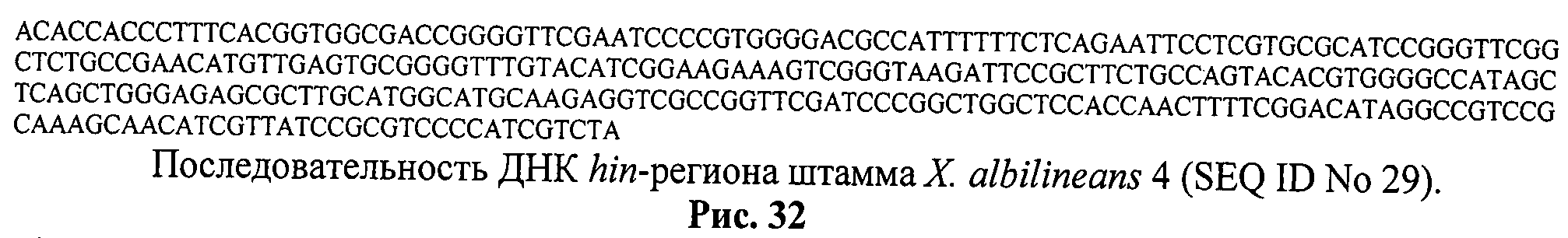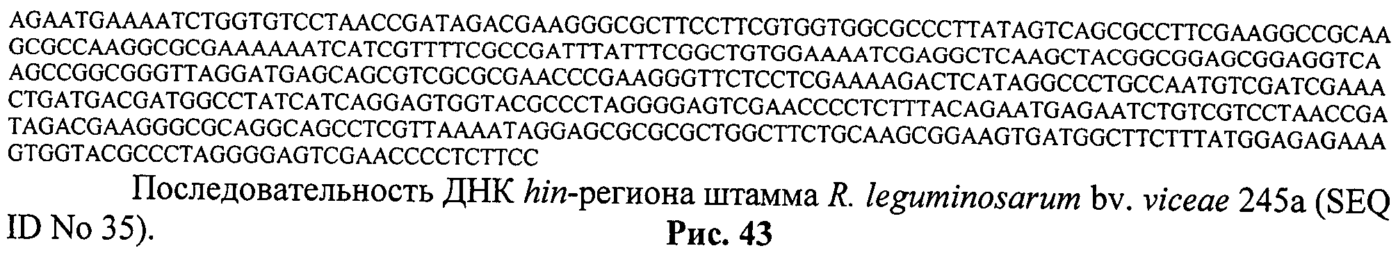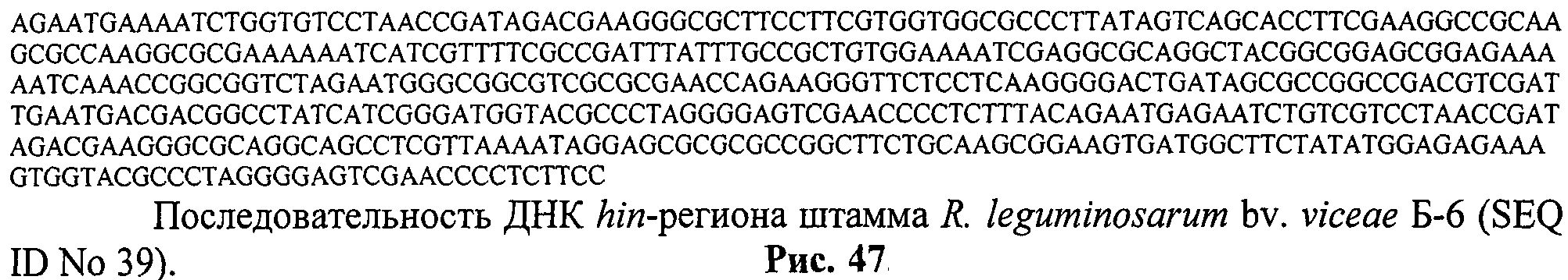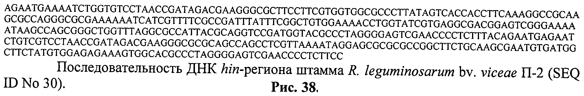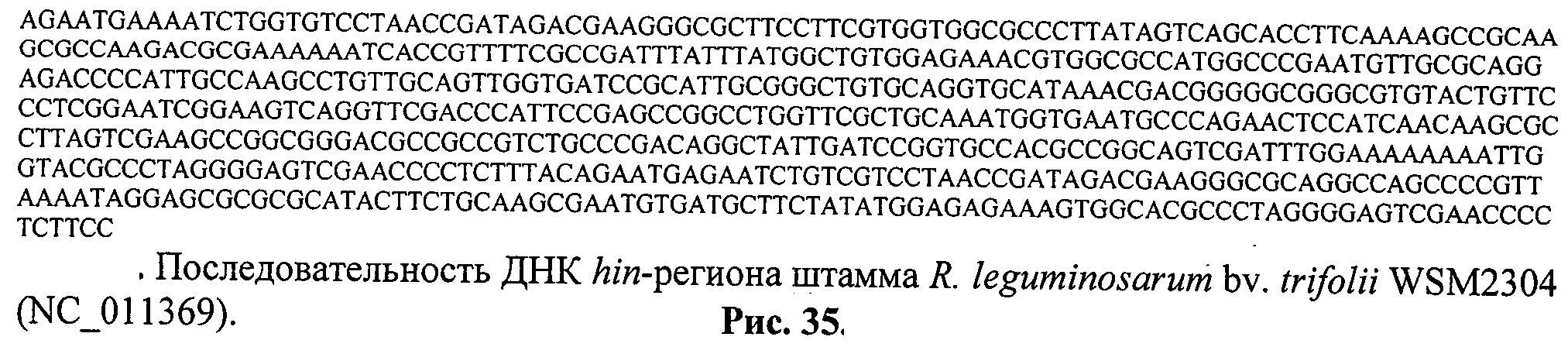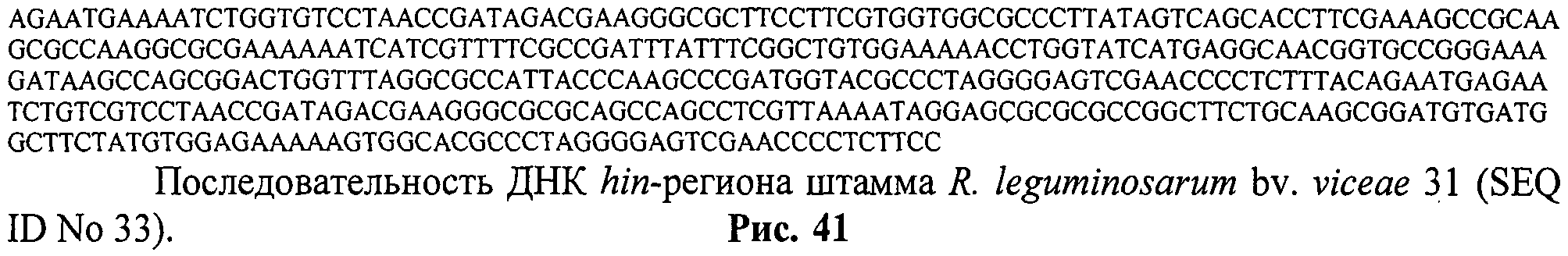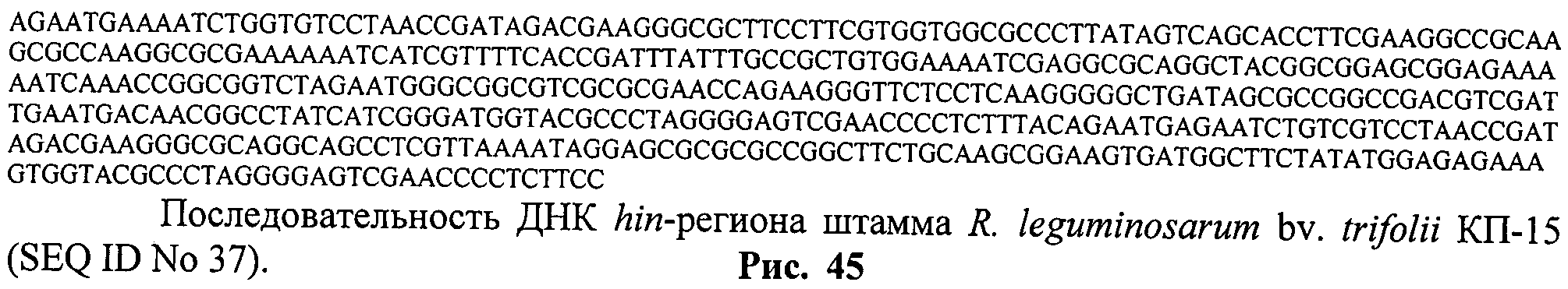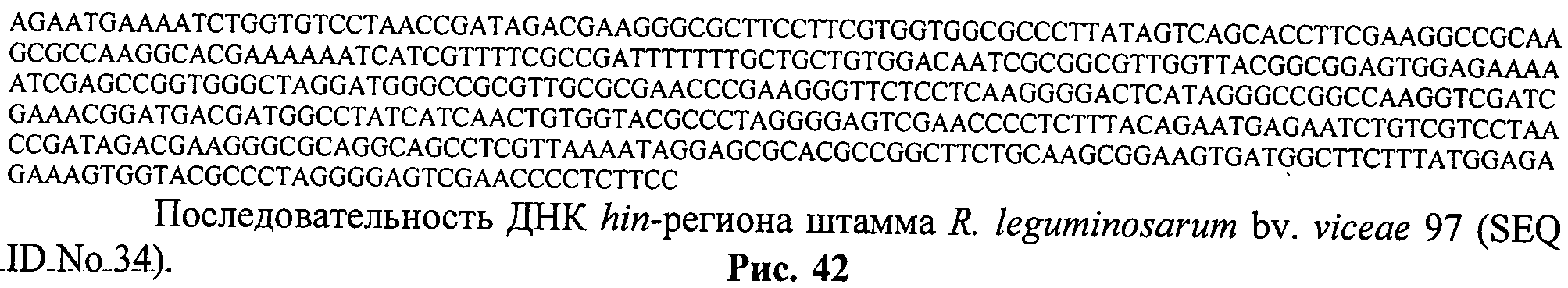 Изобретение относится к области биотехнологии и касается способа идентификации одного микроорганизма или одновременной идентификации нескольких различных микроорганизмов в образце по нуклеотидной последовательности hin-региона (от латинского Hin - уникальный, неповторимый), расположенного между копиями одноименных генов тРНК-Глю. Основные молекулярно-биологические методы, используемые для дифференциации и идентификации организмов, можно разделить на три категории: методы, базируемые на рестрикции, на амплификации (ПЦР) и на совокупности последних. К первой группе относится техника RFLP (Полиморфизм Длин Рестрикционных Фрагментов), которая заключается в фрагментировании нативной ДНК исследуемого организма с помощью ферментов рестриктаз и последующем разделении полученных фрагментов при помощи Пульс-Гель Электрофореза (PFGE) /Schwartz D.C., Cantor C.R. 1984. Separation of yeast chromosome-sized DNAs by pulsed field gradient gel electrophoresis. Cell. 37(1):67-75/. Обладая оригинальным принципом разделения фрагментов ДНК в геле, тем не менее данный метод весьма трудоемок на стадии получения и рестрикции целой нефрагментированной ДНК. Ко второй группе относятся такие техники, как: АР-ПЦР (случайная ПЦР, осуществляемая без знания нуклеотидной последовательности организма, основанная на геномном распределении случайных повторов) /Williams J.G-K., Kubelik A.R., Livak K.J., Rafalski J.A, Tingey S.V. 1990. DNA polymorphisms amplified by arbitrary primers are useful as genetic markers // Nucleic Acids Res. 18:6531-6535/; - гер-ПЦР (техника представляет собой комплекс праймеров на часто повторяющиеся в геномах энтеробактерий последовательности, получившие названия Box, Rep, Eric) /Versalotic J., Koeuth Т., Lupski J.R. 1991. Distribution of repetitive DNA sequences in eubacteria and application to fingerprinting of bacterial genomes //Nucleic Acids Res. 19:6823-6831/; - микросаттелитная ПЦР (техника, основанная на геномном распределении микросаттелитных последовательностей типа (GC)4, (GTG)5 и др.) /Epplen J.T., Ammer H., Epplen С. 1991. Oligonucleotide fingerprinting using simple repeat motifs: a convenient, ubiquitously applicable method to detect hypervariability for multiple purposes // In: DNA fingerprinting: approaches and applications. Eds.: G. Burke, G.Dolf, A.J.Jeffreys, and R.Wolff, Birkhauser, Basel. P.50-69; Toonen R. 1997. Microsatellites for Ecologists: Non-Radioactive Isolation and Amplification Protocols for microsatellite markers. Version 1. University of California; Ellegren H. 2004. MICROSATELLITES: SIMPLE SEQUENCES WITH COMPLEX EVOLUTION // Nature Reviews Genetics 5, No 6,435-445/; - тРНК-ПЦР (tDNA-ILP) (техника, основанная на геномном распределении консервативных участков генов тРНК) /Welsh J., McClelland M. 1991. Genomic fingerprints produced by PCR with consensus tRNA gene primers // Nucleic Acids Res. 19:861-866/; - IS-ПЦР (техника, основанная на геномном распределении последовательностей мобильных элементов, встречаемых в геноме исследуемого организма) /Mahillon J., Chandler M. 1998. Insertion sequences // Microbiol. Mol. Biol. Rev. 62:725-774; George M.L.C., Bustamam M., Cruz W.T., Leach J.E., Nelson R.J. 1997. Movement of Xanthomonas oryzae pv. oryzae in southeast Asia detected using PCR-based DNA fingerprinting // Phytopathology. 87:302-309/; - ПЦР анализ с праймерами на целевые гены (такими генами могут быть гены домашнего хозяйства (housekeeping) (gyrB, rpoD, dnaK, fyuA, atpD, recA, ginll, rpoB и др.) /Berg Т., Tesoriero L., Hailstones D.L. 2005. A multiplex real-time PCR assay for detection of Xanthomonas campestris from brassicas. // Letters in Appl. Microbiology. 42(6):624-630; Parkinson N., Aritua V., Heeney J., Cowie C., Bew J.D., Stead D. 2007. Phylogenetic analysis of Xanthomonas species by comparison of partial gyrase В gene sequences // Int. J. of Syst. and Evol. Microbiology. 57:2881-2887; Maiden M.C., Bygraves J.A., Feil E. 1998. Multilocus sequence typing: a portable approach to the identification of clones within populations of pathogenic microorganisms // Proc. Natl. Acad. Sci. U.S.A. 95:3140-3145); Vinuesa P., Rojas-Jiménez K., Contreras-Moreira В., Mahna S.K., Nandan Prasad В., Мое H., Babu Selvaraju S., Thierfelder H., Wemer D. 2008. Multilocus sequence analysis for assessment of the biogeography and evolutionary genetics of four Bradyrhizobium species that nodulate soybeans on the asiatic continent // Applied and Environmental Microbiology. 74(22):69