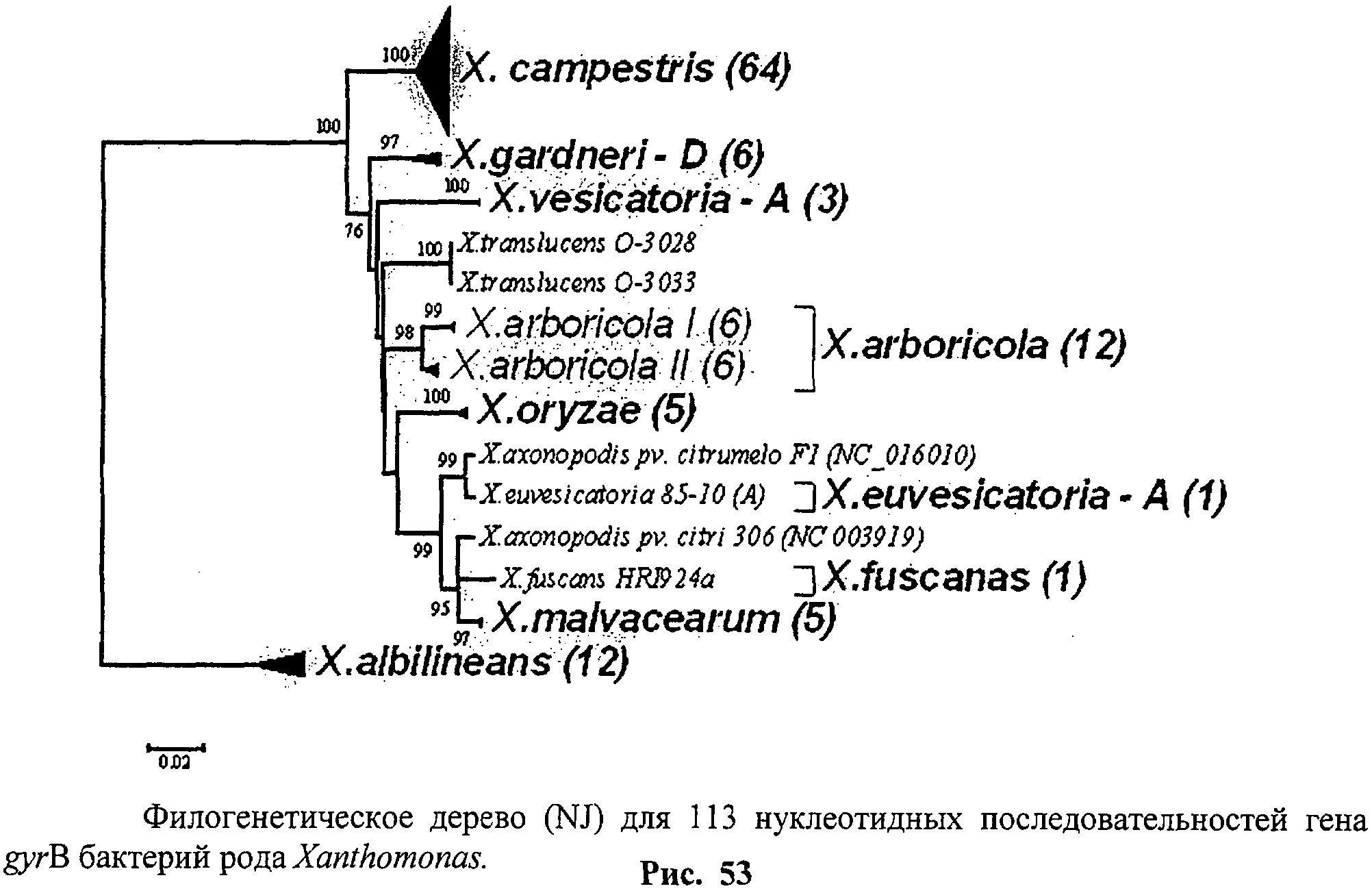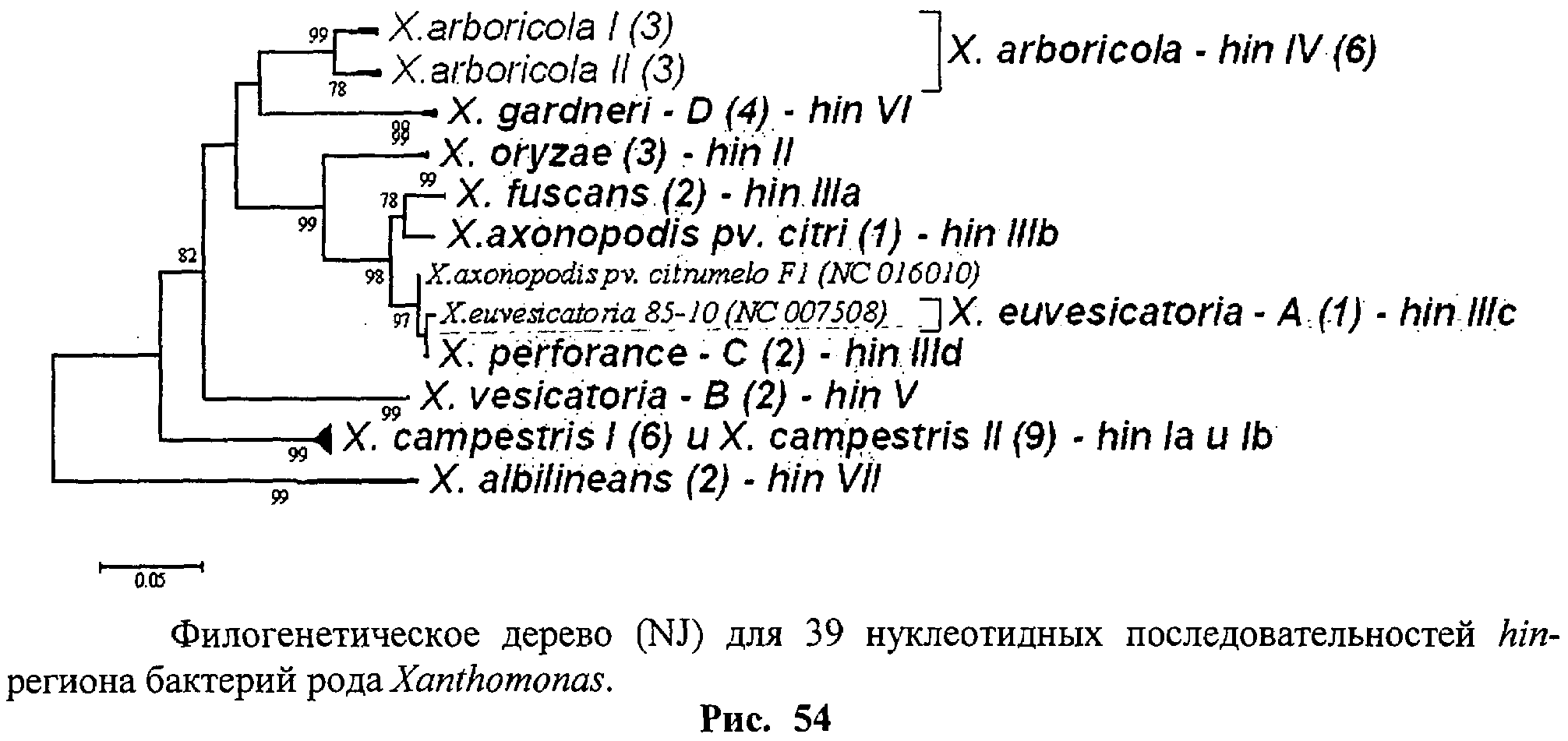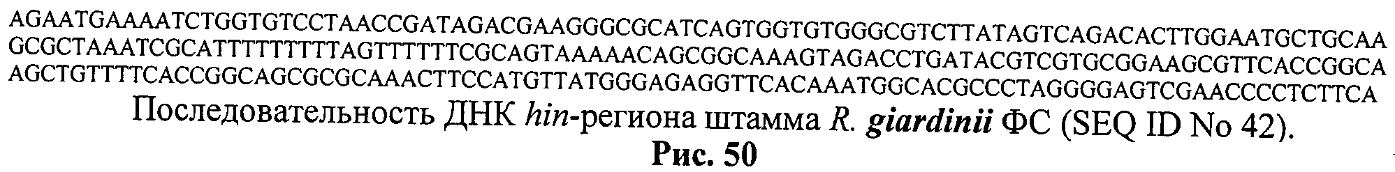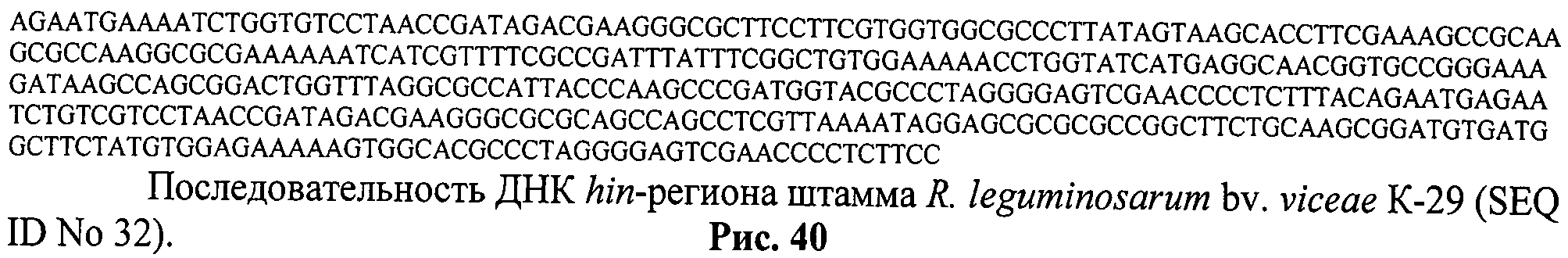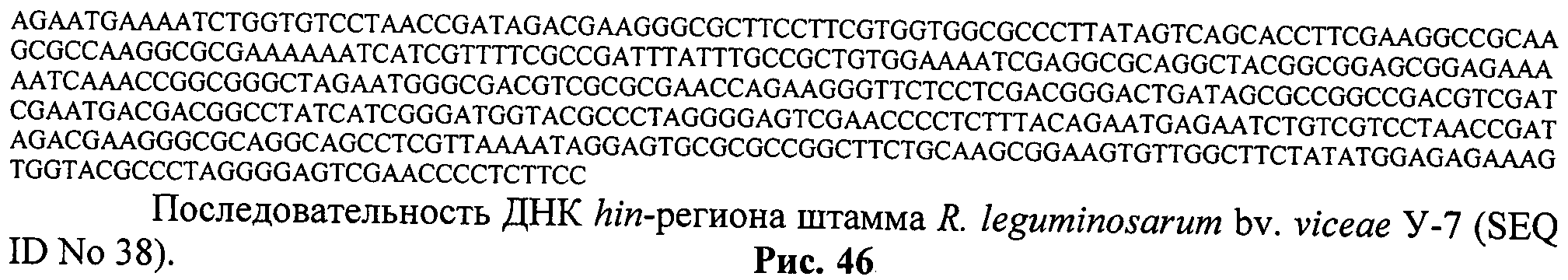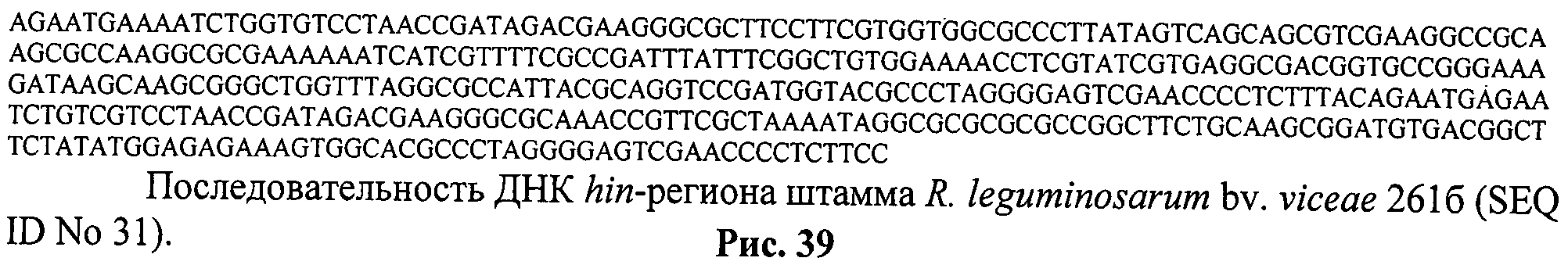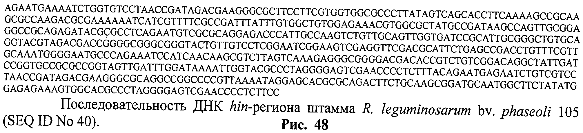 Изобретение относится к области биотехнологии и касается способа идентификации одного микроорганизма или одновременной идентификации нескольких различных микроорганизмов в образце по нуклеотидной последовательности hin-региона (от латинского Hin - уникальный, неповторимый), расположенного между копиями одноименных генов тРНК-Глю. Основные молекулярно-биологические методы, используемые для дифференциации и идентификации организмов, можно разделить на три категории: методы, базируемые на рестрикции, на амплификации (ПЦР) и на совокупности последних. К первой группе относится техника RFLP (Полиморфизм Длин Рестрикционных Фрагментов), которая заключается в фрагментировании нативной ДНК исследуемого организма с помощью ферментов рестриктаз и последующем разделении полученных фрагментов при помощи Пульс-Гель Электрофореза (PFGE) /Schwartz D.C., Cantor C.R. 1984. Separation of yeast chromosome-sized DNAs by pulsed field gradient gel electrophoresis. Cell. 37(1):67-75/. Обладая оригинальным принципом разделения фрагментов ДНК в геле, тем не менее данный метод весьма трудоемок на стадии получения и рестрикции целой нефрагментированной ДНК. Ко второй группе относятся такие техники, как: АР-ПЦР (случайная ПЦР, осуществляемая без знания нуклеотидной последовательности организма, основанная на геномном распределении случайных повторов) /Williams J.G-K., Kubelik A.R., Livak K.J., Rafalski J.A, Tingey S.V. 1990. DNA polymorphisms amplified by arbitrary primers are useful as genetic markers // Nucleic Acids Res. 18:6531-6535/; - гер-ПЦР (техника представляет собой комплекс праймеров на часто повторяющиеся в геномах энтеробактерий последовательности, получившие названия Box, Rep, Eric) /Versalotic J., Koeuth Т., Lupski J.R. 1991. Distribution of repetitive DNA sequences in eubacteria and application to fingerprinting of bacterial genomes //Nucleic Acids Res. 19:6823-6831/; - микросаттелитная ПЦР (техника, основанная на геномном распределении микросаттелитных последовательностей типа (GC)4, (GTG)5 и др.) /Epplen J.T., Ammer H., Epplen С. 1991. Oligonucleotide fingerprinting using simple repeat motifs: a convenient, ubiquitously applicable method to detect hypervariability for multiple purposes // In: DNA fingerprinting: approaches and applications. Eds.: G. Burke, G.Dolf, A.J.Jeffreys, and R.Wolff, Birkhauser, Basel. P.50-69; Toonen R. 1997. Microsatellites for Ecologists: Non-Radioactive Isolation and Amplification Protocols for microsatellite markers. Version 1. University of California; Ellegren H. 2004. MICROSATELLITES: SIMPLE SEQUENCES WITH COMPLEX EVOLUTION // Nature Reviews Genetics 5, No 6,435-445/; - тРНК-ПЦР (tDNA-ILP) (техника, основанная на геномном распределении консервативных участков генов тРНК) /Welsh J., McClelland M. 1991. Genomic fingerprints produced by PCR with consensus tRNA gene primers // Nucleic Acids Res. 19:861-866/; - IS-ПЦР (техника, основанная на геномном распределении последовательностей мобильных элементов, встречаемых в геноме исследуемого организма) /Mahillon J., Chandler M. 1998. Insertion sequences // Microbiol. Mol. Biol. Rev. 62:725-774; George M.L.C., Bustamam M., Cruz W.T., Leach J.E., Nelson R.J. 1997. Movement of Xanthomonas oryzae pv. oryzae in southeast Asia detected using PCR-based DNA fingerprinting // Phytopathology. 87:302-309/; - ПЦР анализ с праймерами на целевые гены (такими генами могут быть гены домашнего хозяйства (housekeeping) (gyrB, rpoD, dnaK, fyuA, atpD, recA, ginll, rpoB и др.) /Berg Т., Tesoriero L., Hailstones D.L. 2005. A multiplex real-time PCR assay for detection of Xanthomonas campestris from brassicas. // Letters in Appl. Microbiology. 42(6):624-630; Parkinson N., Aritua V., Heeney J., Cowie C., Bew J.D., Stead D. 2007. Phylogenetic analysis of Xanthomonas species by comparison of partial gyrase В gene sequences // Int. J. of Syst. and Evol. Microbiology. 57:2881-2887; Maiden M.C., Bygraves J.A., Feil E. 1998. Multilocus sequence typing: a portable approach to the identification of clones within populations of pathogenic microorganisms // Proc. Natl. Acad. Sci. U.S.A. 95:3140-3145); Vinuesa P., Rojas-Jiménez K., Contreras-Moreira В., Mahna S.K., Nandan Prasad В., Мое H., Babu Selvaraju S., Thierfelder H., Wemer D. 2008. Multilocus sequence analysis for assessment of the biogeography and evolutionary genetics of four Bradyrhizobium species that nodulate soybeans on the asiatic continent // Applied and Environmental Microbiology. 74(22):69