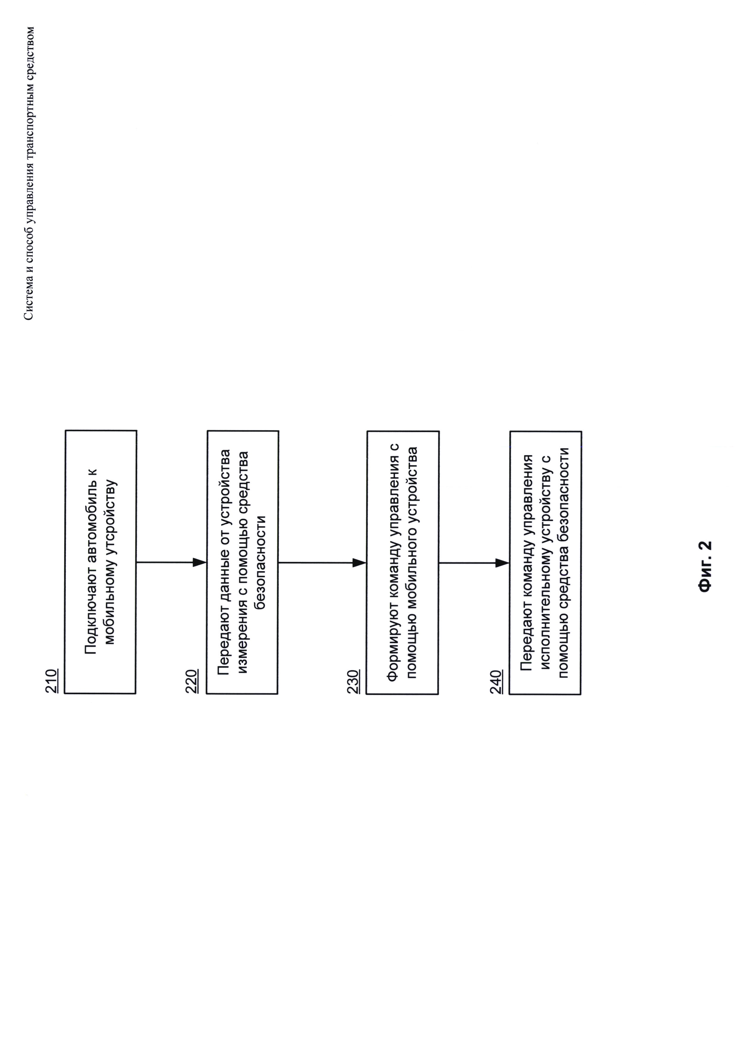 Изобретение относится к системам управления транспортным средством. Транспортное средство содержит по меньшей мере одно исполнительное средство и по меньшей мере одно средство измерения. Система управления транспортным средством содержит мобильное устройство, по меньшей мере одно средство безопасности. Мобильное устройство предназначено для управления исполнительным средством транспортного средства, при этом мобильное устройство формирует команды для управления исполнительным средством на основании данных, полученных от по меньшей мере одного средства измерения. Средство безопасности предназначено для подключения транспортного средства к мобильному устройству в качестве периферийного устройства, безопасной передачи данных от средства измерения транспортного средства к мобильному устройству и обеспечения безопасной передачи сформированных команд от мобильного устройства к исполнительному средству транспортного средства. Достигается повышение безопасности управления автомобилем с использованием мобильного устройства. 2 н. и 10 з.п. ф-лы, 6 ил.