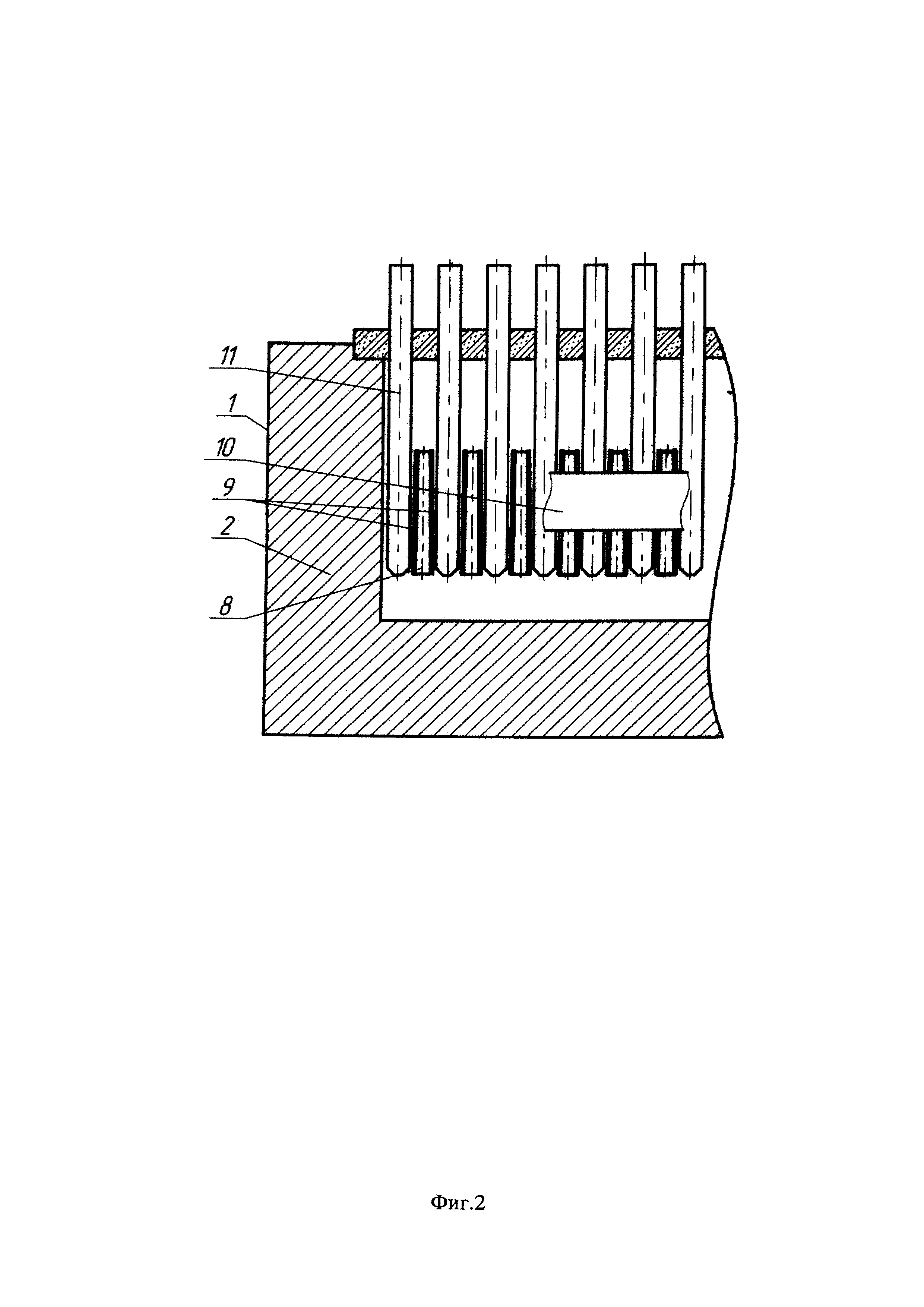Изобретение относится к цветной металлургии, а именно к устройствам для получения магния и хлора электролизом расплавленных солей. Технология электролитического производства магния предусматривает равномерное распределение плотности тока по рабочим поверхностям анодов и катодов. С этой целью аноды и катоды устанавливаются параллельно, а их рабочие поверхности на всем протяжении имеют постоянную высоту (Лебедев О.А. Производство магния электролизом. - М.: Металлургия, 1988, с. 190-199). Основным недостатком известных электролизеров является возникновение застойных зон электролита в электрохимических ячейках и, как следствие, длительный контакт магния, всплывающего на поверхность, с хлором газовой фазы. Задача, следовательно, заключается в создании конструкции электролизеров с упорядоченной, управляемой циркуляцией электролита, имеющей четко выраженную вертикальную составляющую, обеспечивающую быстрый вынос магния в сборную ячейку. Известен электролизер для получения магния (А.с. 585237, опубл. 25.12.77, бюл. 47) с верхним вводом анодов, включающий сборную, электролитическую и катодные ячейки, аноды, анодные перекрытия с разделительной перегородкой, катоды, выполненные в виде металлических листов, установленных по обеим сторонам анодов под углом относительно их рабочих поверхностей, в катодных ячейках по всей длине катода укреплены в наклонном положении металлические листы, выполненные со щелями, а катоды укреплены под углом относительно горизонтальной плоскости, вследствие чего межполюсное расстояние уменьшено сверху вниз. Недостатком данного электролизера является то, что при равномерном распределении плотности тока на катоде не создается направленной циркуляции электролита с магнием в сторону сборной ячейки, и потери магния за счет взаимодействия его с хлором сравнительно высоки, так как в межэлектродном пространстве не исключаются встречные потоки и замкнутая циркуляция газожидкостных потоков. Известен электролизер для получения магния и хлора (Пат. РФ №1782065, опубл. 20.03.95 г., бюл. 8), включающий футерованную ванну, разделенную перегородкой с верхним и нижним переточными окнами на сборную ячейку и электролитическую ячейку, в которой размещены аноды и катоды, выполненные в виде двух параллельных пластин, между которыми размещены наклонные направляющие полочки с уклоном к сборной ячейке. Данная конструкция электролизера позволяет за счет создания оптимальных гидродинамических условий снизить потери магния и повысить, таким образом, выход магния по току. Недостатком данного электролизера является то, что данная конструкция не позволяет снизить расход электроэнергии, так как при подобном размещении катода и анода нельзя уменьшить межэлектродное расстояние, и тем самым уменьшить электросопротивление электролита между катодом и анодом, что приводит к большим потерям электроэнергии во время проведения процесса электролиза. Известен магниевый электролизер с направленной циркуляцией электролита (патент РФ №2095482, опубл. 10.11.1997), включающий металлический кожух с огнеупорной футеровкой, образующей рабочее пространство, разделенное перегородкой с переточными каналами на отделение для накопления магния и электролитическое отделение для размещения введенных через футерованные стенки стальных катодов с экранами 