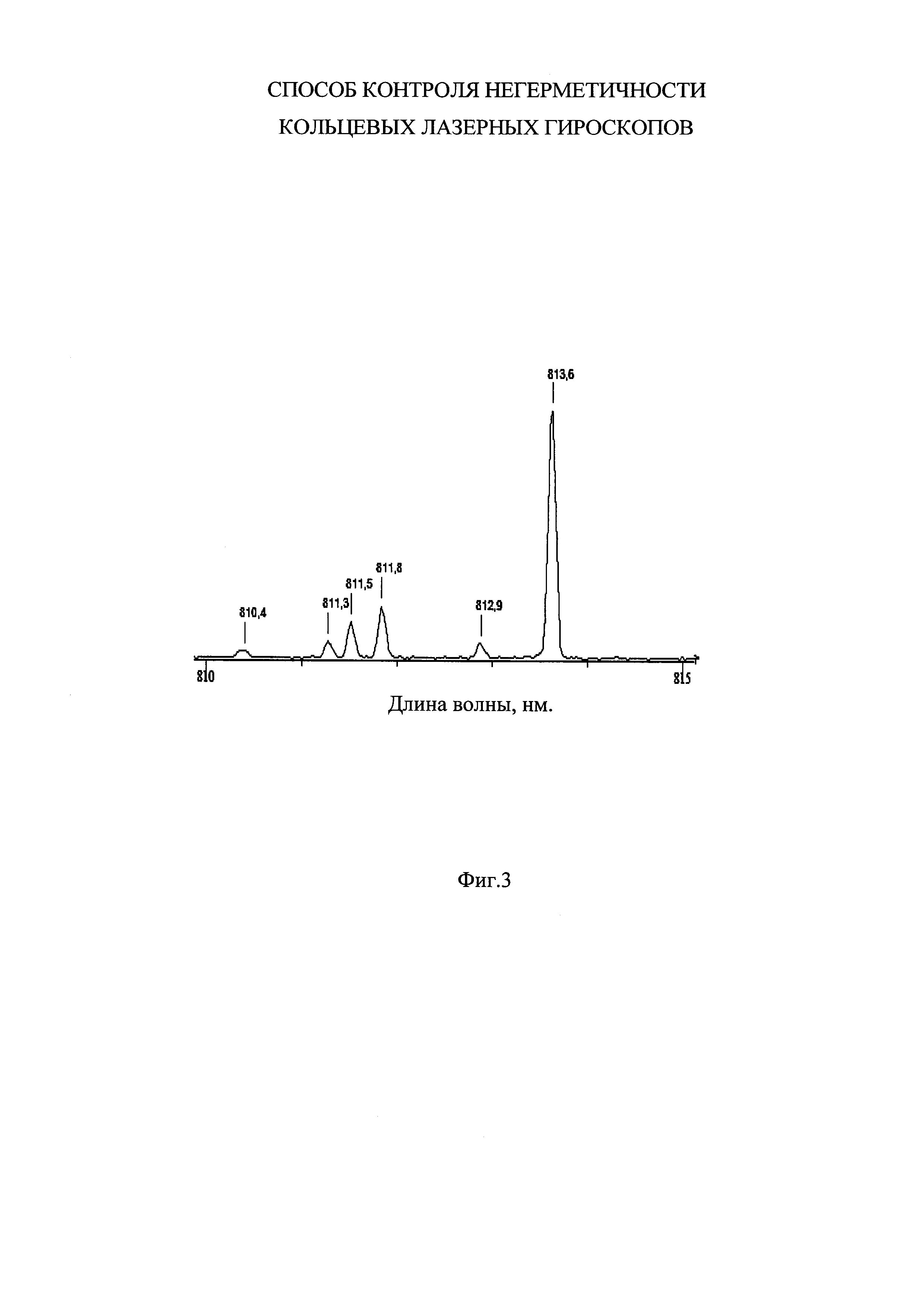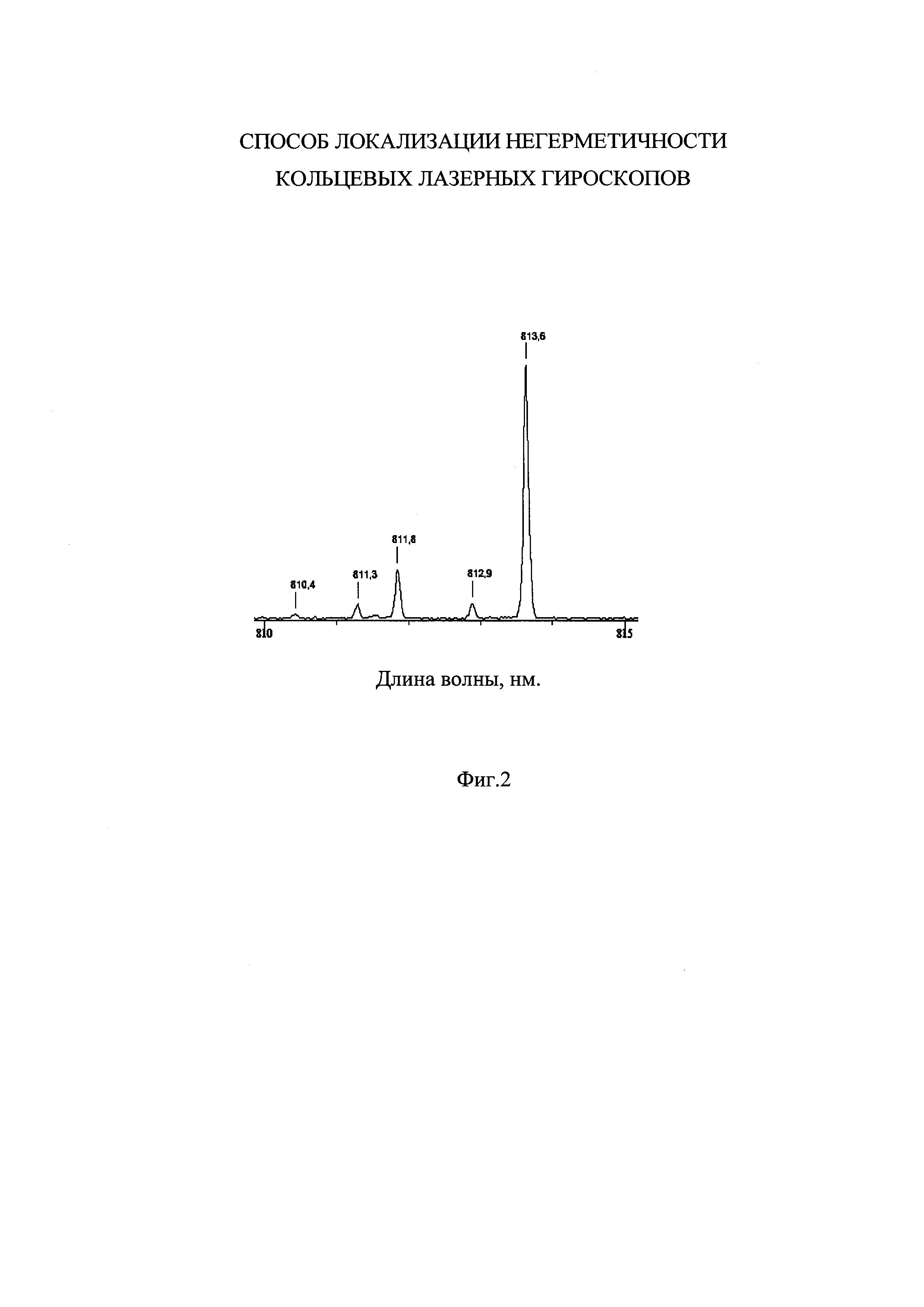 Изобретение относится к области лазерной техники и касается способа локализации негерметичности кольцевых лазерных гироскопов. Способ заключается в том, что в лазерном гироскопе возбуждают тлеющий разряд и регистрируют спектр излучения. Далее разряд гасят и последовательно устанавливают герметичный колпачок на детали гироскопа, соединенные с корпусом либо методом оптического контакта, либо через индиевое уплотнение. Под колпачок подается индикаторный газ и выдерживается с избыточным давлением в течение заданного времени. После каждой установки и выдержки в лазерном гироскопе вновь возбуждают тлеющий разряд и регистрируют появление в спектре излучения спектральной линии индикаторного газа. Появление спектральной линии индикаторного газа или рост ее интенсивности свидетельствует о негерметичности соединения данной детали с корпусом. Технический результат заключается в обеспечении возможности однозначной локализации источника негерметичности. 3 ил.