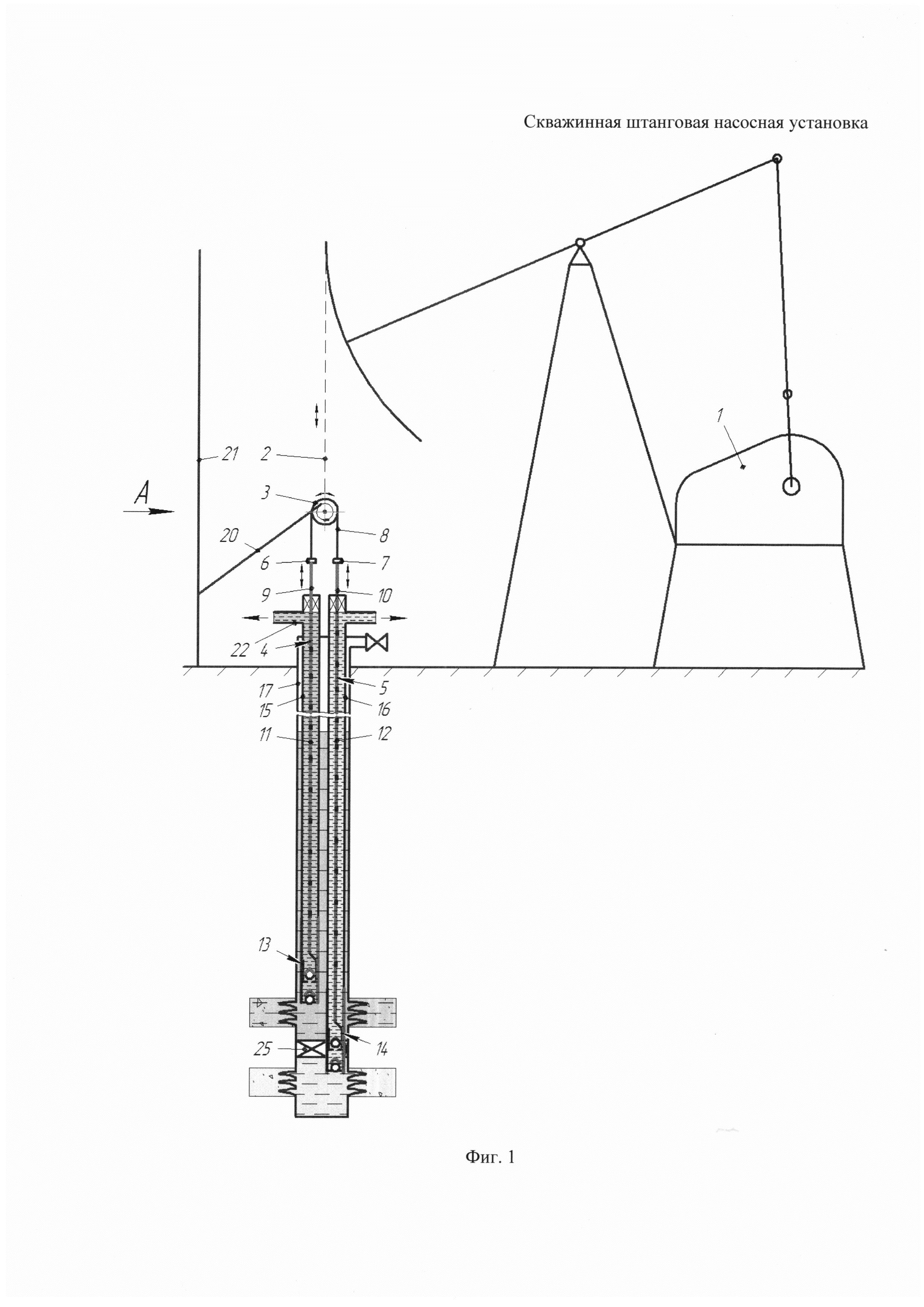 Изобретение относится к техническим средствам для подъема жидкости из скважин и может быть использовано в нефтедобывающей промышленности для добычи нефти скважинными штанговыми насосами. Известна установка для одновременно-раздельной эксплуатации двух пластов (патент RU №72720, МПК E21B 43/14, опубл. 27.04.2008, бюл. №12), включающая основной и дополнительный приводы, пакер, установленный между верхним и нижним продуктивными пластами, основную, сообщенную с подпакерным пространством скважины, и дополнительную, сообщенную с надпакерным пространством скважины, лифтовые трубы со штанговыми насосами, закрепленными на устье скважины двухствольной арматурой, содержащей фланец с устьевыми сальниками и двумя каналами, снабженными отверстиями для крепления к устью скважины, трубодержатель основных лифтовых труб, оснащенный резьбой, и трубодержатель дополнительных лифтовых труб с верхней и нижней резьбами, изготовленный в виде полой резьбовой втулки, которая выполнена с возможностью герметичной фиксации непосредственно во втором канале фланца, причем установка оснащена параллельным якорем, установленным на обеих лифтовых трубах и выполненным с возможностью фиксации их относительно друг друга, при этом трубодержатель основных лифтовых труб двухствольной арматуры выполнен в виде резьбы первого канала фланца непосредственно снизу фланца. Герметизирующие головки могут быть выполнены различной высоты относительно фланца, а основной и дополнительный приводы могут быть установлены на основаниях различной высоты. Дополнительные лифтовые трубы могут быть выполнены с возможностью отсоединения от параллельного якоря натяжением с поворотом по часовой стрелке. Сальники могут быть снабжены шарнирным соединением, позволяющим отклоняться им от вертикали в процессе установки и работы приводов. Пакер может быть выполнен с возможностью фиксации и натяжения основных лифтовых труб. Недостатками известной установки являются необходимость применения дополнительного привода и связанные с этим дополнительные существенные затраты на оснащение им установки, на его монтаж на скважине, обслуживание и ремонт при эксплуатации, на электроэнергию для его работы, на демонтаж одного из приводов и последующего монтажа заново при подземном ремонте скважины, что в результате приводит к снижению рентабельности добычи нефти или к увеличению себестоимости добытой нефти. Известен станок-качалка (патент SU №682668, МПК F04B 47/02, опубл. 30.08.1979, бюл. №32) для привода глубинных штанговых насосов в двухствольных скважинах, установленный на фундаменте, содержащий раму, стойку, балансир, головку балансира и канатную подвеску, причем с целью упрощения конструкции и повышения эффективности его в работе путем осуществления возможности работы насоса во второй, рядом расположенной скважине от холостого хода головки балансира, в нижней части головки балансира, с ее тыльной стороны, установлен роликовый узел для крепления канатной подвески, а рама снабжена стрелой, причем на фундаменте установлена дополнительная стойка, взаимодействующая со стрелой и имеющая ось, на которой установлен шкив. Недостатками устройства являются необходимость строительства фундамента под стойку, отсутствие возможности индивидуального регулирования скорости откачки для каждой скважин