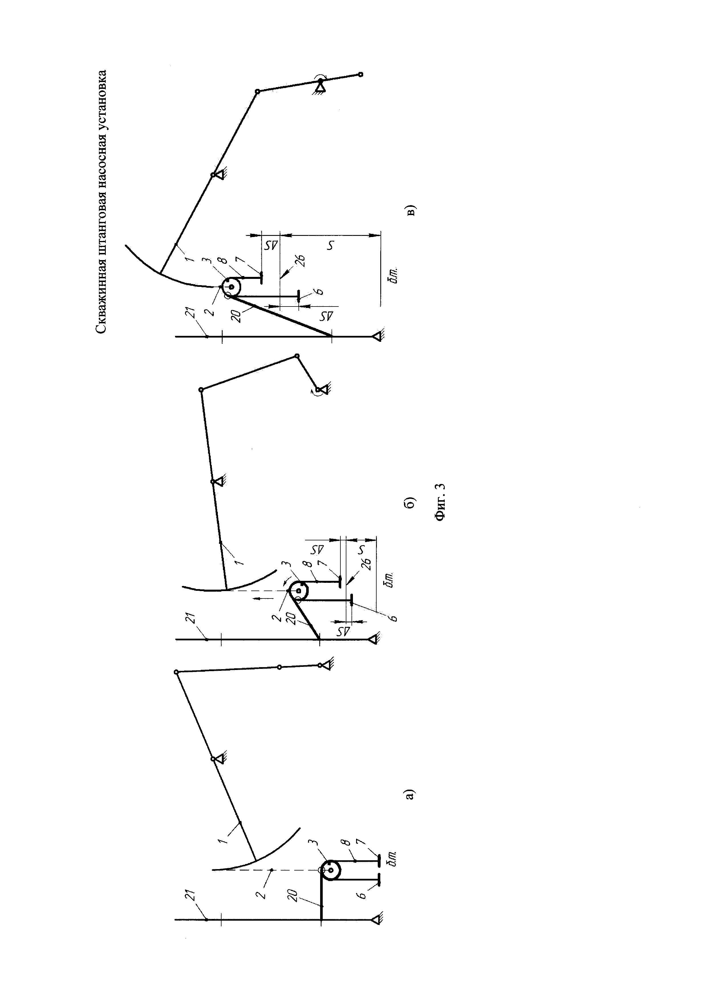 , где DРП0 - диаметр реверсивного приводного органа 3; iп - передаточное отношение регулируемой механической передачи 24. Подбирая различные сочетания диаметров барабана 19, реверсивного приводного органа 3 и передаточное отношение регулируемой механической передачи 24, можно увеличить или уменьшить ход линий подъема жидкости относительно хода силового привода в широких пределах. Например, можно принять диаметр барабана 19 равным