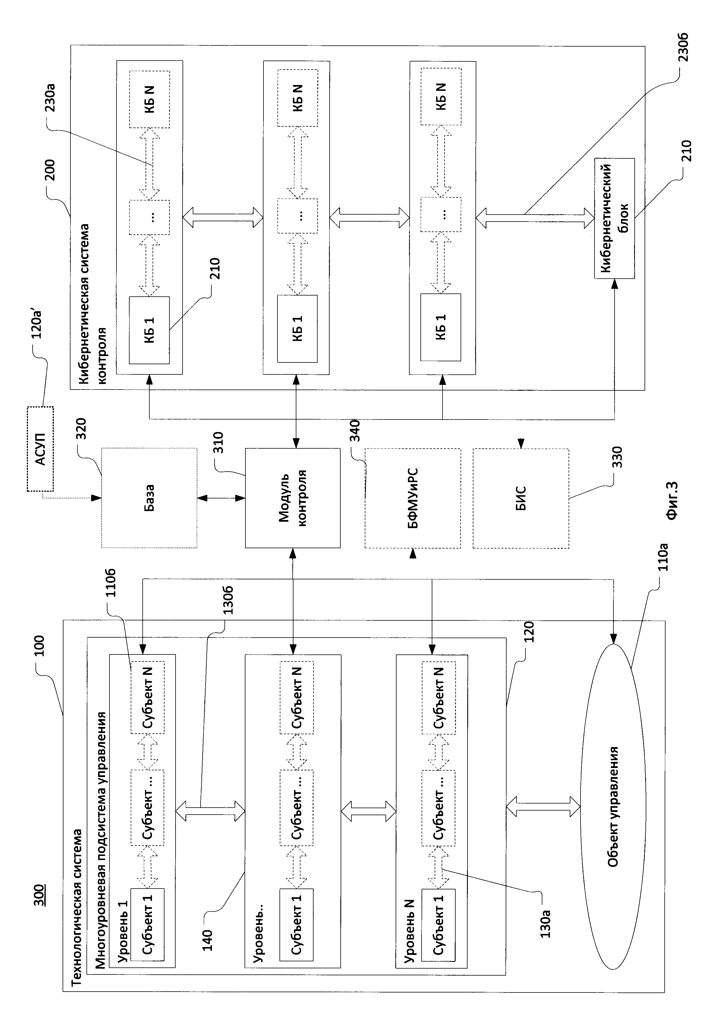 1. Система признания идеального состояния технологической системы, определенного кибернетической системой, ошибкой моделирования, при реализации управляющих воздействий субъектами управления многоуровневой подсистемы управления технологической системы на объект управления содержит: а) технологическую систему, реализующую через изменение состояний субъектов управления изменение состояния объекта управления, при этом технологическая система представляет функционально взаимосвязанную совокупность элементов: - объекта управления; и - субъектов управления, образующих многоуровневую подсистему управления объектом управления; б) кибернетическую систему контроля, состоящую из взаимосвязанных кибернетических блоков, где каждый кибернетический блок в отдельности моделирует изменение состояния отдельного элемента технологической системы, при этом взаимосвязь кибернетических блоков в кибернетической системе повторяет взаимосвязь элементов технологической системы, изменение состояния которых блоки моделируют, предназначенной для: - определения идеального состояния технологической системы и ее элементов для момента времени путем моделирования; - определения идеального состояния элементов технологической системы путем моделирования при заданном состоянии одного из элементов технологической системы; в) модуль контроля, связанный с технологической системой и с кибернетической системой контроля, предназначенный для: - получения реального состояния технологической системы и ее элементов в произвольный момент времени, где реальное состояние технологической системы определяется совокупностью состояний ее элементов; - инициализации кибернетической системы контроля путем синхронизации кибернетической системы контроля с технологической системой по времени или по состоянию одного из элементов технологической системы; - сравнения полученного реального состояния технологической системы и ее элементов с идеальным состоянием технологической системы и ее элементов, определенным кибернетической системой контроля; - обнаружения в результате сравнения отклонения реального состояния технологической системы от идеального состояния определенного кибернетической системой контроля; - проверки целостности функциональной взаимосвязи состояний элементов технологической системы, где сравнивают идеальное состояние субъектов управления технологической системы, определенное кибернетической системой при заданном состоянии объекта управления, с реальным состоянием субъектов управления технологической системы при том же состоянии объекта управления; - признания идеального состояния технологической системы, определенного кибернетической системой для момента времени, ошибкой моделирования на основании подтвержденной сохраненной функциональной взаимосвязи элементов технологической системы. 2. Система по п.1, в которой кибернетическая система предназначена для определения, при заданном состоянии объекта управления, идеального состояния субъектов управления. 3. Система по п.1, в которой кибернетическая система предназначена для определения, при заданном состоянии субъекта управления, идеального состояния других субъектов управления и объекта управления. 4. Система по п.1, в которой изменение состояния 