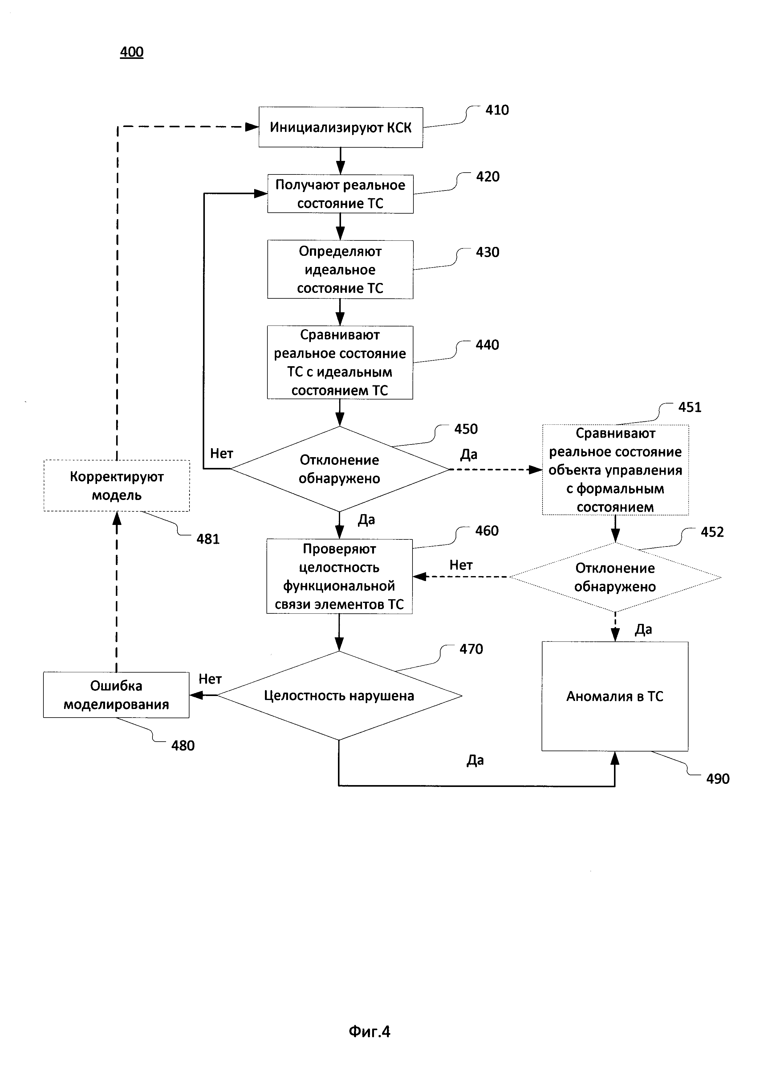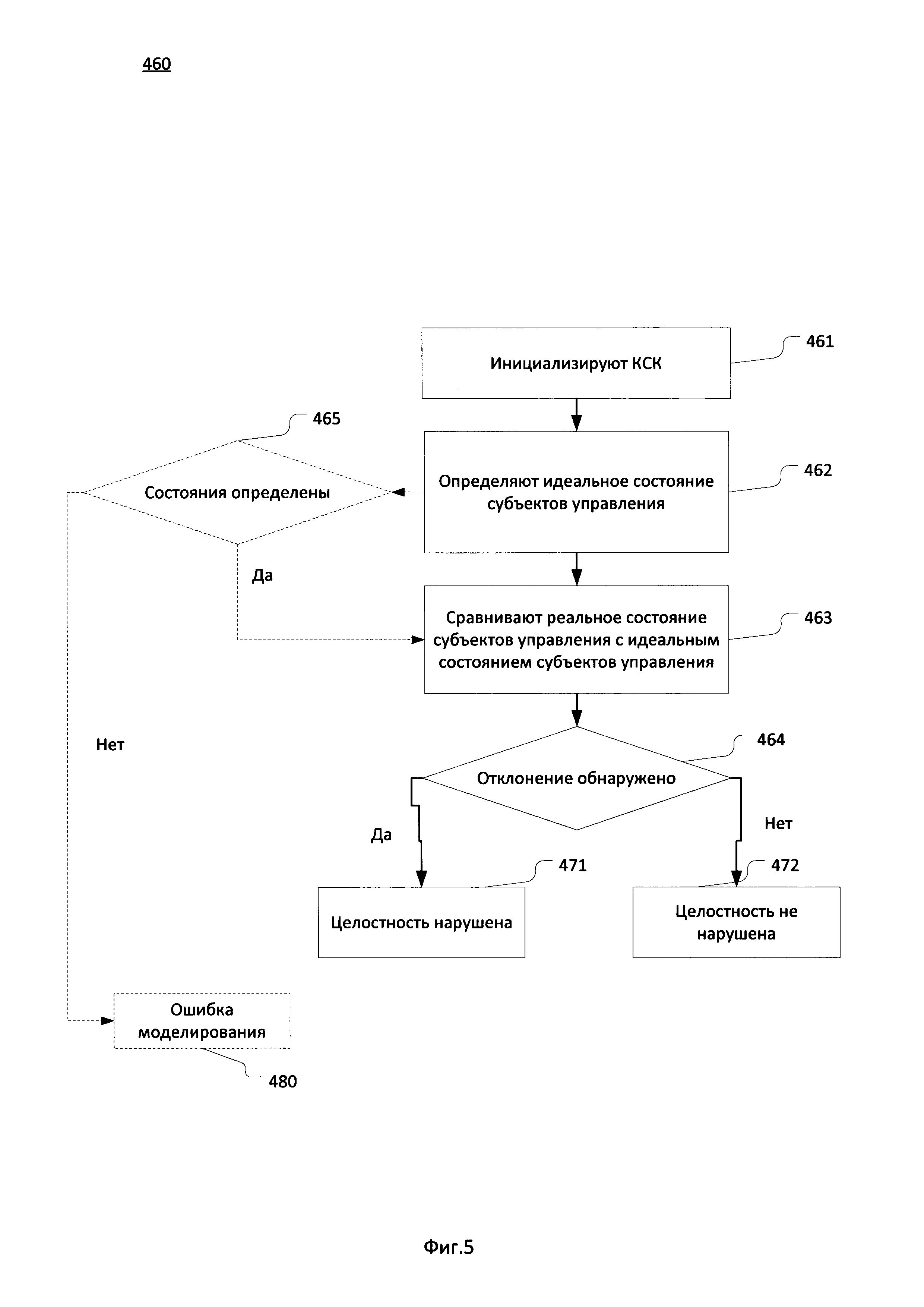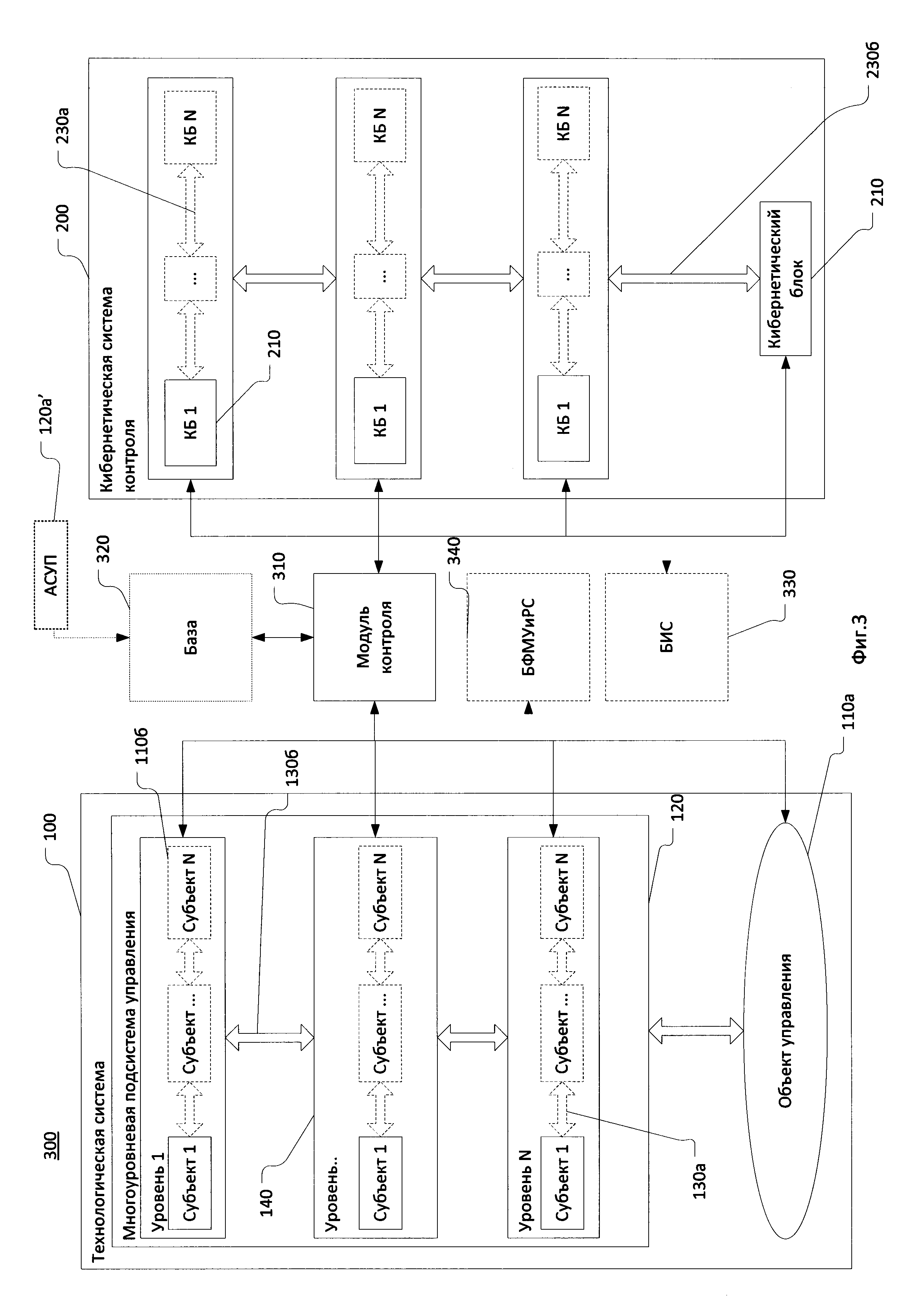 1. Система обнаружения аномалии в технологической системе на основании проверки целостности функциональной взаимосвязи состояний элементов технологической системы при реализации управляющих воздействий субъектами управления многоуровневой подсистемы управления технологической системы на объект управления содержит: а) технологическую систему, реализующую через изменение состояний субъектов управления изменение состояния объекта управления, при этом технологическая система представляет функционально взаимосвязанную совокупность элементов: - объекта управления и; - субъектов управления, образующих многоуровневую подсистему управления объектом управления; б) кибернетическую систему контроля, моделирующую изменение состояния технологической системы, состоящую из взаимосвязанных кибернетических блоков, где каждый кибернетический блок в отдельности моделирует изменение состояния отдельного элемента технологической системы, при этом взаимосвязь кибернетических блоков в кибернетической системе повторяет взаимосвязь элементов технологической системы, изменение состояния которых блоки моделируют, предназначенной для: - определения идеального состояния технологической системы и ее элементов для момента времени путем моделирования; - определения идеального состояния элементов технологической системы путем моделирования при заданном состоянии одного из элементов технологической системы, где в качестве заданного используется реальное состояние объекта управления; в) модуль контроля, связанный с технологической системой и с кибернетической системой контроля, предназначенный для: - получения реального состояния технологической системы и ее элементов в произвольный момент времени, где реальное состояние технологической системы определяется совокупностью состояний ее элементов; - инициализации кибернетической системы контроля, путем синхронизации кибернетической системы контроля с технологической системой по времени или по состоянию одного из элементов технологической системы; - сравнения полученного реального состояния технологической системы и ее элементов с идеальным состоянием технологической системы и ее элементов, определенным кибернетической системой контроля; - обнаружения в результате сравнения отклонения реального состояния технологической системы от идеального состояния определенного кибернетической системой контроля; - проверки целостности функциональной взаимосвязи состояний элементов технологической системы, где сравнивают идеальное состояние субъектов управления технологической системы, определенное кибернетической системой при заданном состоянии объекта управления, с реальным состоянием субъектов управления технологической системы при том же состоянии объекта управления; - обнаружения аномалии в технологической системе на основании обнаруженного отсутствия функциональной взаимосвязи элементов технологической системы. 2. Система по п. 1, в которой кибернетическая система предназначена для определения, при заданном состоянии объекта управления, идеального состояния субъектов управления. 3. Система по п. 1, в которой кибернетическая система предназначена для определения, при заданном состоянии субъекта управления, идеального состояния других субъектов у