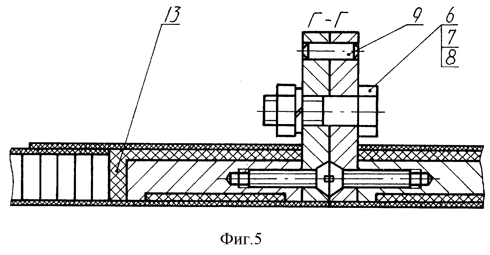 центральной панели посредством болтового и штифтового соединений (фиг.5). 13. Полимеризуют клеевой состав и ПКС в режиме холодного отверждения. 14. Отживают сборку