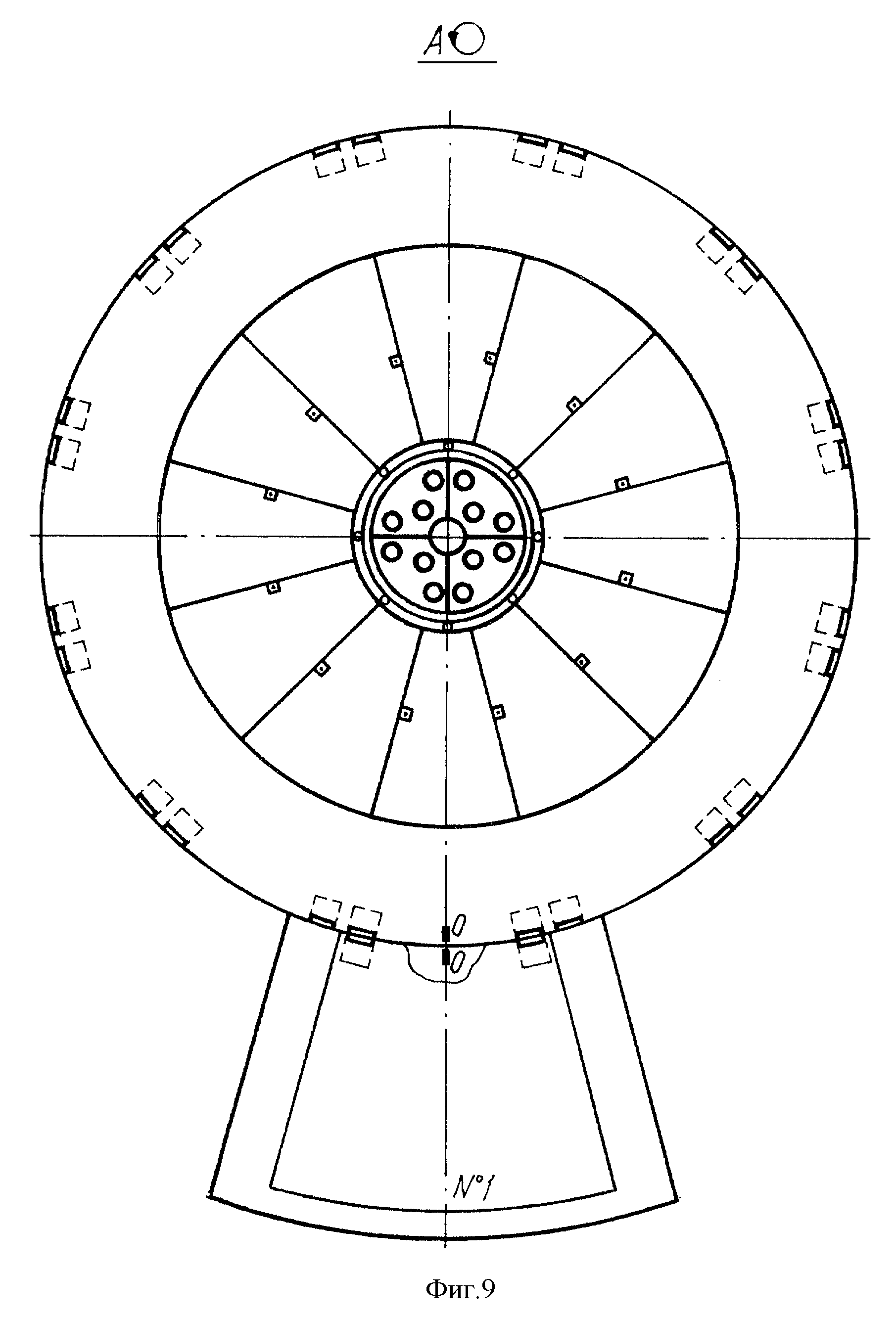 совмещая штрихи 0-0, как это показано на фиг.9. 7. Устанавливают боковую секторную кольцевую панель 1 на