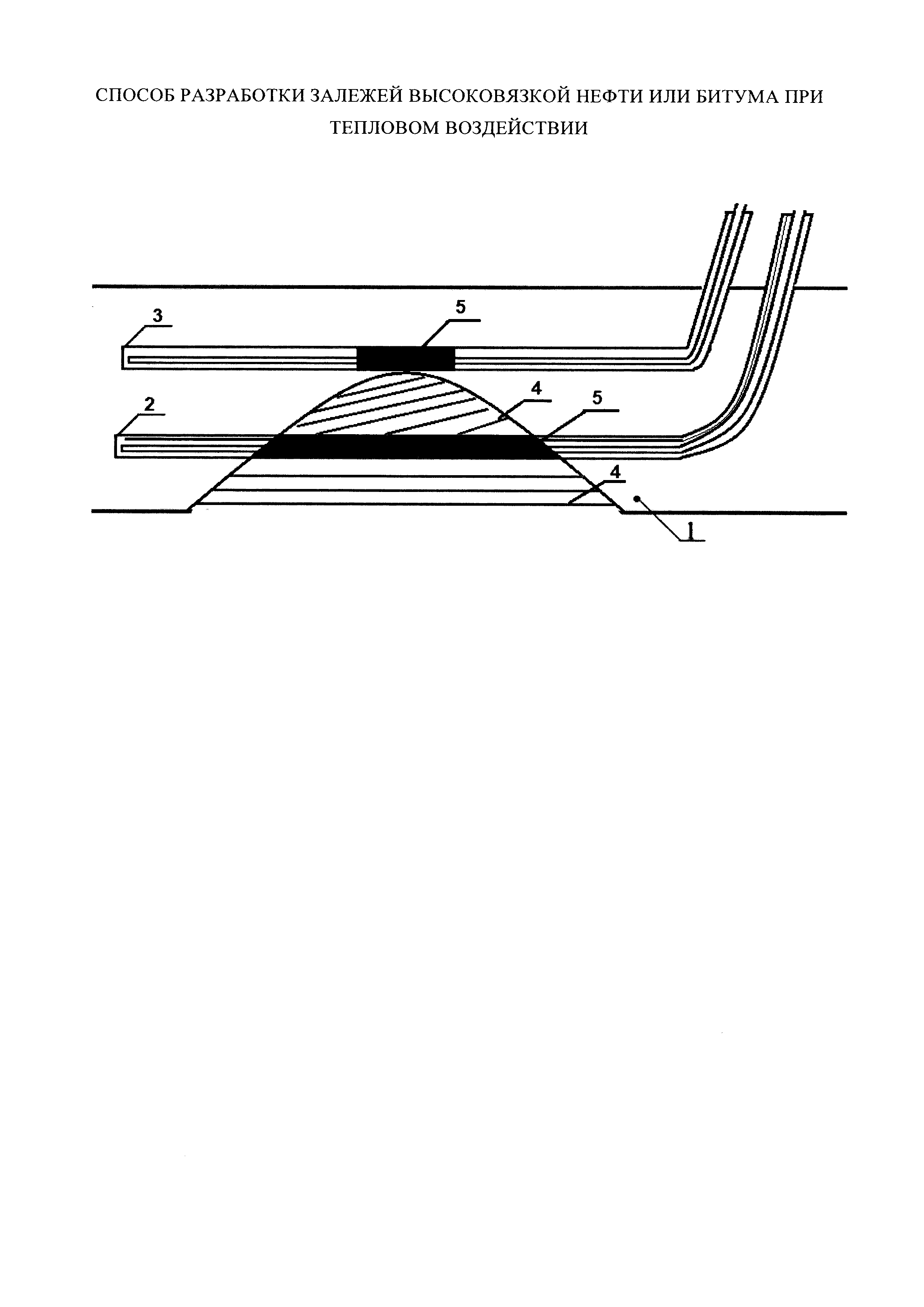 Способ разработки залежей высоковязких нефтей и битумов при тепловом воздействии, включающий строительство добывающей скважины с горизонтальным вскрытым участком в продуктивном пласте, строительство нагнетательной скважины с горизонтальным вскрытым участком, расположенным над аналогичным участком добывающей скважины в этом же пласте, по геофизическим исследованиям определение нефтенасыщенности в зоне добывающей скважины, в зависимости от нефтенасыщенности в интервалы с наименьшей нефтенасыщенностью закачку водонепроницаемого состава, закачку теплоносителя в нагнетательную скважину и отбор продукции пласта из добывающей скважины, отличающийся тем, что в нагнетательной и добывающей скважинах по геофизическим исследованиям определяют интервалы с наименьшей нефтенасыщенностью, в которые закачивают водонепроницаемый состав с запасом 2 м с каждой стороны через нагнетательную и добывающую скважины, причем в качестве водонепроницаемого состава используют гелеобразующие термостойкие составы, после технологической выдержки для схватывания водонепроницаемого состава, но до закачки пара стволы нагнетательной и добывающей скважин освобождают от остатков этого состава.