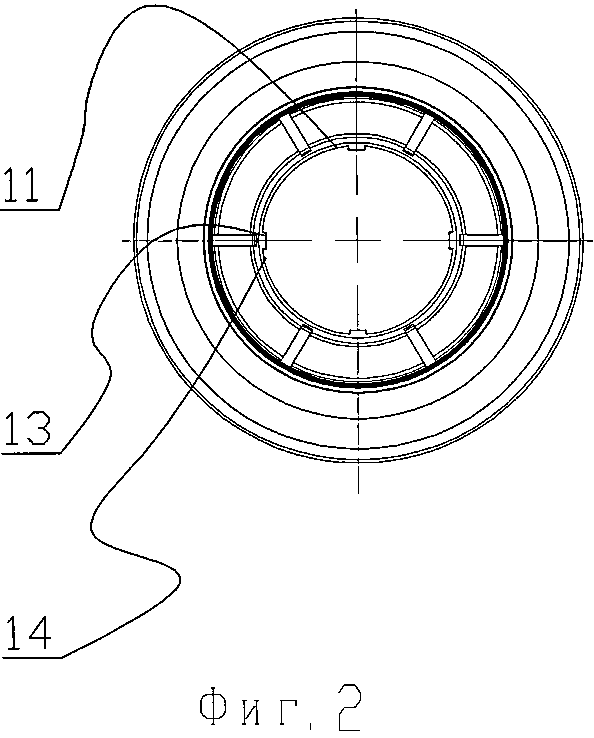 Изобретение относится к средствам укупоривания бутылок, но может найти применение для укупоривания и других емкостей для жидких и сыпучих веществ. Известна предохранительная пробка, содержащая крышку, с фиксатором, взаимодействующим с клапаном, седло клапана (см., например, патенты РФ №№007668, 78172, 79528). В аналогах предохранительные пробки имеют в своем составе клапаны различной конструкции, которые разделяют внутреннюю полость предохранительной пробки с полостью бутылки. Таким образом клапаны предотвращают повторное заполнение бутылки злоумышленником жидкостью неустановленного содержания. Известные клапаны хотя и выполняют свое назначение, но имеют ряд недостатков. Клапан уплотняется ("залипает") в седле и при создании разрежения в бутылке, например при охлаждении и уменьшении объема водки, притягивается созданным разрежением к седлу. При попытке налива из открытой бутылки жидкости клапан не перемещается под действием силы тяжести и давления столба жидкости, разрежение в бутылке препятствует перемещению клапана. Технический результат заключается в создании конструкции седла клапана, которая устраняет вышеупомянутый недостаток. Указанный технический результат достигается тем, что в предохранительной пробке, содержащей крышку с фиксатором, взаимодействующим с клапаном, седло клапана, седло клапана выполнено с взаимодействующими с клапаном упругими элементами, ограничивающими каналы при открытом клапане. Сущность изобретения поясняется чертежами. Фиг.1 - бутылка, укупоренная предохранительной пробкой; фиг.2 - вид на клапанное устройство. Предохранительная пробка 1 установлена на бутылку 2 с кольцевым выступом 3, радиальными ребрами 4. Предохранительная пробка 1 состоит из отливочной воронки 5 с трубкой 6, крышки 7 с фиксатором 8 (нажимным элементом), металлического колпачка 9, прокладки 10 с седлом 11 клапана 12. Седло 11 имеет упругие элементы 13, ограничивающие при открытом клапане каналы 14. Клапан 12 содержит диск 15 со сферической боковой поверхностью 16 и нижней конической поверхностью 17 и направляющей втулкой 18. Коническая поверхность 17 деформирует упругие элементы 13 и закрывает каналы 14. При открывании бутылки 2 крышка 7 удаляется, упругие элементы 13 приподнимают клапан 12, открывают каналы 14 и давление над и под клапаном 12 выравнивается.
