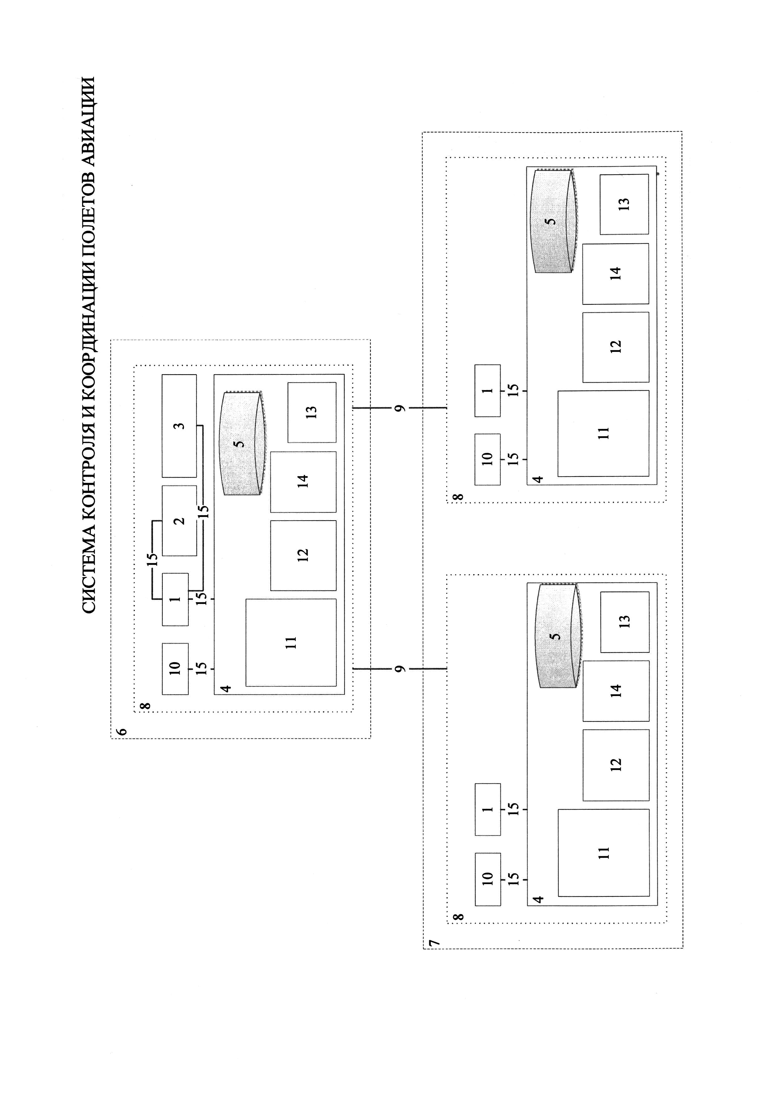 Система контроля и координации полетов авиации содержит верхний уровень автоматизации и нижние уровни автоматизации. Верхний уровень автоматизации содержит автоматизированные рабочие места, сервер передачи данных, сервер базы данных, средство отображения коллективного пользования, многофункциональное печатающее устройство. Каждый из нижних уровней автоматизации содержит объекты автоматизации, связанные глобальной вычислительной сетью. Каждый из объектов автоматизации содержит автоматизированные рабочие места, сервер передачи данных, сервер базы данных, объединенных локальной вычислительной сетью. Сервер базы данных для всех уровней автоматизации содержит вычислительно-логические модули ввода-вывода и управления информационным обменом нормативно-справочной информации, вычислительно-логический модуль планирования и контроля полетов и перелетов, модуль решения расчетных задач, модуль отображения информации на картографическом фоне, централизованное хранилище информации. Обеспечивается оперативность обработки информации о планируемых полетах и перелетах. 7 з.п. ф-лы, 1 ил.