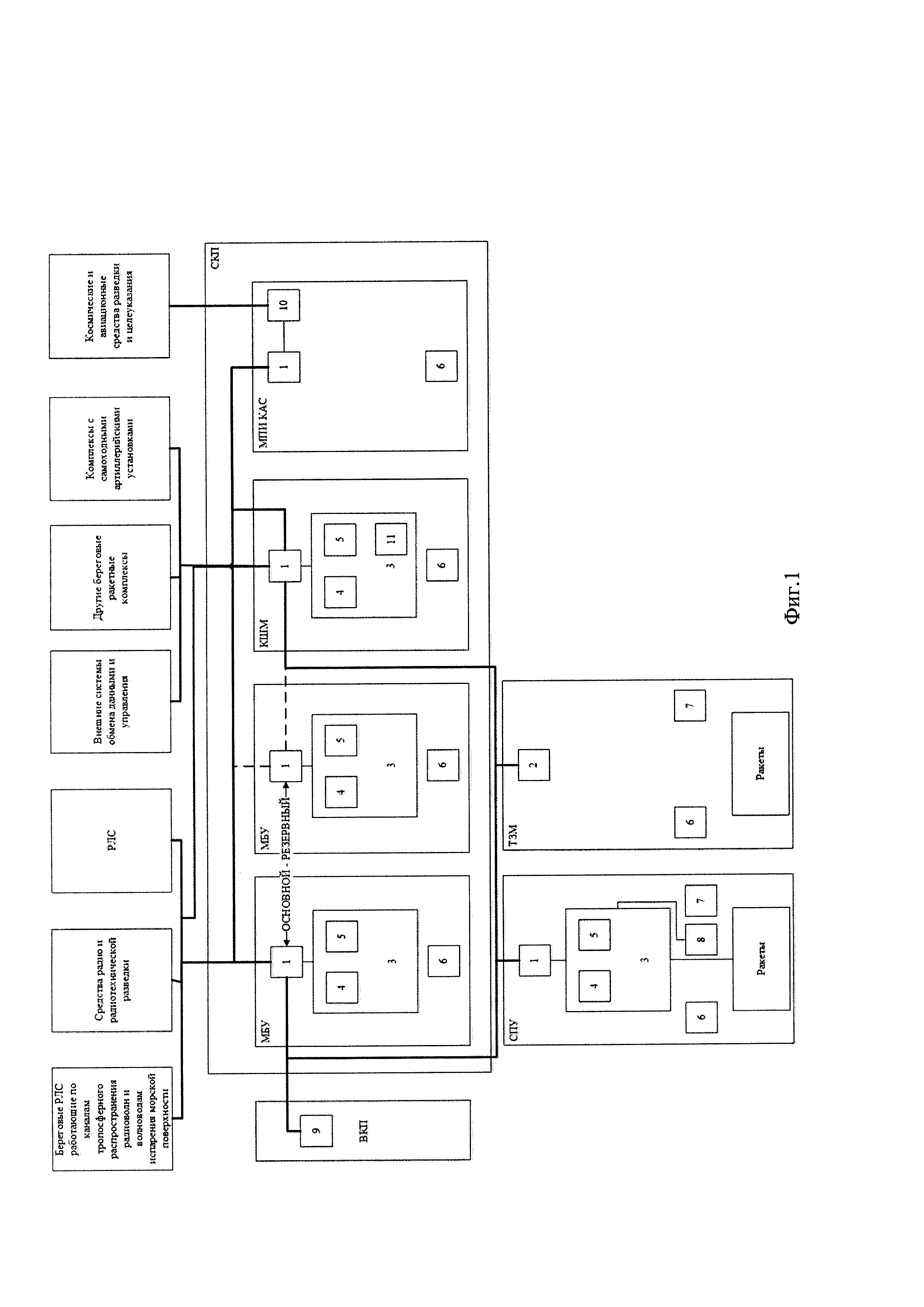 Изобретение относится к мобильным системам вооружений берегового базирования и может быть использован для нанесения высокоточных ракетных ударов по морским одиночным и групповым (корабельные ударные группы, конвои, десантные соединения) и наземным целям. Известна система «Экзосет» (Франция) («Military Defence» 1995 г., V 19, №2, pp. 24-26, 28-31. Massimo Annati «Costal Defence; issues and solutions»), которая является береговой системой ракетного вооружения, содержащая модули целеуказания и управления и самоходные пусковые установки. Данная система содержит одну активную радиолокационную станцию, входящую в модуль целеуказания и не содержит пассивного канала радиолокации, что не обеспечивает скрытность функционирования этого комплекса. Известен также береговой ракетный противокорабельный комплекс «Гарпун» (США) ( Наиболее близким по технической сущности и достигнутому результату является «Береговой ракетный противокорабельный комплекс» (Патент на изобретение RU 2389967 С1, 09.09.2008 г.). Этот комплекс содержит два самоходных командных пункта (СКП) управления и связи в состав каждого из которых входят активная и пассивная радиолокационная станции, подключенные к совмещенной антенне, оборудованные системой связи и обмена данными между СКП, самоходные пусковые установки (СПУ) с ракетами, включающие систему связи и обмена данными, соединенные с системами связи и обмена данными с самоходными командными пунктами, систему управления, систему топопривязки и ориентирования. Наличие пассивной радиолокационной станции позволяет снизить радиозаметность комплекса. Однако, наличие в радиолокационных как в активных, так и в пассивных станциях большеразмерных антенн, является существенным демаскирующим фактором, даже в режиме молчания РЛС не позволяет обеспечивать незаметность от средств обнаружения и поражения противника, а после пуска ракет СПУ вынуждены покидать стартовую позицию для перезарядки в условиях технической позиции. Все это снижает боевую эффективность данного комплекса в целом. Задачей данного изобретения является повышение боевой эффективности БРК путем более надежного преодоления противоракетной обороны противника, повышение информативности целеуказания и живучести комплекса, обеспечение возможности перезаряжания СПУ ракетами в полевых условиях, снижение его заметности в радиолокационном, оптическом и радиотепловом диапазонах электромагнитного излучения и расширением его функциональных возможностей. Технический результат достигается тем, что: - береговой ракетный комплекс (БРК), включающий самоходный командный пункт (СКП) управления содержащий машину боевого управления (МБУ), оборудованную системой управления, системой связи и обмена данными, которая соединена с системой связи и обмена данными самоходных пусковых установок (СПУ) с ракетами, содержащих систему управления, систему топопривязки и ориентирования, при этом системы управления МБУ и СПУ выполнены с возможностью соединения с помощью системы связи и обмена данными с источниками целеуказания - наземными радиолокационными станциями (РЛС) и вышестоящим командным пунктом (ВКП), при этом БРК выполнен с возможностью включения подвижных транспортно-заряжающих машин (ТЗМ), обеспечивающих перезагрузку СПУ ракетами в полевых условиях и соединения системой связи с МБУ, СПУ и ВКП, а СП