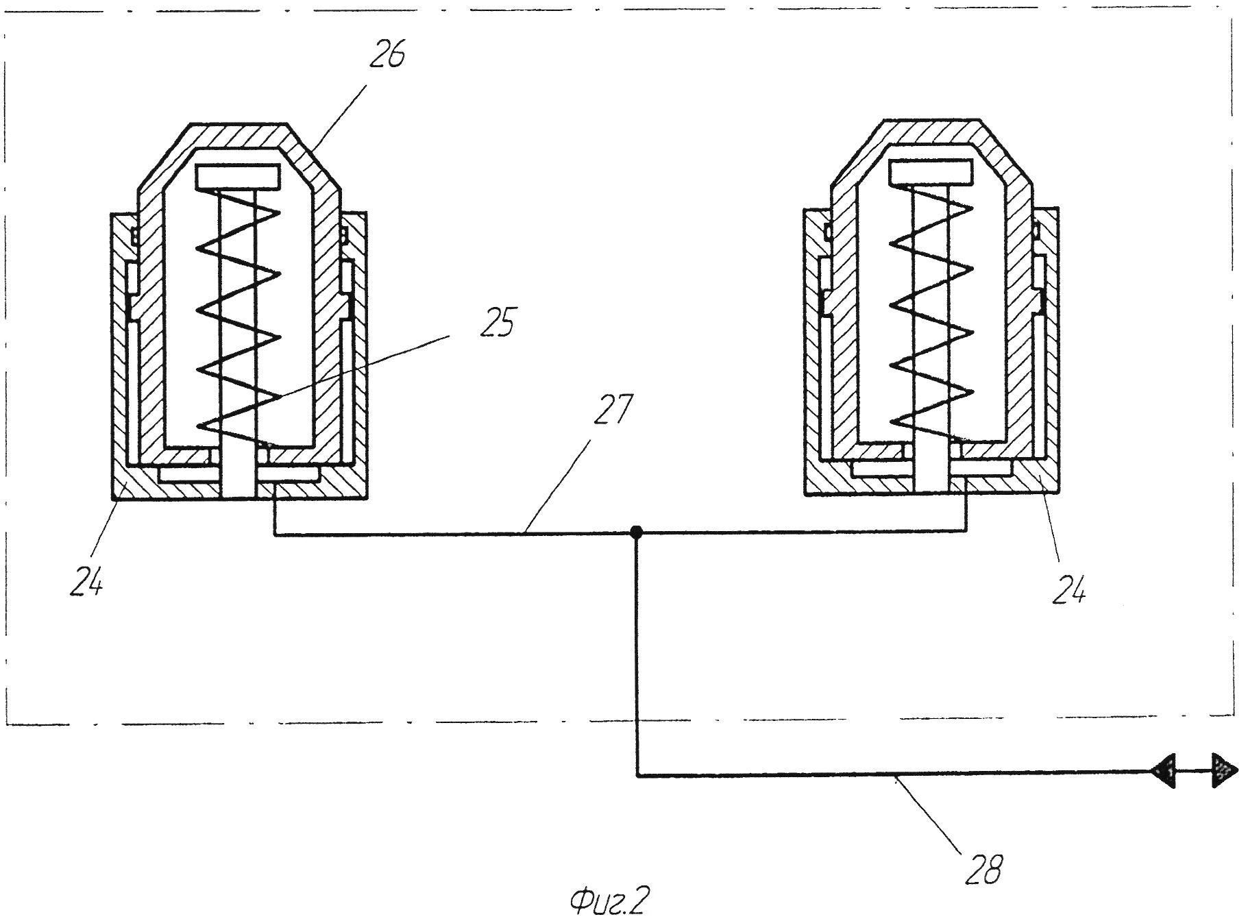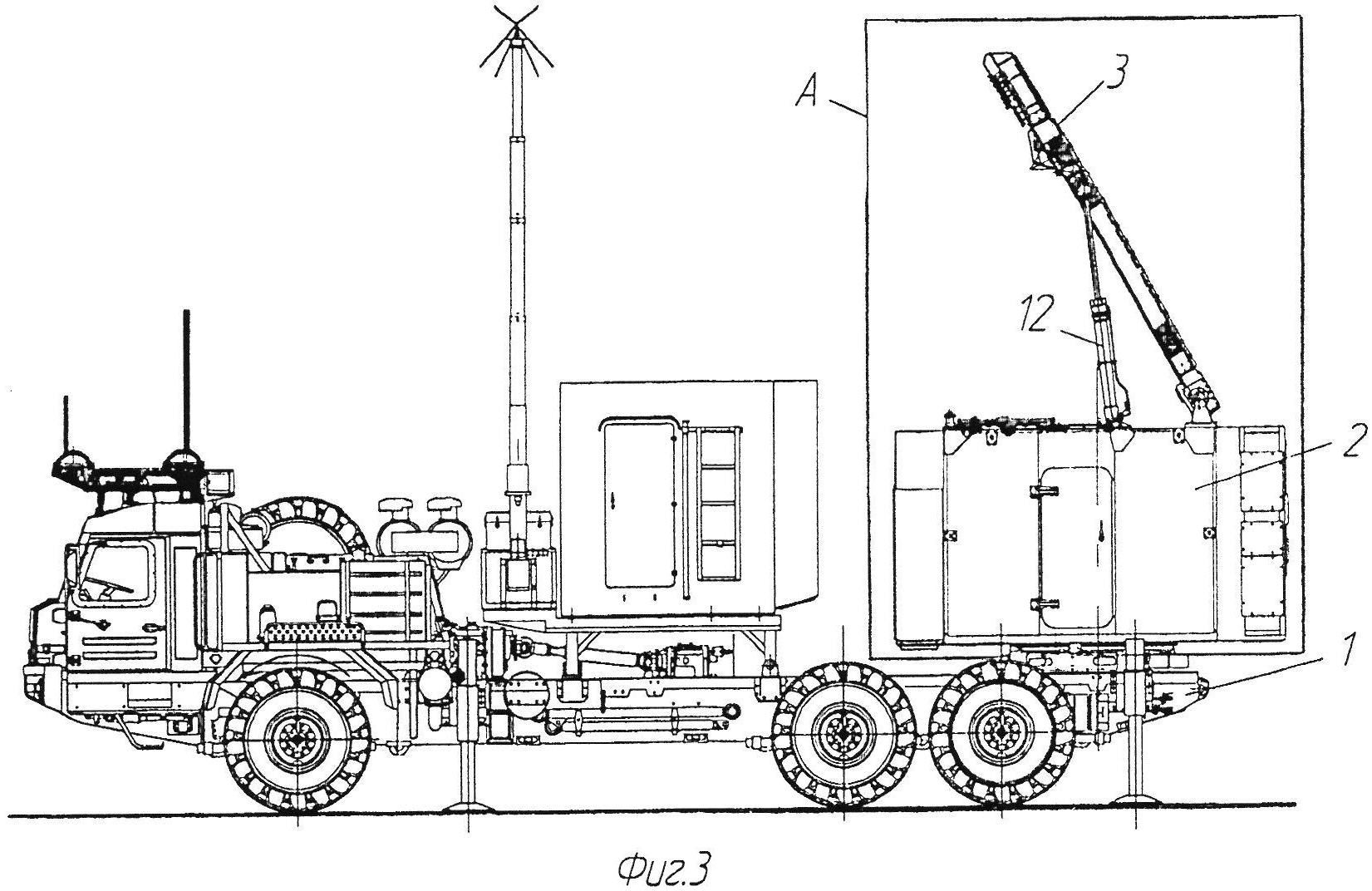 Изобретение относится к антенной технике, в частности к гидравлическим приводам мобильных антенных установок (АУ) с подъемным элементом. Известен гидравлический привод, используемый в мобильной антенной установке по патенту RU 2115977 C1 (H01Q 1/08, 1999). Известная мобильная АУ содержит контейнер с аппаратурой, конструктивно совмещенный с антенной системой, включающей снабженную гидроцилиндром поворота подъемную мачту с антенной, представляющей собой фазированную антенную решетку (ФАР). Подъемная мачта снабжена устройствами фиксации последней в развернутом (рабочем) и транспортировочном (походном) положениях. Контейнер снабжен выносными поворачивающимися опорами с гидродомкратами, устанавливаемыми с возможностью контактирования с грунтом и выполнен с возможностью размещения на автотранспортном средстве. При развертывании АУ контейнер (антенную систему) вывешивают и горизонтируют с помощью гидравлического привода, включающего упомянутые гидродомкраты. Однако известный гидравлический привод имеет ограниченные функциональные возможности. Известен гидравлический привод, преимущественно мобильной антенной установки с подъемной мачтой по патенту RU 2281244 C1 (B66F 11/04, H01Q 1/32, 2006). Известный гидравлический привод содержит систему управления, первый и второй трехпозиционные гидрораспределители с электромагнитным управлением, регулятор расхода, установленные на шасси транспортного средства насосный агрегат с баком. Насосный агрегат через первый трехпозиционный гидрораспределитель с электромагнитным управлением, напорные и сливные магистрали гидравлически связан со штоковой и поршневой полостями гидроцилиндра подъема подъемной мачты, включающей рычаги с взаимным шарнирным сочленением, образующие верхнюю и нижнюю секции подъемной мачты. На верхней секции подъемной мачты с возможностью поворота в вертикальной плоскости шарнирно закреплена опорная платформа. Гидроцилиндр подъема шарнирно соединен соответственно со смонтированным на транспортном средстве основанием и нижней секцией подъемной мачты, а между гидроцилиндром подъема и первым трехпозиционным гидрораспределителем подключен односторонний гидрозамок. Напорная магистраль, связывающая насосный агрегат с гидроцилиндром подъема, имеет возможность сообщения с поршневой полостью последнего через первый трехпозиционный гидрораспределитель с электромагнитным управлением в одной его позиции, и возможность сообщения со штоковой полостью гидроцилиндра подъема в другой позиции первого трехпозиционного гидрораспределителя. Гидравлический привод снабжен по меньшей мере одним гидроцилиндром поворота опорной платформы, который шарнирно соединен соответственно с опорной платформой и верхней секцией подъемной мачты. При этом гидроцилиндр поворота имеет гидрозамок и гидравлически связан с насосным агрегатом через второй трехпозиционный гидрораспределитель с электромагнитным управлением. Напорная магистраль, связывающая насосный агрегат с гидроцилиндром поворота, имеет возможность сообщения с поршневой полостью гидроцилиндра поворота через второй трехпозиционный гидрораспределитель с электромагнитным управлением в одной его позиции, гидрозамок, регулятор расхода и дроссель. Регулятор расхода установлен в соответствующей магистрали с помощью че
