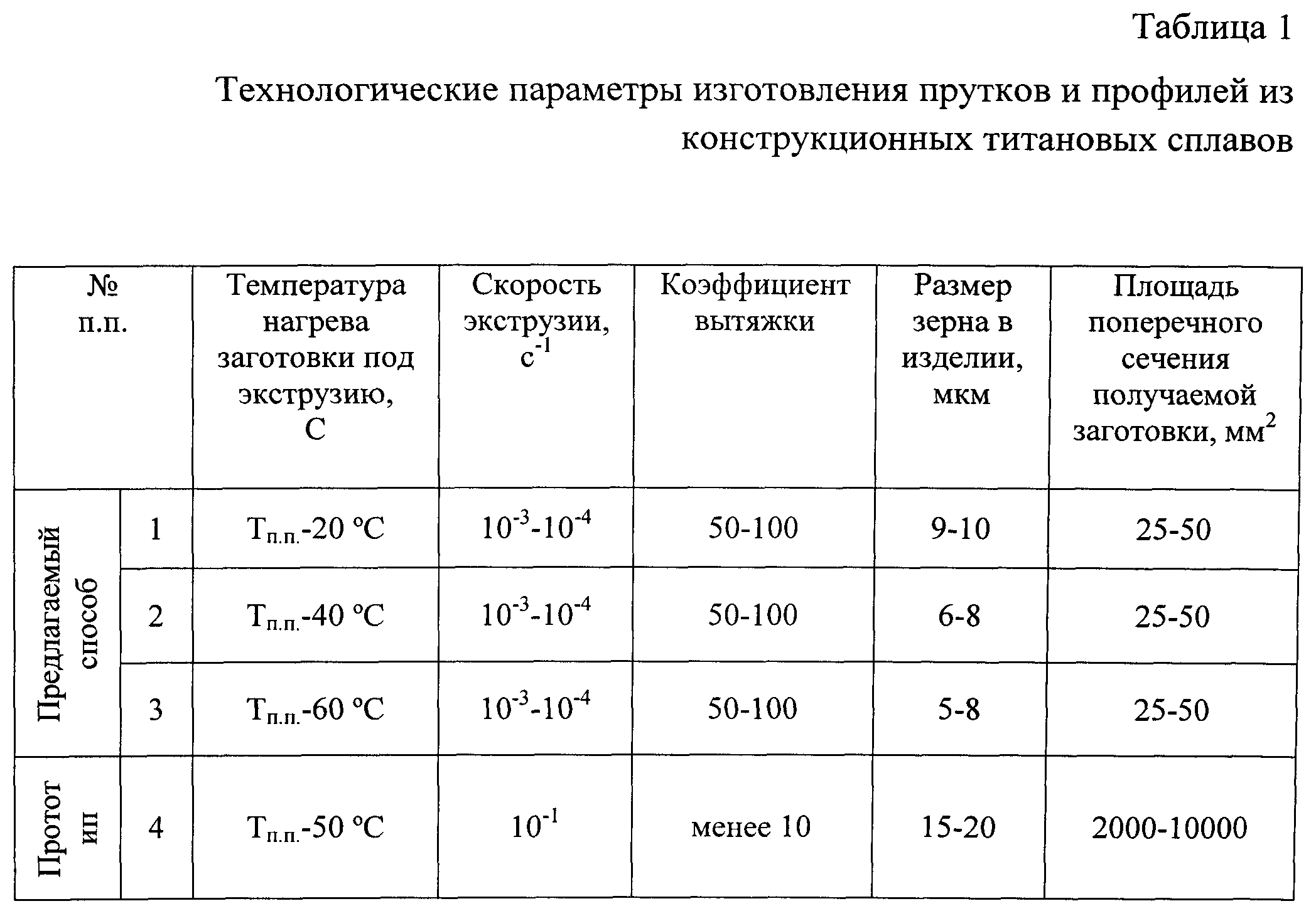 Изобретение относится к обработке металлов давлением и может быть использовано при производстве длинномерных заготовок типа прутков и профилей из конструкционных титановых сплавов методом изотермической экструзии. Производят ковку или прокатку слитка при температуре β-области с получением прутка. Пруток режут на заготовки, которые подвергают промежуточной ковке при температуре (α+β)-области, механически обрабатывают, нагревают до температуры (α+β)-области и деформируют. Деформирование осуществляют экструдированием в матрице из жаропрочного никелевого сплава на прессе с получением прутка или профиля. Механическую обработку производят путем обтачивания заготовок с нарезанием на боковой поверхности продольных канавок или резьбы для смазки. На поверхность механически обработанных заготовок наносят смазку и помещают их в матрицу из жаропрочного никелевого сплава. Заготовки нагревают вместе с матрицей. В результате обеспечивается получение длинномерных заготовок с равномерной регламентированной мелкозернистой структурой и снижение трудоемкости изготовления.5 з.п. ф-лы, 1 ил., 1 табл., 1 пр.