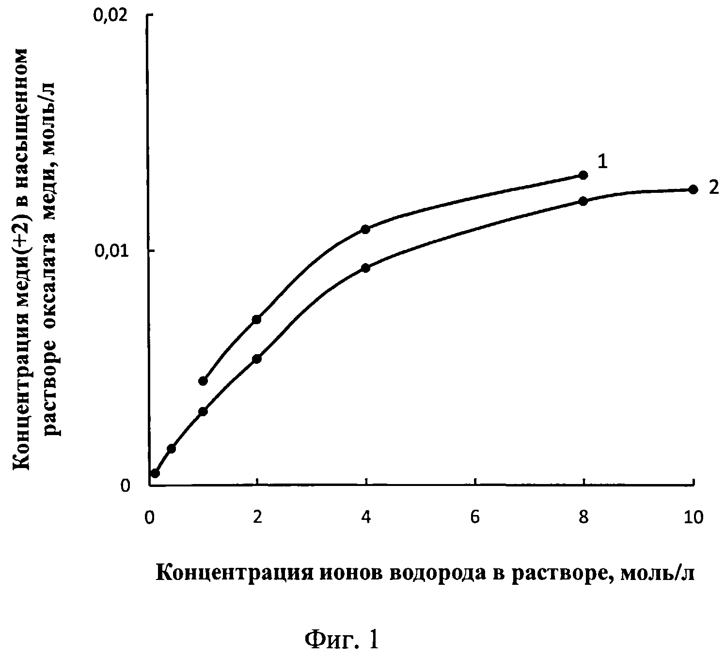 Изобретение относится к промышленной экологии и к химической технологии органических веществ, в частности к реагентным способам переработки жидких отходов радиоэлектронного и электрохимического производства, и может быть использовано для извлечения меди(+2) из отработанных растворов различного состава, для утилизации отработанных растворов анодного оксидирования алюминия и его сплавов, а также для получения химического продукта - оксалата меди. Из уровня техники известен ряд способов извлечения меди(+2) из отработанных растворов, основанных на обработке токсичного отхода производства, содержащего медь(+2), раствором реагента, осаждении меди(+2) в форме малорастворимого соединения, отделении осадка соединения меди(+2) от раствора. Известен способ извлечения меди(+2) из отработанных растворов, включающий прибавление раствора реагента к отработанному раствору, осаждение меди(+2) в форме малорастворимого соединения, отделение осадка соединения меди(+2) от раствора (Бушнева С.Ю., Кременева С.Г., Загорулько В.П., Севастьянова Л.Г., Рябуха Р.В., Скрыпник Г.Д., Абрамов Ю.А., Давлетов Т.В. SU 1495308 А1, опубл. 1989). В этом способе в качестве раствора реагента используют раствор щелочи и активированный уголь. Недостатком способа является необходимость затрат на реагент и на нагревание раствора. Известен способ извлечения меди(+2) из отработанных растворов, содержащих медь(+2) и аммиак, включающий прибавление раствора реагента к отработанному раствору, осаждение меди(+2) в форме малорастворимого соединения, отделение осадка соединения меди(+2) от раствора (Коваленко Ю.А., Отлетов В.В., Бондарцова Р.С. SU 1439088 А1, опубл. 1988). В этом способе в качестве раствора реагента используют раствор карбоната и фосфата натрия или отработанный раствор обезжиривания, а также фосфорную кислоту для корректирования значения рН. Состав малорастворимого соединения меди(+2) не установлен. Недостатком способа является необходимость затрат на реагент. Известен способ извлечения меди(+2) из отработанных растворов, содержащих медь(+2) и аммиак, включающий прибавление раствора реагента к отработанному раствору, осаждение меди(+2) в форме малорастворимого соединения, отделение осадка соединения меди(+2) от раствора (Рослякова Н.Г., Конорев Б.П., Росляков А.О., Росляков P.O. RU 2115619 С1, опубл. 1998). В этом способе в качестве раствора реагента используют отработанный раствор кислого травления меди. Малорастворимым соединением, по мнению авторов изобретения, является оксикарбонат меди. Известен способ извлечения меди(+2) из отработанных растворов, включающий прибавление раствора реагента к отработанному раствору, осаждение меди(+2) в форме малорастворимого соединения, отделение осадка соединения меди(+2) от раствора (Писарук В.И., Фалендыш Н.Ф., Демченко В.Я., Шульженко О.Ф., Пинчук В.П., Нога Б.В. RU 2016103 С1, опубл. 1994). В этом способе в качестве раствора реагента используют раствор щелочи. Малорастворимым соединением является оксид меди(+2). Недостатком способа является необходимость больших затрат на реагент и на нагревание раствора. Известен способ извлечения меди(+2) из отработанных аммиачных растворов травления печатных плат, включающий прибавление раствора реагента к отработанному раствору, осаждение меди(+2) в форме малорастворимого в воде гидроксида меди(+2), отделение осадка от раствора (Дудко 