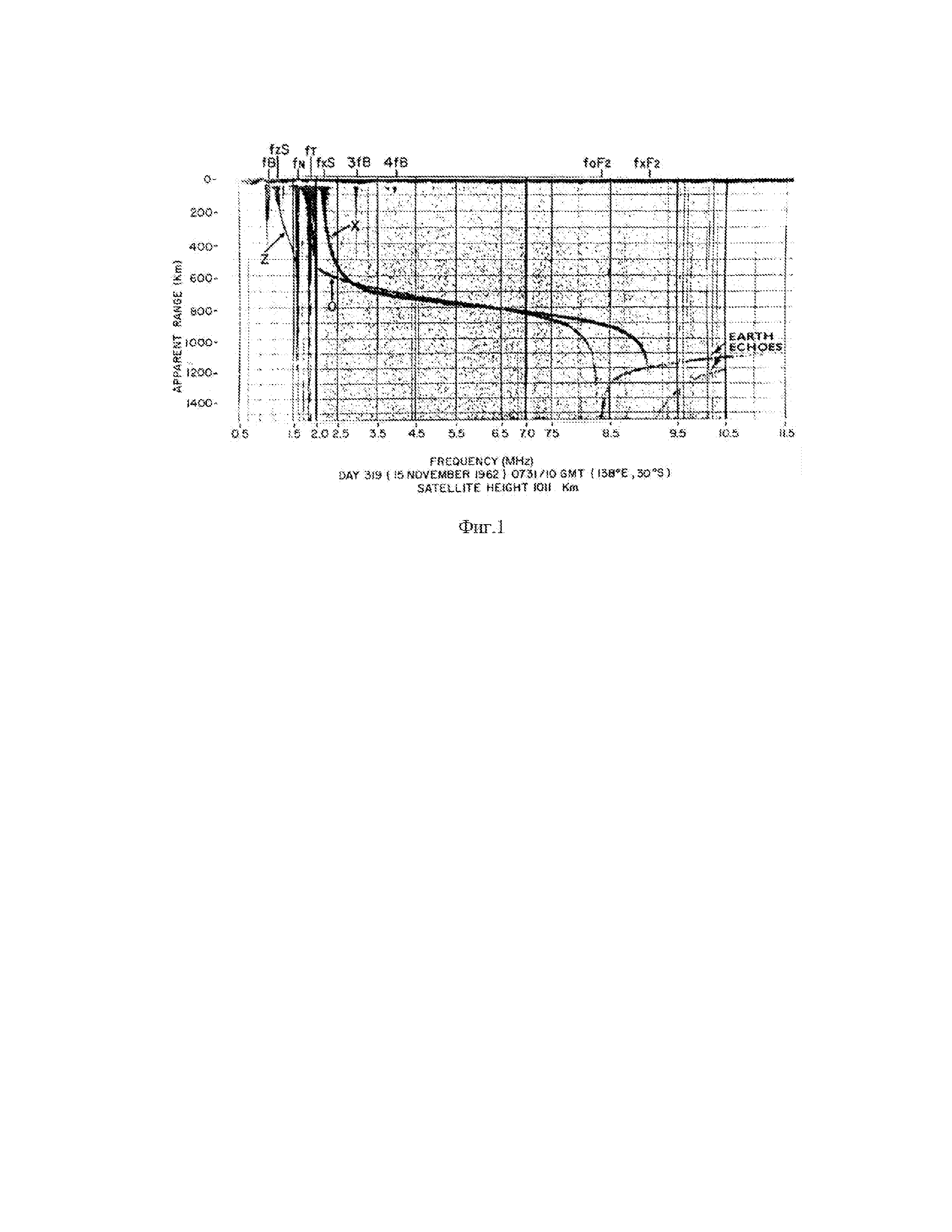 Изобретение относится к сейсмологии, а именно к краткосрочному прогнозу землетрясений по данным вертикального зондирования ионосферы с ионозонда. Из уровня техники известны способы краткосрочного прогноза землетрясений, например, способ зондирования ионосферы, тропосферы, геодвижений и комплекс для его реализации (см. RU2502080C2, 20.12.2013) (1), включающий определение параметров ионосферы и тропосферы по сигналам космических аппаратов. Для этого учитываются данные с ионозондов КА данные со станций наклонного зондирования ионосферы, моделей ионосферы и тропосферы, рассчитывают поля распределения интегральной концентрации заряженных частиц, профиля электронной концентрации в ионосфере над пунктом зондирования, вертикального профиля влажности и плотности воздуха в тропосфере над пунктом зондирования. Недостатком данного способа (1) является его недостаточная точность, обусловленная тем, что прогнозирование землетрясений осуществляется на основании небольшого количества анализируемых предвестников. Наиболее близким аналогом заявленного изобретения является способ определения скорости распространения и направления прихода ионосферного возмущения (см. RU2560094, 20.08.2015) (2), который заключается в применении решетки приемных станций спутниковых радионавигационных систем ГЛОНАСС/GPS путем восстановления пространственного распределения полного электронного содержания ионосферы по данным радиопросвечивания атмосферы сигналами ГЛОНАСС/GPS. Для этого способ реализуется спутниковыми радионавигационными системами ГЛОНАСС/GPS и протяженной решеткой двухчастотных приемников, обеспечивающих прием и обработку сигналов. Данный способ позволяет получить более точную информацию о возможном землетрясении, по сравнению с аналогом (1), однако посредством способа (2) также невозможно получить точную и полную информацию о возможном землетрясении. Техническим результатом заявленного изобретения является повышение точности краткосрочного прогноза землетрясений. Заявленный технический результат достигается за счет создания способа краткосрочного прогноза землетрясений по данным вертикального зондирования ионосферы с ионозонда, включающего непрерывный мониторинг критической частоты и вычисление разницы между средним распределением критической частоты за предыдущие 5 суток и текущим распределением отклонения критической частоты от невозмущенного значения за двое суток до землетрясения, при этом положение максимального отклонения критической частоты принимают за проекцию эпицентра землетрясения на ионосферу, положение эпицентра землетрясения на земной поверхности определяют путем проецирования вдоль геомагнитной силовой линии от центра аномалии в ионосфере, координаты точки на поверхности земли принимают за координаты прогнозируемого эпицентра, при получении нескольких распределений, берется среднее положение проекции эпицентра, в соответствии с определением размера зоны подготовки землетрясения, радиус которой равен: R = 100.43M (км), далее измеряют максимальный размер аномалии в ионосферы и производится оценка магнитуды ожидаемого землетрясения: M=lg(R)/0.43. Заявленный способ проиллюстрирован следующими фигурами: Фиг. 1 - высотно-частотная характеристика ионосферы, называемая ионограммой; Фиг. 2 - распределения откл
