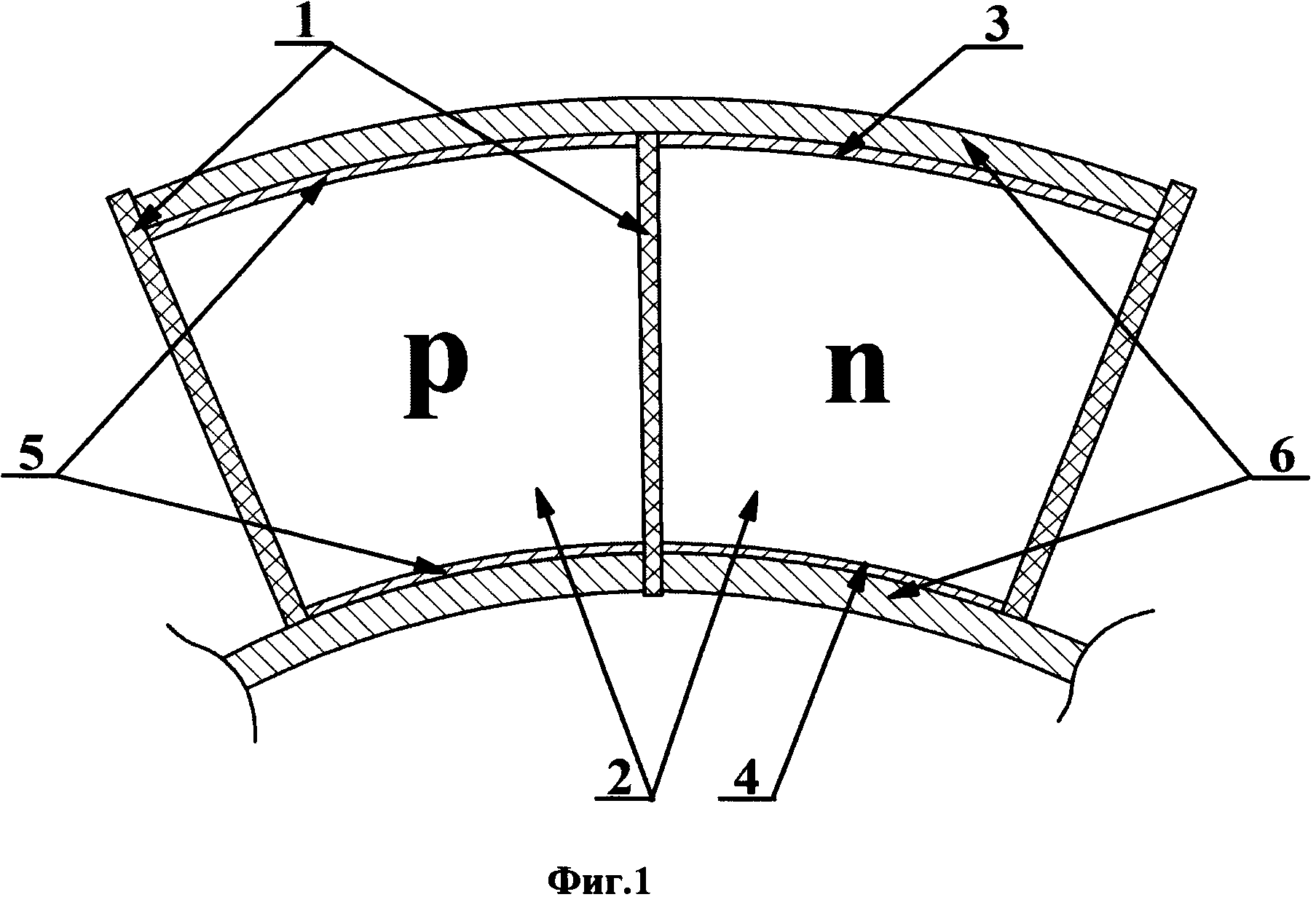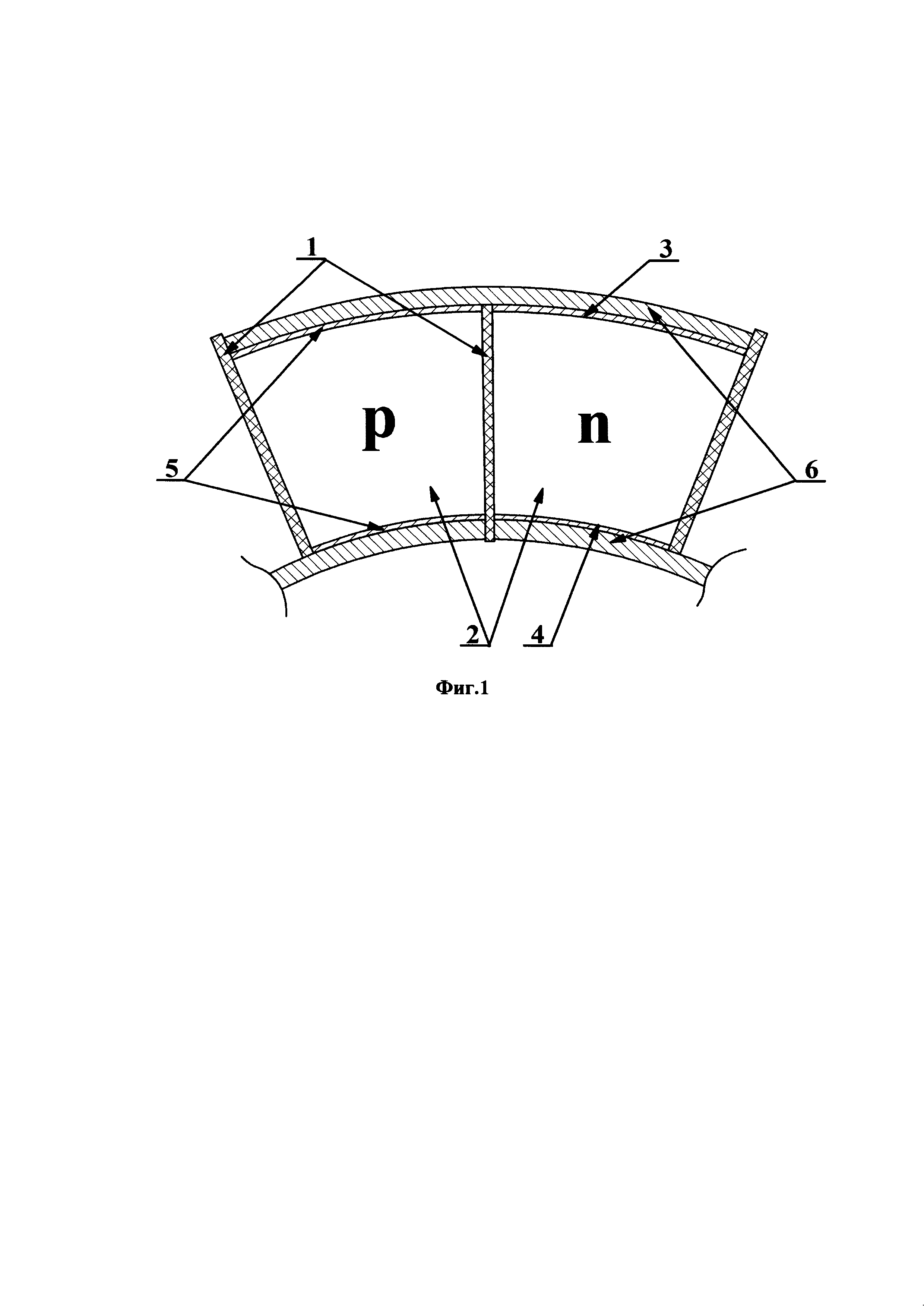 Область техники Изобретение относится к области термоэлектрического преобразования тепловой энергии в электрическую основанных на эффекте Зеебека и может быть применено для изготовления полупроводниковых термоэлементов и термоэлектрических батарей из них, используемых в конструкциях термоэлектрических генераторов. Уровень техники В настоящее время актуальной задачей энергетики является использование генерирующих установок: безопасных, не наносящих вред экологии, использующих альтернативные источники энергии. Термоэлектрические генераторные батареи представляют собой последовательно соединенные в электрическую цепь термоэлементы, каждый из которых состоит из двух ветвей термоэлектрического материала р- и n- типа проводимости. Термоэлементы являются основным элементом термоэлектрических генераторов (ТЭГ), обеспечивающих прямое преобразование тепловой энергии (промышленных тепловых отходов и бросового тепла от тепловых машин - двигателей внутреннего сгорания, газовых турбин и др.) в электрическую за счет эффекта Зеебека. ТЭГ являются дополнительным источником электрической энергии, которая может быть использована как для внутренних потребностей, так и для передачи ее во внешнюю электрическую цепь, в том числе для питания средств связи, аппаратуры автоматики и телемеханики, для катодной защиты от коррозии нефтегазовых трубопроводов в труднодоступных географических районах со сложными метеоусловиями. Одной из важнейших технологических операций при создании термобатареи, определяющей как вышеуказанные характеристики, так и энергетическую эффективность устройства, является коммутация ветвей термобатареи. Под энергетической эффективностью в данном контексте понимают эффективность, с которой термоэлектрическая батарея вырабатывает электроэнергию в рабочем интервале температур. Известны наиболее распространенные способы электрического соединения полупроводниковых ветвей электронной и дырочной проводимости в термоэлементы, а последних в термоэлектрические термобатареи: припрессовка, пайка или диффузионная приварка контактных пластин. Данные технологии широко используются в сборке термобатарей как плоской, так и радиально-кольцевой конструкции. Недостатком этих способов коммутации являются низкая производительность изготовления термоэлементов и теромобатарей из них, а порой и низкое качество электрического соединения, как, например, при припрессовке. В последнее время начинает получать распространение металлизация ветвей термоэлементов способами газопламенного, детонационного или плазменного напыления. Сущность этого подхода заключается в возможности послойного нанесения электропроводящих слоев различного функционала непосредственно на поверхность ветвей. Таким образом, возможно наносить антидиффузионные барьерные слои, препятствующие деградации термоэлементов в процессе эксплуатации, а также, используя кассетные матрицы необходимой конфигурации, формировать контактные пластины. Последние формируются в процессе механической обработки нанесенного контактного слоя, с целью получения топологии электрического соединения ветвей требуемой конфигурации по теплопоглощающим (холодный) и тепловыделяющим (горячий) спаям. Так, в соответствии с патентом на изобретение РФ 