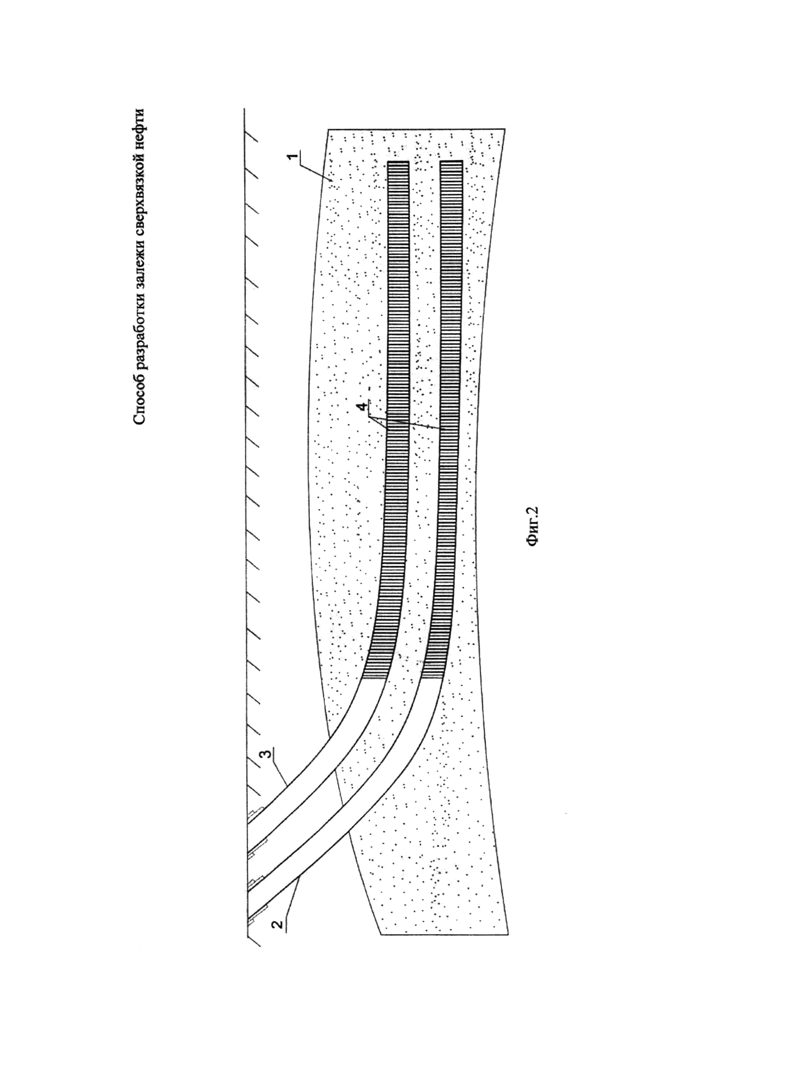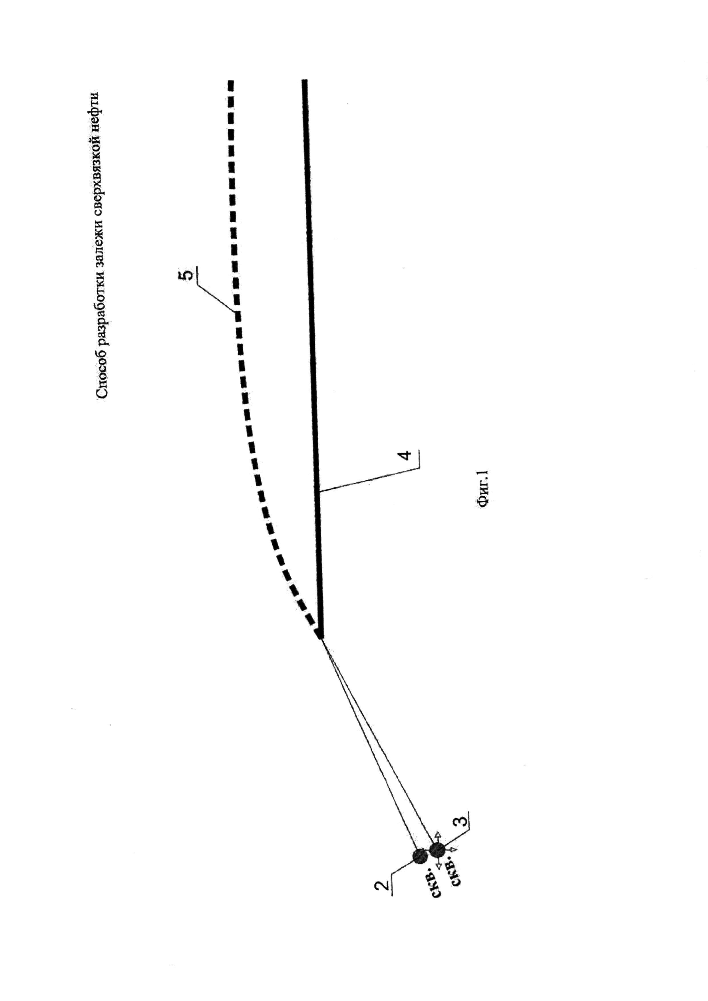 Изобретение относится к нефтедобывающей промышленности, в частности к способам увеличение добычи высоковязких нефтей или битумов на месторождении за счет расширения областей прогреваемых паром, для добычи из нее продукции. Известен «Способ увеличения добычи высоковязкой нефти или битума» (патент RU №2477785, МПК Е21В 43/24, Е21В 33/138, опубл. Бюл. №8 от 20.03.2013), включающий бурение и подготовку залежи к эксплуатации по меньшей мере двумя смежными парами горизонтальных параллельных скважин, включающими нагнетательную скважину и расположенную в залежи ниже добывающую скважину, создание проницаемой зоны между нагнетательной скважиной и добывающей скважиной каждой пары скважин, нагнетание водяного пара по нагнетательным скважинам и одновременное извлечение углеводородов по добывающим скважинам, давление нагнетания водяного пара в нагнетательной скважине первой пары скважин превышает давление нагнетания в нагнетательной скважине второй смежной пары скважин, при этом при критических снижениях дебита высоковязкой нефти и обводнении продукции добывающих скважин в нагнетательную скважину первой пары скважин закачивают изолирующий состав и снижают давление нагнетания водяного пара, а в нагнетательной скважине второй пары скважин давление нагнетания водяного пара поднимают, при повторных критических снижениях дебита высоковязкой нефти и обводнении продукции добывающих скважин в нагнетательную скважину второй пары скважин закачивают изолирующий состав и снижают давление нагнетания водяного пара, а в нагнетательной скважине первой пары давление нагнетания водяного пара поднимают, при этом чередующиеся циклы снижения и подъема давления нагнетания водяного пара в нагнетательные скважины смежных пар скважин с предварительной закачкой изолирующего состава в нагнетательную скважину каждой пары скважин, в которой запланировано снижение давления закачиваемого водяного пара, повторяют не менее одного раза. Недостатками данного способа являются необходимость постоянного контроля за обводненностью продукции, требующего привлечения высококвалифицированных специалистов, а также высокие требования к качеству и рецептуре изолирующих составов, так как несвоевременная обработка или обработка изолирующим составом не в нужной пропорции может привести к кольматации и продуктивных участков залежи, что приведет к значительному снижению коэффициента извлечения нефти (КИН) из залежи или к высоким затратам введения в эксплуатацию закольматированных продуктивных участков залежи. Известен «Способ разработки залежи высоковязких нефтей и битумов» (патент RU №2439305, МПК Е21В 43/24, опубл. Бюл. №1 от 10.01.2012), включающий строительство добывающей скважины с вскрытым горизонтальным участком в продуктивном пласте и нагнетательной скважины с профилем, параллельным и аналогичным профилю добывающей скважины, но расположенным над ней в том же продуктивном пласте, закачку теплоносителя в нагнетательную скважину и отбор продукции пласта из добывающей скважины, при этом на расстоянии 180-200 м в продуктивном пласте бурят аналогичную и параллельную пару горизонтальных скважин, причем между добывающими горизонтальными скважинами равномерно располагают две нижние добывающие скважины с горизонтальными участками, параллельными горизонтальным 