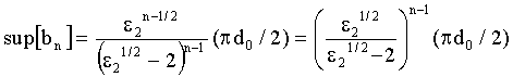 , где n=2, 3 …, ε2>4. Очевидно, что ширина кольцевых элементов при 0<(ε21/2-2)<1 (например, для ε=5) растет очень быстро и, если нет других соображений, вибратор 2 и, соответственно, СШП-преобразователь 1 практически завершают свое геометрическое формирование на третьем кольцевом элементе. Сформированный таким образом вибратор 2 будет выглядеть как последовательность трех кольцевых элементов 5, сходящихся к центральному дисковому элементу 6