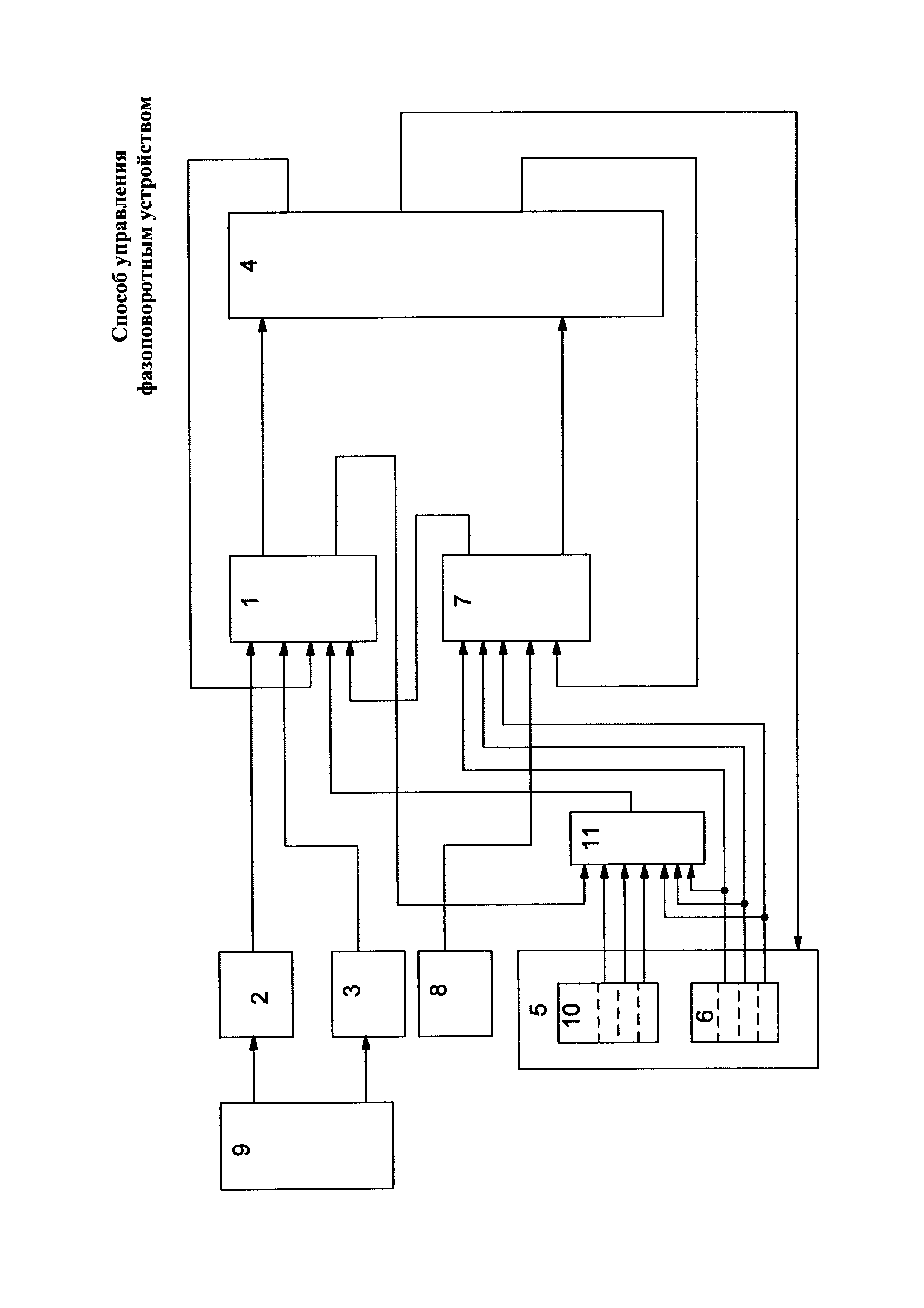 Изобретение относится к области электротехники и электроэнергетики, и в частности к управлению фазоповоротными устройствами (ФПУ). Техническим результатом, на получение которого направлено предлагаемое техническое решение, является повышение быстродействия, точности управления ФПУ и надежности работы энергосистемы за счет коррекции маршрутов переключения на основе актуальной информации о параметрах режима энергосистемы при управлении ФПУ. Технический результат достигается тем, что в способе управления фазоповоротным устройством путем поэтапного изменения его состояния, использующем задание его конечного состояния, выбор допустимой последовательности поэтапного переключения, удовлетворяющей заданным ограничениям на величину выходного напряжения, измерение токов фазоповоротного устройства, реализацию заданной последовательности управления тиристорным коммутатором фазоповоротного устройства, измеряют напряжения на фазоповоротном устройстве и по измеренным токам и напряжениям фазоповоротного устройства вычисляют эквивалентные параметры линии электропередачи относительно узлов, к которым подключено фазоповоротное устройство, для дополнительной адаптации в реальном времени маршрутов переключения и управления последовательностью переключения фазоповоротного устройства. 1 ил.