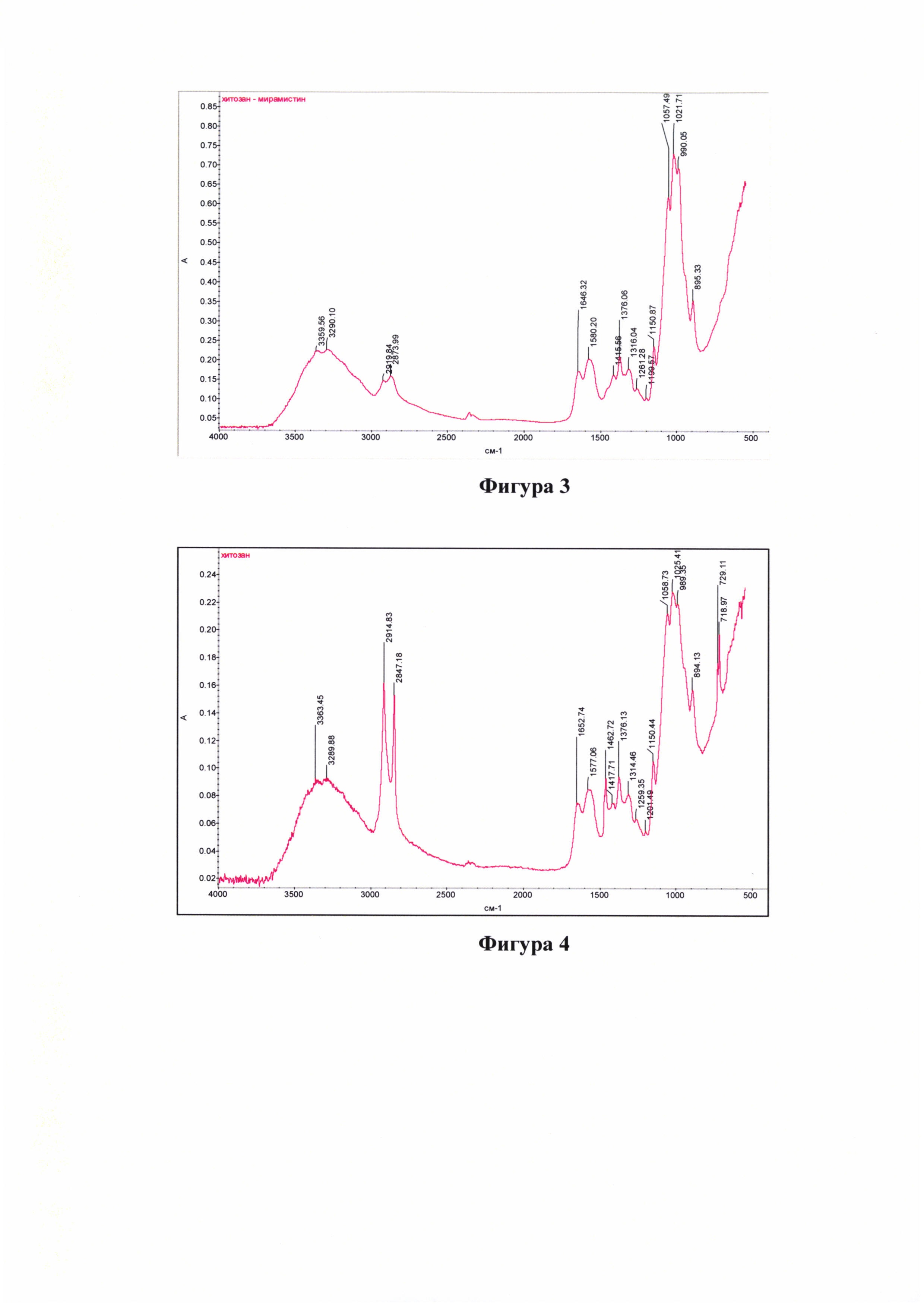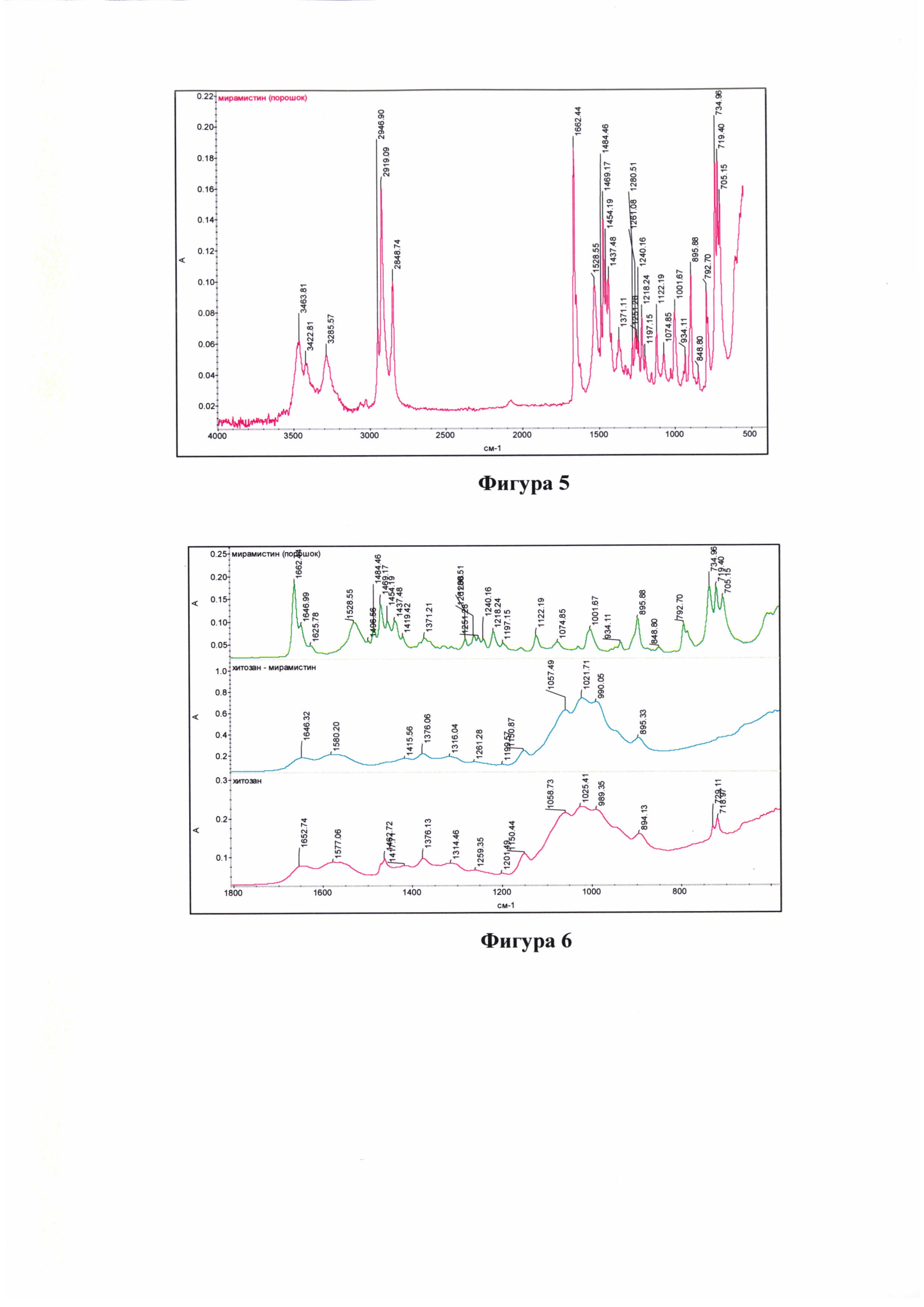 Изобретение относится к фармацевтике, а именно к фармацевтической субстанции для получения лекарственного средства для лечения инфицированных ран. При этом субстанция характеризуется включением эффективного количества активных компонентов мирамистина и хитозана, а также уксусной кислоты в качестве вспомогательного вещества и воды при следующем содержании ингредиентов, в % (масс.): Мирамистин - 0,05, Хитозан - 1,0, Уксусная кислота - 0,6, Вода очищенная - до 100,0. Способ получения фармацевтической субстанции характеризуется тем, что хитозан смешивают с 0,5%-ным раствором уксусной кислоты, постоянно перемешивают и приливают воду до получения суспензии, перемешивают до полного растворения хитозана и оставляют стоять до получения гелеобразного раствора, затем иммобилизуют антимикробный препарат мирамистин на хитозан при комнатной температуре при массовом соотношении хитозан и мирамистин 20:1 и получают путем лиофилизации при температуре -40°С субстанцию хитозан-мирамистин в форме рыхлой губчатой массы, причем вода удаляется из замороженной субстанции путем сублимации льда. Изобретение обеспечивает получение биологически активного соединения: комплекса хитозана с антимикробным препаратом мирамистином (КХМ), а также расширение арсенала ранозаживляющих и антимикробных средств. 1 з.п. ф-лы, 7 ил., 3 пр.