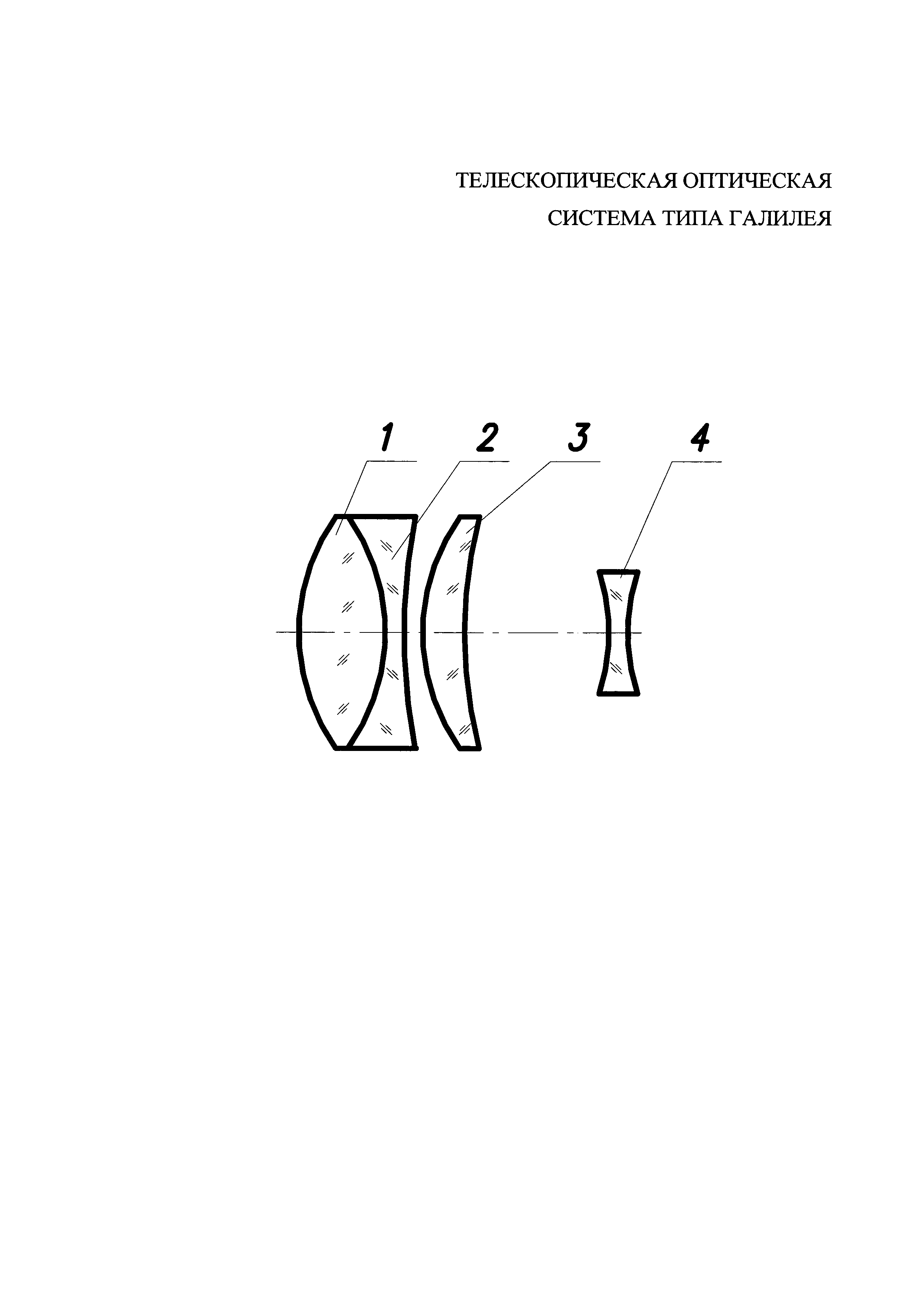 1. Телескопическая оптическая система типа Галилея, состоящая из объектива и окуляра, объектив выполнен в виде двух положительных компонентов, первый из которых по ходу лучей - склеенный из двояковыпуклой и двояковогнутой линз, второй - одиночная линза, а окуляр - одиночная двояковогнутая линза с равными по модулю радиусами оптических поверхностей, показатель преломления материала окуляра для линии е более 1,74 и менее 2,3, коэффициент дисперсии материала окуляра для линии е более 14 и менее 29,5, а коэффициент дисперсии материала второго компонента объектива для линии е более 47 и менее 64, отличающаяся тем, что второй компонент объектива выполнен в виде мениска, обращенного вогнутостью к изображению. 2. Телескопическая оптическая система типа Галилея по п. 1, отличающаяся тем, что показатель преломления материала второго компонента объектива для линии е более 1,6 и менее 1,7. 3. Телескопическая оптическая система типа Галилея по п. 1, отличающаяся тем, что отношение радиуса первой оптической поверхности по ходу лучей второго компонента объектива к радиусу второй оптической поверхности этого компонента по модулю более 0,04 и менее 0,1.