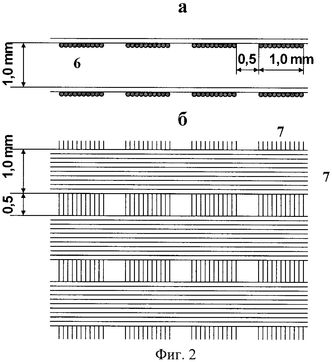 Изобретение относится к технике регистрации ядерного излучения, а именно к регистрации с использованием газовых координатно-чувствительных детекторов, работающих в лавинном режиме, и может быть использовано в ядерной физике, экспериментальной физике элементарных частиц, в промышленности при дефектоскопии изделий, в медицине: в рентгеноскопии, в позитронной томографии и исследованиях с мечеными атомами. Известен газовый микроколодезный электронный умножитель [Лелюхин А.С. и др. Газовый микроколодезный электронный умножитель. Патент РФ №2246739 (16.06.2003), G01T 1/28], содержащий размещенные в газовой среде одинаковые металлические тонкие плоские параллельные электроды, выполненные с зазором между ними, заполненным диэлектриком, и с отверстиями в электродах и диэлектрике, расположенными по всей площади каждого электрода, причем каждое отверстие одного электрода размещено напротив соответствующего отверстия другого электрода. Недостатком такого электронного умножителя является его ненадежность в эксплуатации из-за случайных пробоев по поверхности диэлектрика в отверстиях, приводящих к выходу умножителя из строя. Наиболее близким техническим решением является многоканальный газовый электронный умножитель [А.Ф.Бузулуцков. Физические основы работы каскадных газовых электронных умножителей (обзор). Вестник НГУ. Серия: Физика. 2008. Том 3, вып.3, с.60], содержащий, по крайней мере, два одинаковых металлических тонких плоских параллельных электрода, выполненных с зазором между ними и с отверстиями, расположенными равномерно по всей площади каждого электрода и имеющими размеры и шаг между ними, близкие к величине зазора между электродами, причем каждое отверстие одного электрода размещено напротив соответствующего отверстия другого электрода. Зазор между электродами заполнен диэлектриком с отверстиями, совпадающими с отверстиями в электродах. Недостатками такого электронного умножителя являются ненадежность умножителя в эксплуатации из-за случайных пробоев по поверхности диэлектрика в отверстиях, приводящих к выходу умножителя из строя, а также натекание электрических зарядов на стенки отверстий, приводящих к выходу умножителя из строя, а также натекание электрических зарядов на стенки отверстий умножителя, что приводит к его нестабильной работе вследствие изменения величины напряженности электрического поля в отверстиях. Технический результат предлагаемого изобретения заключается в упрощении изготовления электродов умножителя и повышении надежности и стабильности в работе умножителя путем использования проволочных электродов и заполнения промежутка между электродами газом. Технический результат достигается тем, что в многоканальном газовом электронном умножителе, содержащем два одинаковых металлических тонких плоских параллельных электрода, выполненных с зазором между ними и с отверстиями, расположенными равномерно по всей площади каждого электрода и имеющими размеры и шаг между ними, близкие к величине зазора между электродами, причем каждое отверстие одного электрода размещено напротив соответствующего отверстия другого электрода, в отличие от прототипа зазор между электродами заполнен газом, а электроды выполнены из тонких металлических нитей в виде двух слоев полос, с шириной и расстоянием ме