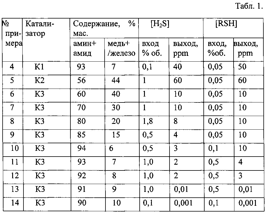 Изобретение относится к установке, способу и катализатору для очистки газообразного углеводородного сырья от сероводорода и меркаптанов. Установка содержит каталитический реактор, заполненный раствором катализатора окисления сероводорода и меркаптанов в органическом растворителе, обеспечивающий конверсию, по меньшей мере, 99,99% сероводорода и меркаптанов в серу и дисульфиды, средства подачи в реактор очищаемого газообразного углеводородного сырья и кислородсодержащего газа, средство вывода из реактора очищенного газа, устройство вывода раствора серы из реактора и блок сепарации серы. Катализатор представляет собой 0,0001-100% раствор смеси хлоридов железа и/или меди, амина и амида, взятых в соотношении 1:20-1:0,1, в спирте. Изобретение обеспечивает одностадийную очистку газообразных углеводородов одновременно от сероводорода и меркаптанов до остаточного содержания -SH вплоть до 0,001 ppm при отсутствии токсичных отходов. 3 н. и 13 з.п. ф-лы, 2 ил., 6 табл.