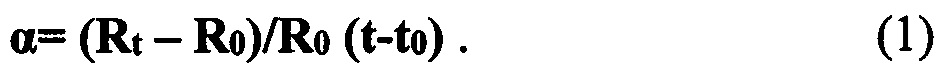 Изобретение относится к области радиоэлектроники и измерительной техники и может быть использовано при изготовлении тонкопленочных резисторов и для оперативного контроля температурного коэффициента сопротивления (ТКС) тонких проводящих пленок в процессе их изготовления. Известен способ определения ТКС тонких проводящих пленок алюминия [1], осуществляемый устройством, состоящим из 4-зондов, источника питания зондов и приборов регистрации сопротивления измеряемых образцов, камеры тепла с контролем температуры по термометру. Недостатком известного способа является длительный цикл проведения измерений и определения ТКС тонких пленок, связанный с необходимостью нагрева измеряемого образца в специальной камере (камере тепла), а также низкая точность измерения температуры образца (измеряется температура в камере, а не температура самой тонкой пленки). Наиболее близким по технической сущности к предполагаемому техническому решению является способ определения ТКС различных образцов в виде пластин на основе четырехзондового метода измерения поверхностного сопротивления [2]. Устройство для выполнения способа-прототипа состоит из компактного блока, четырехзондовой головки, подложкодержателя, нагревателя подложкодержателя и приборов регистрации температуры и поверхностного сопротивления. Устройство позволяет нагревать подложкодержатель в диапазоне от 20°C до 100°C с точностью 0.1°C. Недостатками способа-прототипа являются недостоверное измерение поверхностного сопротивления пластин и тонких проводящих пленок при повышенных температурах (например, свыше 100°C), особенно если измеряемая тонкая проводящая пленка нанесена на нетеплопроводную подложку. При этом температура пленки может существенно отличаться от температуры подложкодержателя. Для выравнивания температуры поверхности пленки с температурой подложкодержателя необходим длительный период времени, что является недостатком данного способа. Другим недостатком данного способа является низкий, (до 100°C), верхний предел устанавливаемой температуры. Задачей предлагаемого технического решения является увеличение точности измерения ТКС, снижение времени измерения ТКС и увеличение верхнего предела устанавливаемой температуры. Поставленная задача достигается тем, что в способе определения ТКС тонких проводящих пленок, включающем операции четырехзондового измерения поверхностного сопротивления с помощью четырехзондовой головки, подложкодержателя, нагревателя подложкодержателя и приборов регистрации температуры и поверхностного сопротивления, в которых измеряют температуру поверхности пленки, согласно изобретению температуру поверхности тонкой проводящей пленки определяют визуально по моменту плавления и затвердевания кусочков металла, находящихся в месте расположения зондов, при этом начальной температурой, от которой проводят измерения поверхностного сопротивления, выбирают комнатную температуру. При этой начальной температуре поверхность подложкодержателя и поверхность пленки имеют одну и ту же температуру. В качестве металла используют, например, индий, олово, свинец, низкотемпературные сплавы на основе свинца, олова, висмута, кобальта. Благодаря предложенному техническому решению по сравнению с прототипом получены следующие преи