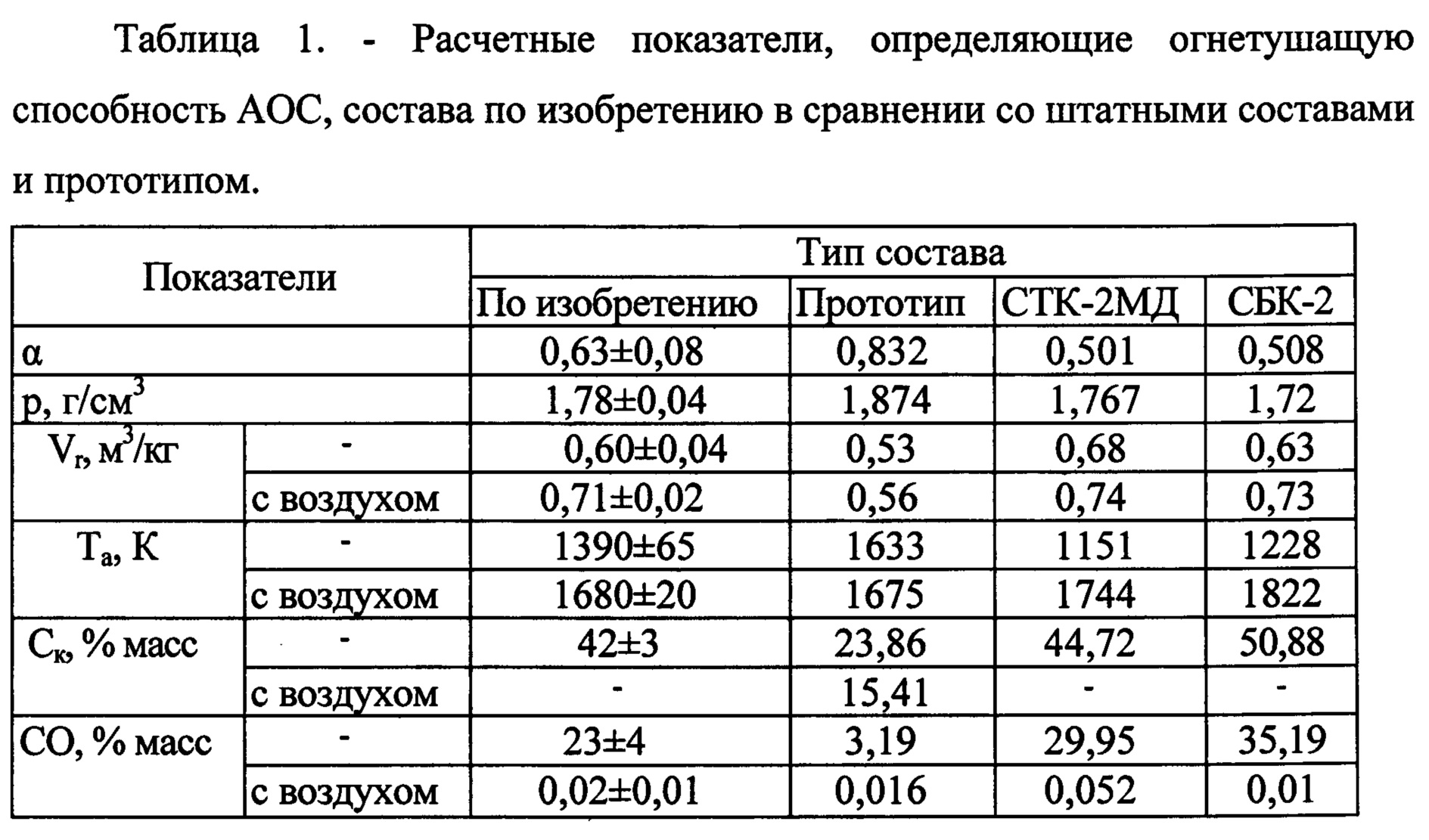 1. Аэрозолеобразующий огнетушащий состав с широким температурным диапазоном эксплуатации (-50°С÷+125°С), включающий нитрат калия, дициандиамид, технологические добавки и горючее-связующее, отличающийся тем, что горючее-связующее содержит наряду с идитолом, эпоксидной смолой и пластификатором типа дибутилфталата химически и термодинамически совместимый с ними высокомолекулярный полимер: бутадиен-нитрильный каучук с вязкостью по Муни 50-70 и содержанием нитрила акриловой кислоты 27-35% в смеси с фторопластом-4 при массовом процентном отношении каучук/фторопласт-4 от 60/40 до 80/20 при следующем соотношении компонентов, мас.%: 2. Состав по п. 1, отличающийся тем, что он содержит до 15% перхлората калия в счет нитрата калия. 3. Состав по п. 1, 2 отличающийся тем, что в качестве бутадиен-нитрильного каучука он содержит порошкообразный каучук марки ПБНК-33, ПБНК-28 (ТУ 38.30328-2008). 4. Состав по п. 1-3, отличающийся тем, что он содержит в качестве эпоксидной смолы жидкую эпоксидиановую смолу типа ЭД-20, а в качестве технологических добавок - анионоактивные ПАВ, выбранные из ряда солей карбоновых кислот типа стеарата цинка или их смесей с органическими фосфатами типа ДМП. 5. Состав по пп. 1-4, отличающийся тем, что он дополнительно содержит катализаторы типа Fe2O3 и модификаторы горения типа углерода, карбоната магния, оксамида в количестве до 5%.нитрат калия 70,0-78,0 идитол 4,0-12,0 эпоксидная смола 2,0-4,5 высокомолекулярный полимер 2,5-3,5 пластификатор 3,0-5,0 технологические добавки 0,5-1,5 дициандиамид остальное