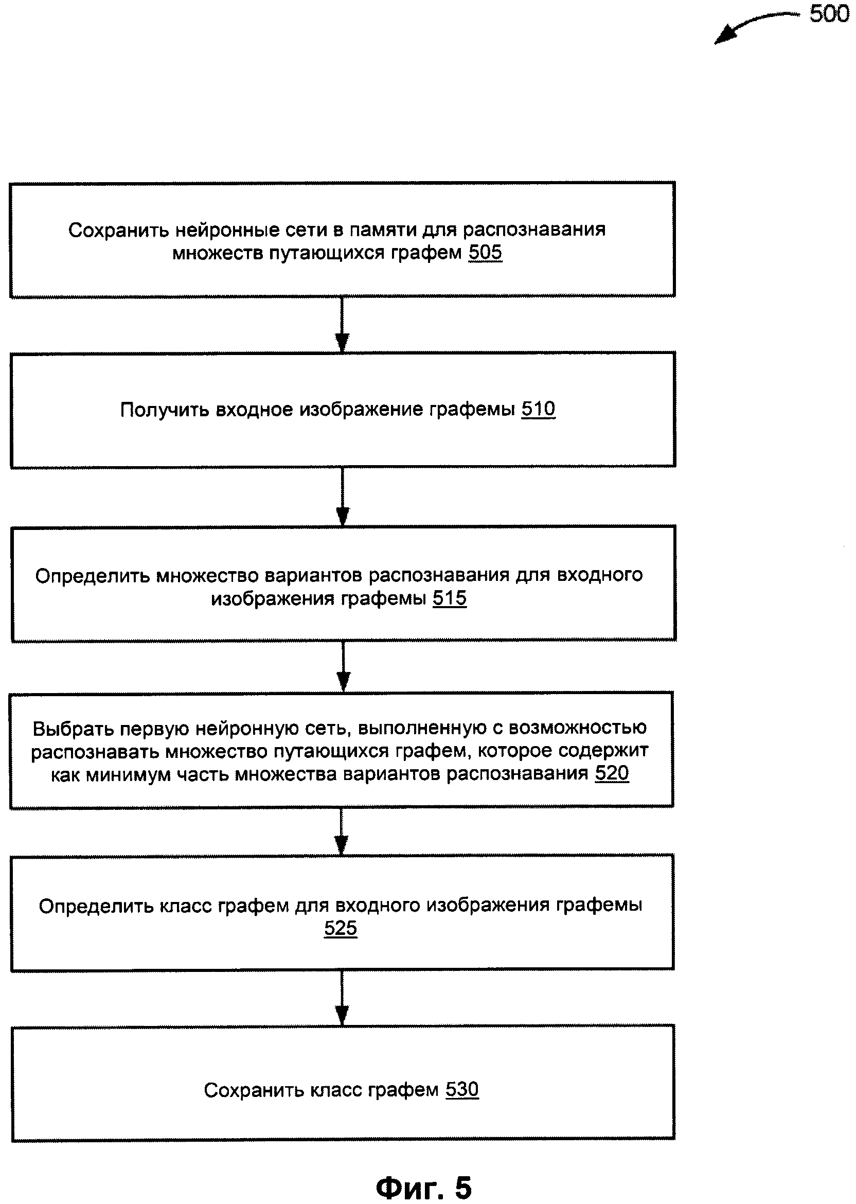 Изобретение относится к средствам анализа текста. Технический результат заключается в уменьшении количества вычислительных ресурсов при распознание текста. Ядро системы классификации хранит в памяти несколько нейронных сетей, каждая из которых обучена распознавать множество из одного или более множеств путающихся графем, определенных в данных распознавания множества изображений документов. Получают входное изображение графемы, связанное с изображением документа, содержащим множество графем. Определяют множество вариантов распознавания входного изображения графемы, где множество вариантов распознавания включает множество целевых символов, которые сходны с изображением входной графемы. Выбирают первую нейронную сеть из множества нейронных сетей, причем первая нейронная сеть обучена распознавать первое множество путающихся графем, и где первое множество графем содержит как минимум часть множества вариантов распознавания для входного изображения графемы. Определяют класс графемы для входного изображения графемы с помощью выбранной первой нейронной сети. 3 н. и 17 з.п. ф-лы, 8 ил.