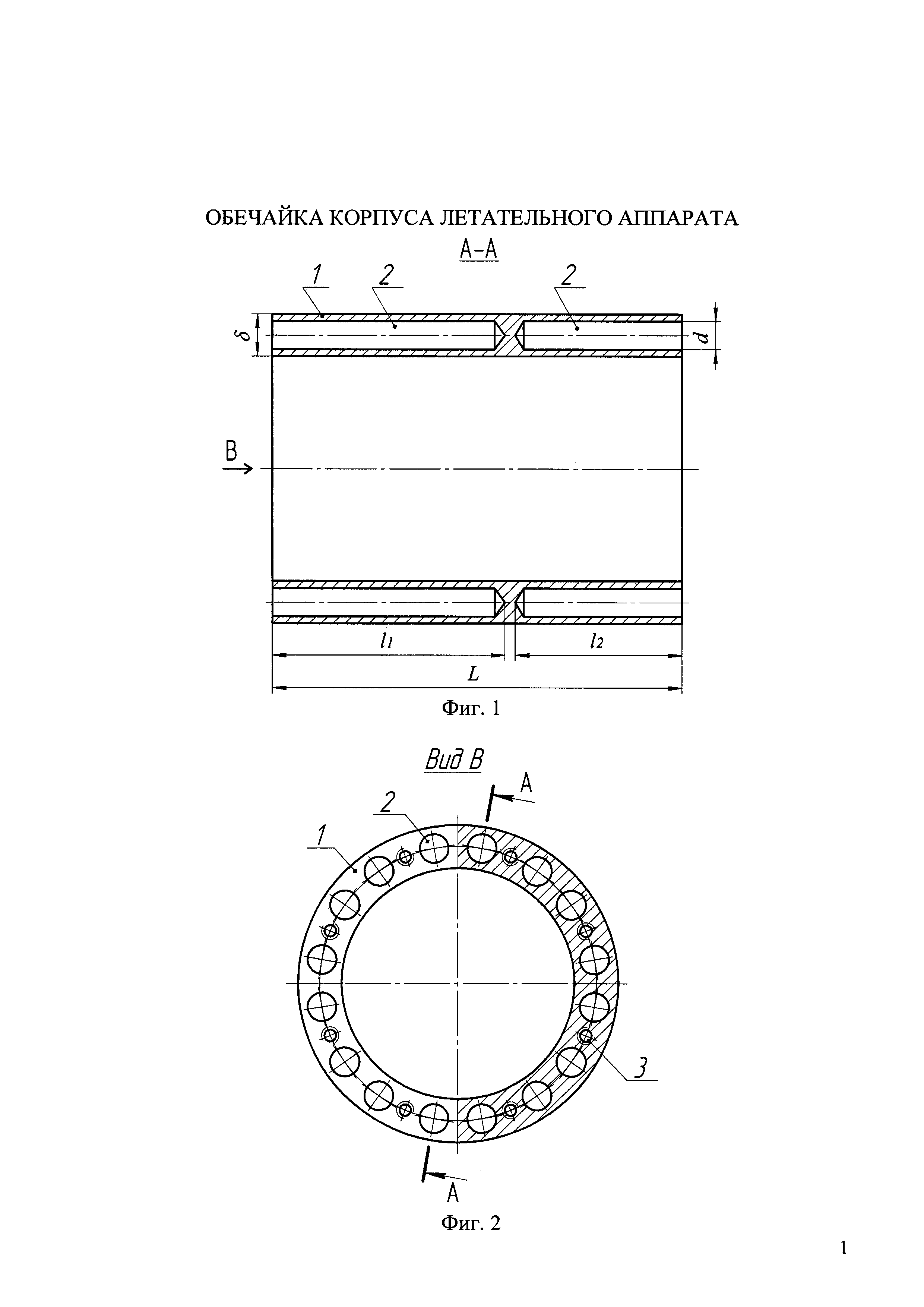 1. Обечайка корпуса летательного аппарата цилиндрической, конической или биконической формы, включающая гладкую несущую стенку с длиной образующей L и толщиной δ, отличающаяся тем, что в стенке обечайки с одного или двух торцов осесимметрично выполнены глухие отверстия диаметром d и длиной l1, l2 таким образом, чтобы δ=d+2(0,5-4,0) мм, L=(l1+l2)+(2-20) мм. 2. Обечайка по п. 1, отличающаяся тем, что в одну или более полость глухого отверстия установлена теплоаккумулирующая вставка или балансировочная масса. 3. Обечайка по п. 2, отличающаяся тем, что теплоаккумулирующая вставка выполнена из материала с фазовым переходом при температуре не ниже +70°C. 4. Обечайка по п. 2, отличающаяся тем, что в открытой части глухого отверстия выполнена канавка диаметром D и глубиной h таким образом, чтобы D=ƒ+(0,1-0,8) мм, h=S+(0,1-2,0) мм, где ƒ - диаметр закраины пробки теплоаккумулирующей вставки, S - толщина закраины пробки.
