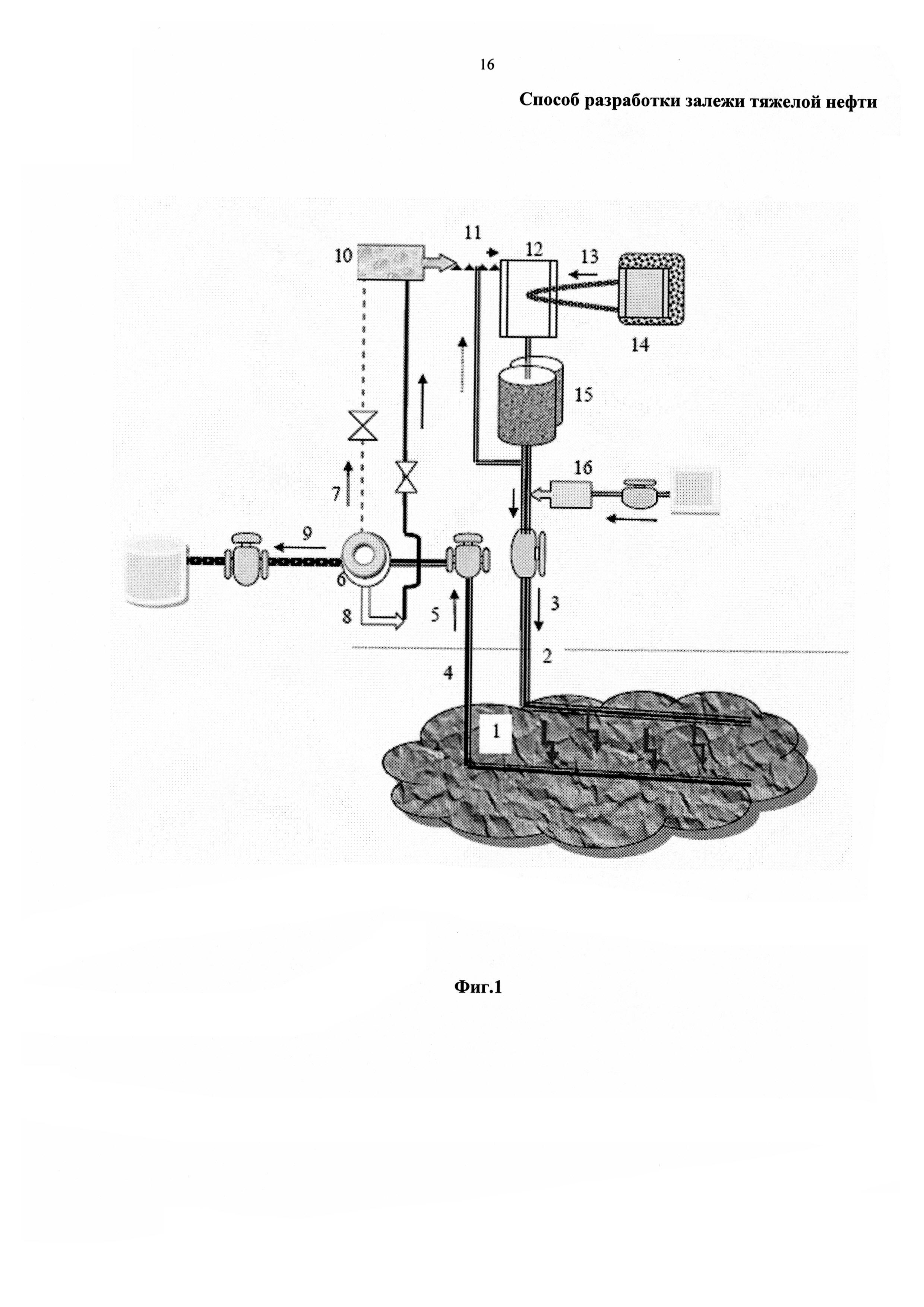 1. Способ разработки залежи тяжелой нефти, включающий бурение добывающих и нагнетательных скважин и закачку в пласт метансодержащего газа, в котором добываемый газ после сепарации обратно закачивают в пласт, отличающийся тем, что перед закачкой добываемого газа в пласт проводят его каталитическую конверсию с получением нагретого метансодержащего газа, содержащего водяной пар, диоксид углерода и водород. 2. Способ по п. 1, отличающийся тем, что каталитическую конверсию проводят при подводе нагретого водяного пара и тепловой энергии от стороннего энергоисточника, в котором сжигают ядерное и/или органическое топливо. 3. Способ по п. 1, отличающийся тем, что в качестве добываемого газа используют попутный нефтяной газ, добываемый из залежи тяжелой нефти. 4. Способ по п. 1, отличающийся тем, что питательную воду для получения водяного пара подают из резервуара, пополняемого конденсатом, выделяемым из добываемого газа. 5. Способ по п. 1, отличающийся тем, что температурный режим каталитической конверсии поддерживают изменением расхода и состава добываемого газа. 6. Способ по п. 1, отличающийся тем, что закачку метансодержащего газа сопровождают или чередуют с закачкой растворителей, в виде оторочек или путем обогащения метансодержащего газа растворителем. 7. Способ по п. 1, отличающийся тем, что закачку метансодержащего газа ведут периодически, подавая в промежутках в пласт воздух и/или жидкость гидроразрыва на основе воды, содержащей пластовую воду, добываемую из пласта.