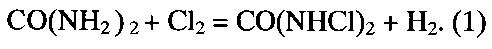 Изобретение относится к химической очистке отходящих газов от галогенов или соединений галогенов газожидкостным контактом, а именно к цветной металлургии, к способам очистки отходящих газов, содержащих хлор и хлорид водорода, образующихся при производстве титана и магния. Известен способ обезвреживания отходящих газов процесса хлорирования титансодержащего сырья и утилизации отходов обезвреживания отходящих газов (патент РФ №2441691, опубл. 10.02.2012, бюл. №4), включающий хлорирование сырья, двухступенчатую обработку газов водой в скруббере первой ступени в присутствии солей хлоридов двухвалентных металлов, сжигание отходящих газов в топке в токе водорода. После этого газы подают в скруббер второй ступени, где их обрабатывают щелочным реагентом, например гидроксидом натрия. Раствор гидроксида натрия используют с концентрацией 20-40 мас.% и при температуре 60-90°C. Это позволяет значительно снизить выбросы вредных веществ с отходящими газами в атмосферу и повысить срок службы оборудования. Образующийся в процессе обработки газов хлорид натрия с концентрацией 200-300 г/л направляют на процесс мембранного электролиза на получение гидроксида натрия, хлора и водорода. Недостатком данного способа является то, что щелочной реагент - гидроксид натрия используют высокой концентрации при подогреве его до температуры 60-90°C. Это приводит к высоким затратам на приобретение реагента и значительному расходу электроэнергии. Кроме того, в процессе очистки отходящих газов щелочным реагентом - гидроксидом натрия (без добавки карбамида) образуется большое количество гипохлорита натрия, присутствие которого в кислотной канализации нежелательно, так как приводит к выделению хлора в результате взаимодействия гипохлорита натрия с кислотой и к загрязнению окружающей среды. Поэтому гипохлоритные пульпы, прежде чем их сливать в промышленную канализацию, необходимо обеззараживать восстановителем, например гидросульфидом или сульфидом натрия, гидроксиламином, тиосульфатом натрия и другими реагентами. Для этого требуются большие энерго- и материальные затраты. Известен способ очистки отходящих газов магниевого производства (патент РФ №2209258, опубл. 27.07.2003, бюл. №21), включающий очистку газов, содержащих хлор и хлорид водорода, щелочным реагентом в присутствии карбамида. В качестве щелочного реагента используют оксидные соединения магния - магнезит и/или брусит. Расход карбамида составляет 10-80 кг/м3 на 1 м3 щелочного реагента при температуре 30-100°C. В результате обработки отходящих газов щелочным реагентом в присутствии карбамида получают водные хлормагниевые растворы, которые затем обрабатывают хлоридом водорода или соляной кислотой при pH 1,0-5,5 и направляют на получение безводного хлорида магния. Предложенная технология позволяет утилизировать хлор и хлорид водорода в форме твердых хлоридов. Недостатком данного способа является то, что применение в качестве щелочного реагента оксидных соединений магния для обезвреживания отходящих газов приводит к быстрому выходу из строя газоочистного оборудования (скрубберов, форсунок, насосов, трубопроводов) за счет абразивного износа, так как брусит и магнезит являются природным сырьем, содержащим значительное количество плохо растворимых примесей - оксидов кремния, силикатов и карбонатов магния и 