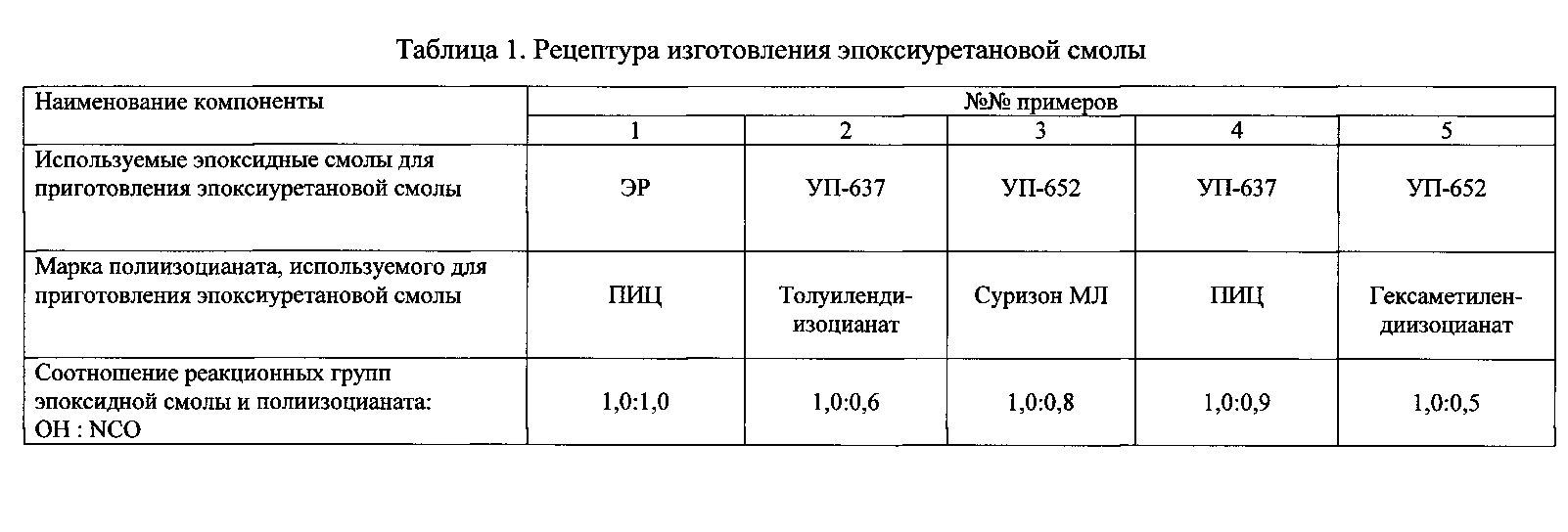 причем мольное соотношение реакционных групп эпоксиуретановой смолы OH:NCO составляет от 1,0:0,5 до 1,0:1,0.