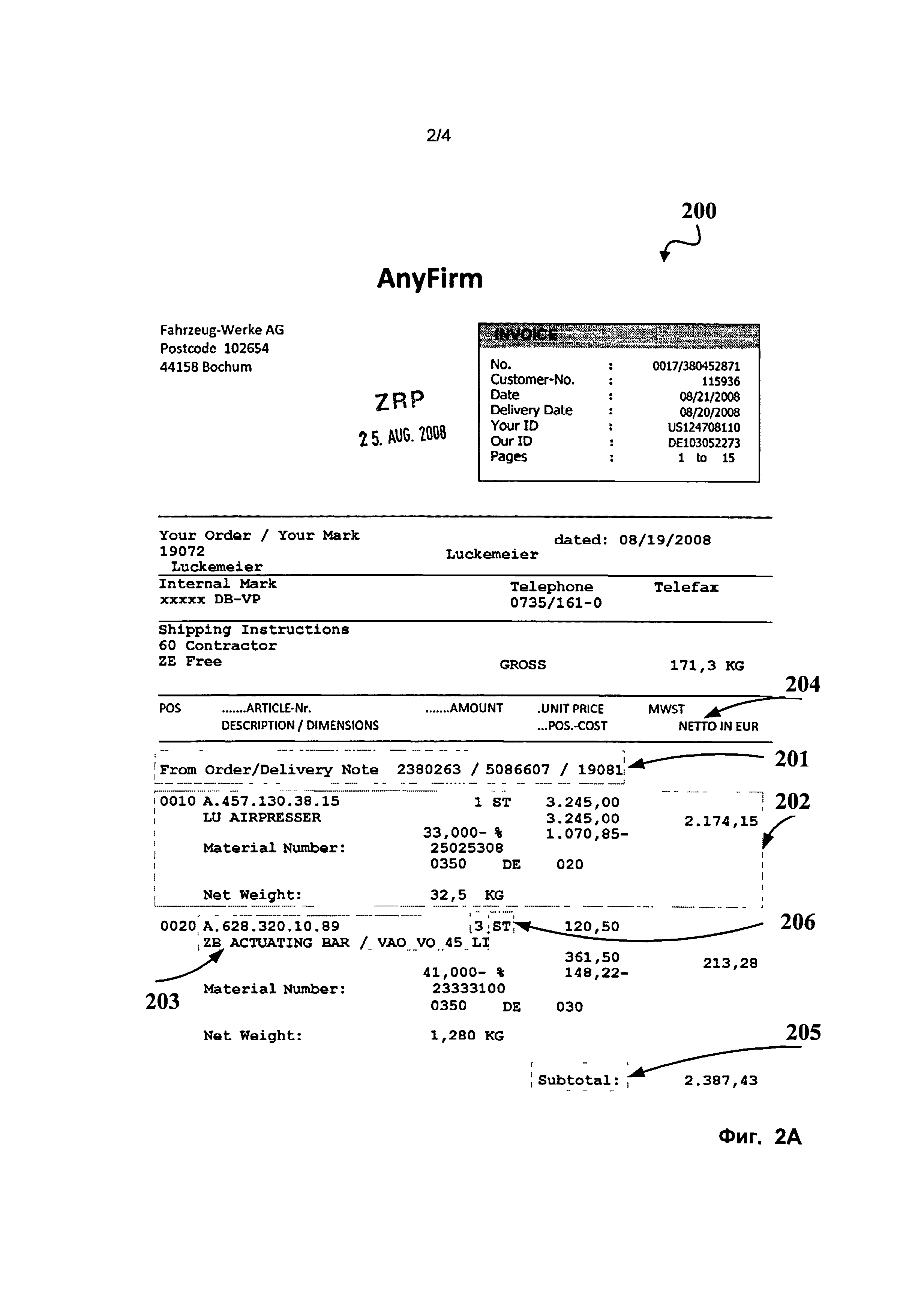 создание, используя процессор, гибкого структурного описания для документа определенного типа, включающего набор элементов поиска для каждого из полей данных на изображении документа, а также элементов заголовка;
