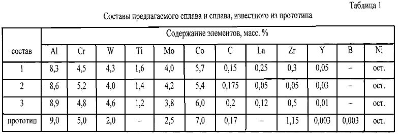 1. Сплав на основе интерметаллида Ni3Al, содержащий алюминий, хром, вольфрам, молибден, кобальт, цирконий, углерод, иттрий и никель, отличающийся тем, что он дополнительно содержит титан и лантан при следующем соотношении компонентов, мас.%: 2. Изделие из сплава на основе интерметаллида Ni3Al, отличающееся тем, что оно выполнено из сплава по п. 1.Al 8,3-8,9 Cr 4,5-5,2 W 4,0-4,6 Mo 3,8-4,2 Ti 1,2-1,6 Co 5,4-6,0 Zr 0,05-0,50 C 0,15-0,20 La 0,05-0,25 Y 0,01-0,05 Ni остальное