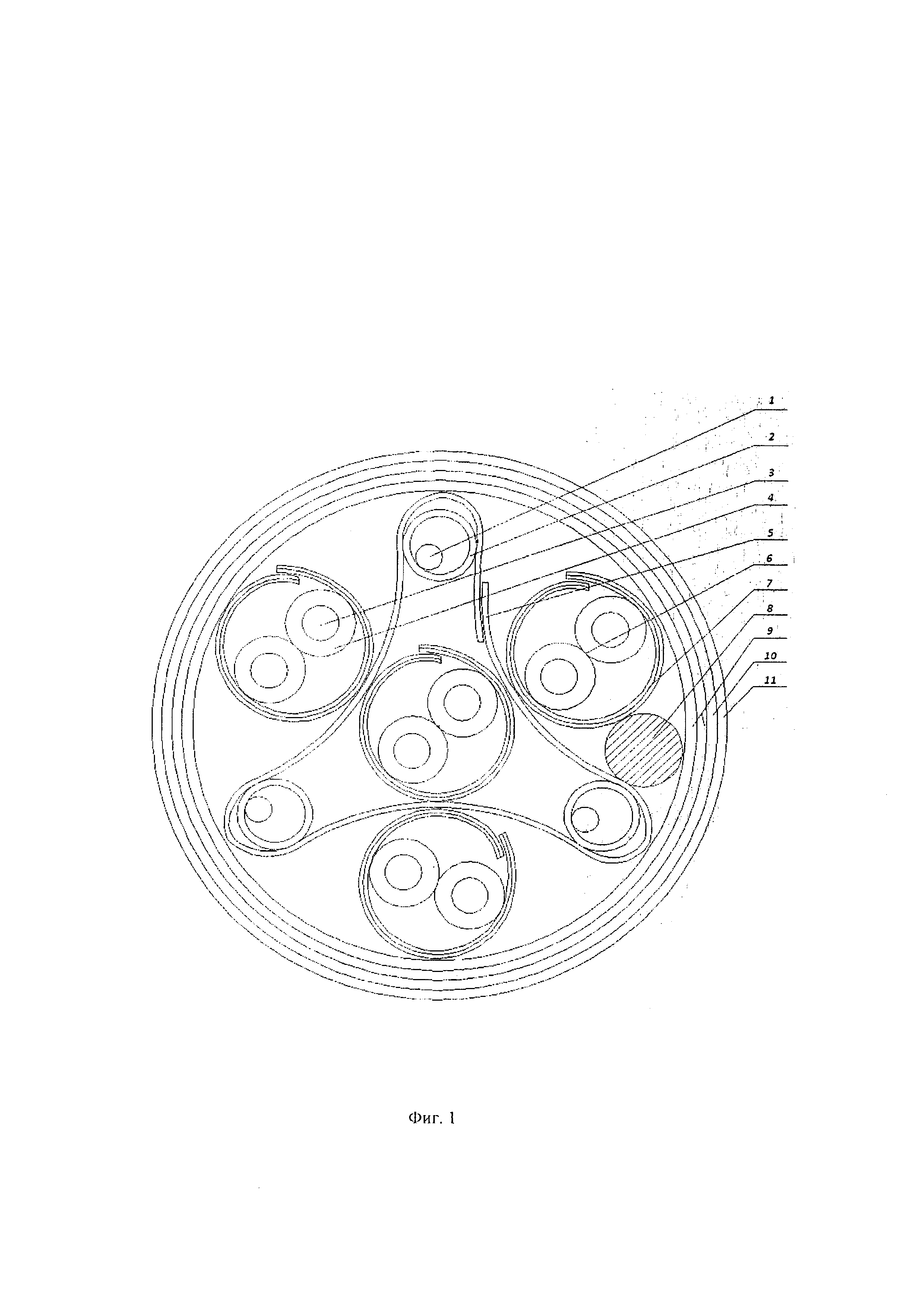 Область техники Изобретение относится к области электротехники и может быть использовано в конструкциях симметричных кабелей связи на сети общего пользования и структурированных кабельных систем. Уровень техники Известна конструкция симметричного четырехпарного экранированного кабеля, содержащая медные жилы в полимерной изоляции, скрученные в общий сердечник, причем каждая пара скручена с шагом, отличным от шагов скрутки других пар, в общем экране и в полимерной оболочке (S/UTP) (в книге: Структурированные кабельные системы, авторы: А.Б. Семенов, С.К. Стрижаков, И.Р. Сунчелей, ДМК издательство, 2002 г., 4-е издание, стр. 109, рис. 3.4 и 3.5). Недостаток конструкции: значительное взаимное влияние между парами в диапазоне частот выше 100 МГц. Известна конструкция экранированного симметричного четырехпарного кабеля, содержащая жилы в полимерной изоляции, каждая пара помещена в экран, и все экранированные пары помещены в общий экран и полимерную оболочку S/STP (там же, стр. 109, рис. 3.4 и 3.5). Недостаток данной конструкции: при достаточно высоком эффекте экранирования сложный доступ к жилам различных пар. Наиболее близкой по технической сущности является конструкция, описанная в проспекте фирмы TELDOR 2006, www teldor.com, teldor Russia@yahoo.com., стр. 18 рис. и стр. 20 описание. Кабель S/STP категории 7 (600 МГц) содержит восемь проводников, изолированных полиолефином, каждая пара завернута в полиэфирную алюминиевую фольгу (фольгой наружу) плотностью покрытия 100%. Все четыре пары скручены вокруг дренажного проводника из луженой меди диаметром 0,51 мм и помещены в общий экран и полимерную оболочку. Недостаток конструкции: сложный доступ к жилам каждой пары при высокой экранирующей способности и малому взаимному влиянию между парами. Сущность изобретения Задачей, на реализацию которой направлено данное техническое решение, является создание такой конструкции экранированного симметричного четырехпарного кабеля, которая позволяет не только улучшить экранирующие способности кабеля и снизить взаимные влияния между парами, но и облегчить доступ к каждой жиле каждой пары кабеля без повреждения экрана. Для решения поставленной задачи одна из пар выбирается центральной и помещается в металлический экран трехлучевой формы, причем, высота и ширина каждого луча определяется диаметром оптического волокна в оптическом модуле, помещенном внутри каждого луча трехлучевого экрана и каждой пары их трех других пар, помещенных между лучами, а у вершины одного из лучей помещается дренажный проводник, а также на одном из лучей осуществляется замыкание экрана с перекрытием концов в продольном направлении по всей длине кабеля, поверх сердечника кабеля накладывается металлический экран, оплетка и полимерная оболочка. Перечень фигур Изобретение поясняется фиг. 1, на которой представлена конструкция комбинированного экранированного симметричного четырехпарного кабеля с оптическими волокнами с трехлучевым разделительным экраном. Осуществление изобретения В данной конструкции комбинированного экранированного симметричного четырехпарного кабеля с оптическими волокнами с трехлучевым разделительным экраном, содержащей оптические волокна - 1 в оптическом модуле - 2, жилы - 3 в полимерной изоляции - 4, центральную пару - 5 в металлополимерном экране металлом наружу - 6, металлический экран 